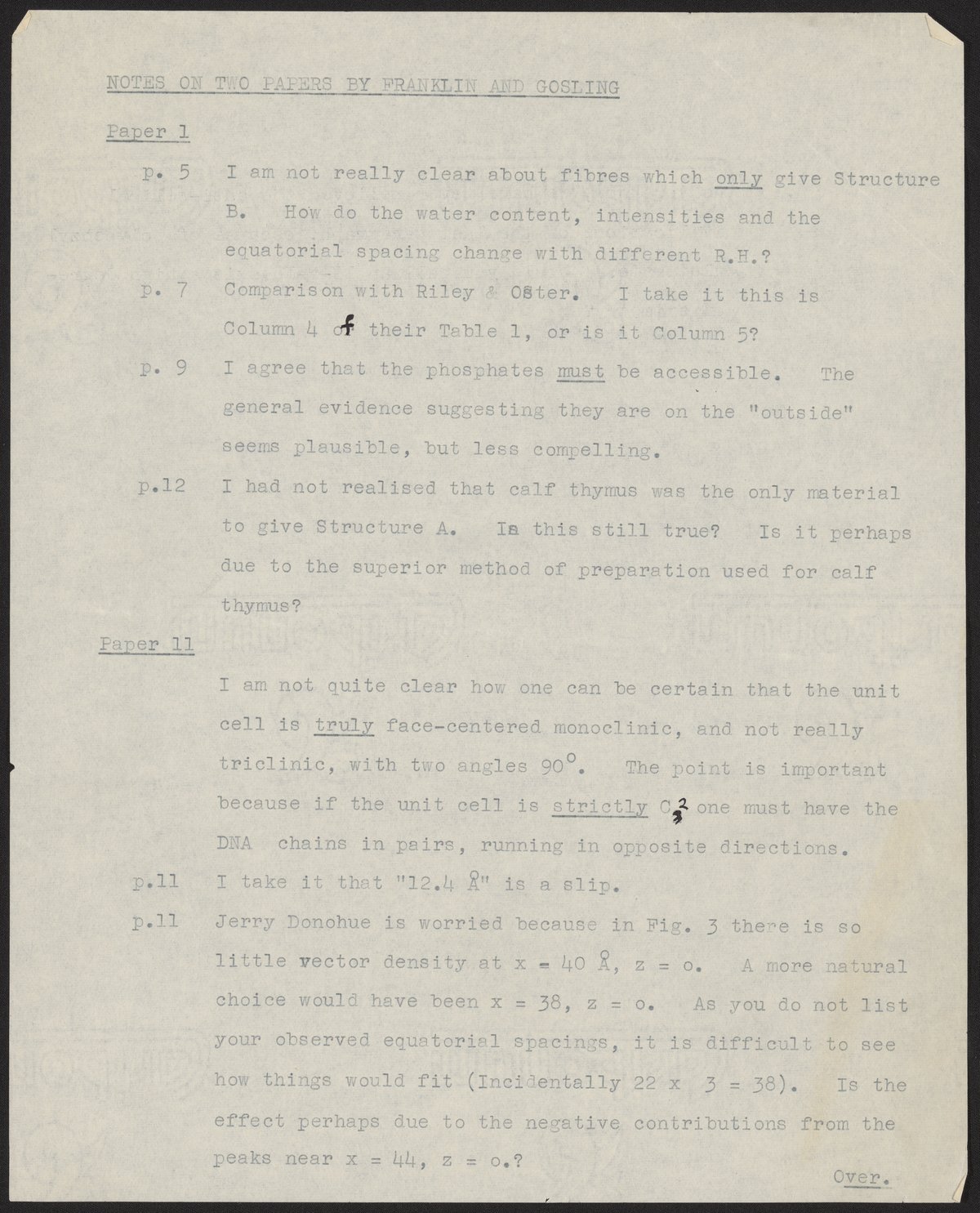 Letter to Rosalind Franklin from Francis Crick, June 5, 1953