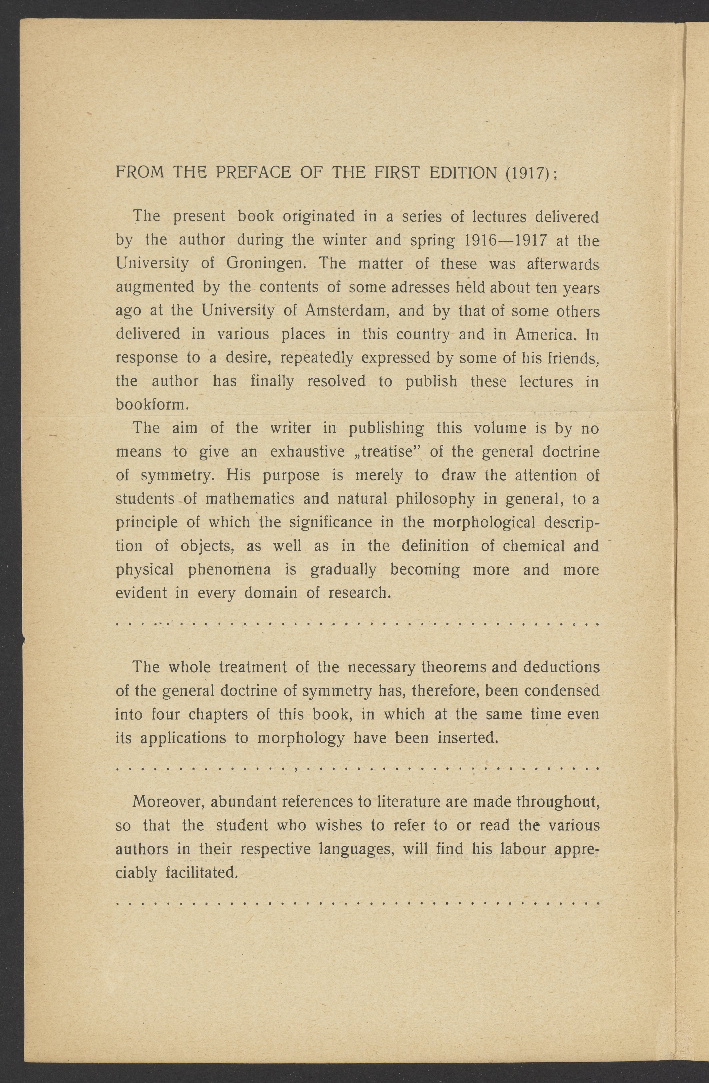 Prospectus for "Lectures on The Principle of Symmetry and its Application in all Natural Sciences"