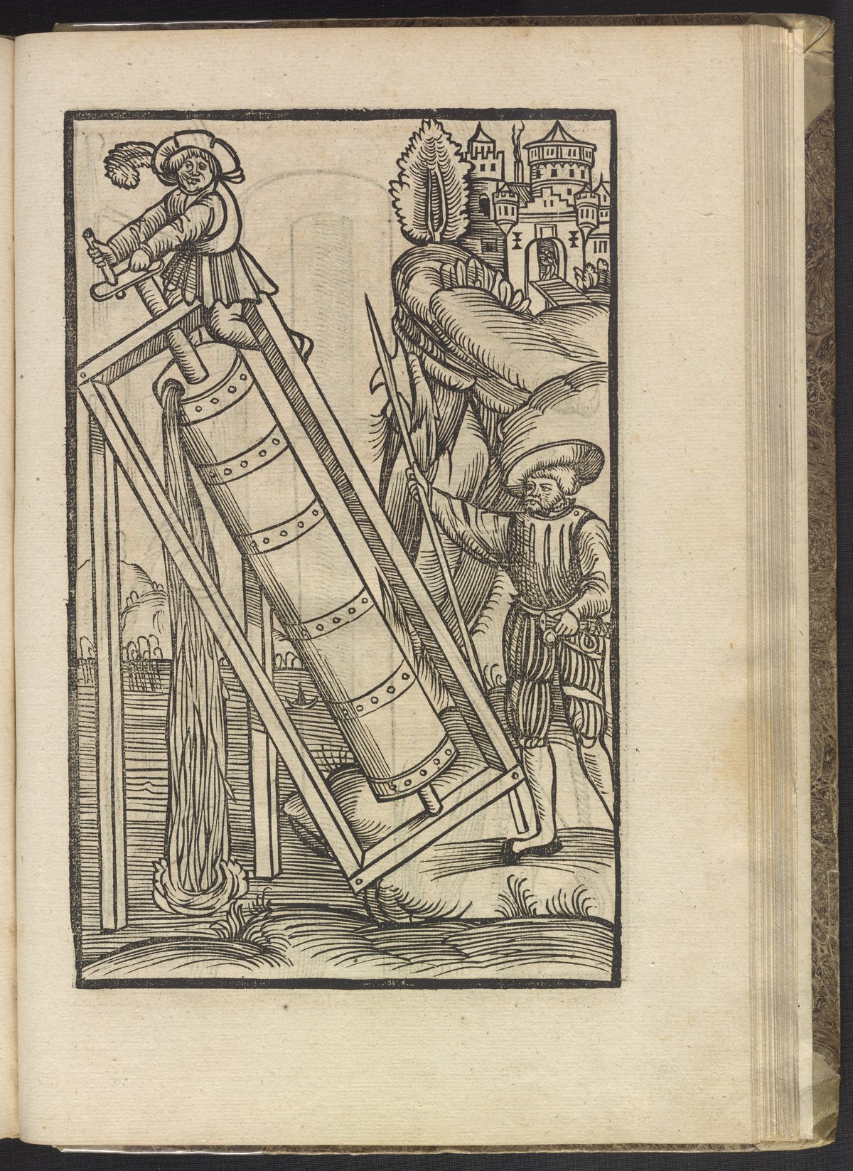 Vegetius Renatus, Flavius. “An Archimedean Screw.” In Vier Bücher Der Ritterschafft. Augsburg, Germany: Heinrich Stayner, 1529. https://digital.sciencehistory.org/works/47429987k.