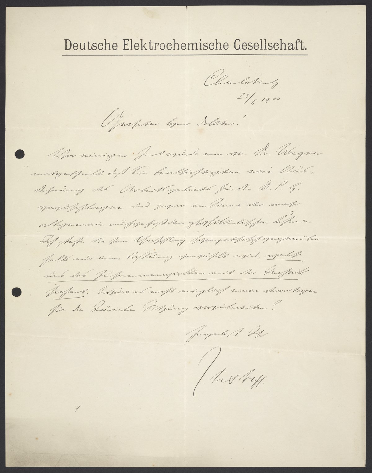 Hoff, J. H. van 't (Jacobus Henricus). “Letter from Jacobus H. Van 't Hoff to Georg Bredig, June 1900,” June 23, 1900. Papers of Georg and Max Bredig, Box 2, Folder 1. Science History Institute. Philadelphia. https://digital.sciencehistory.org/works/4ax6g75.