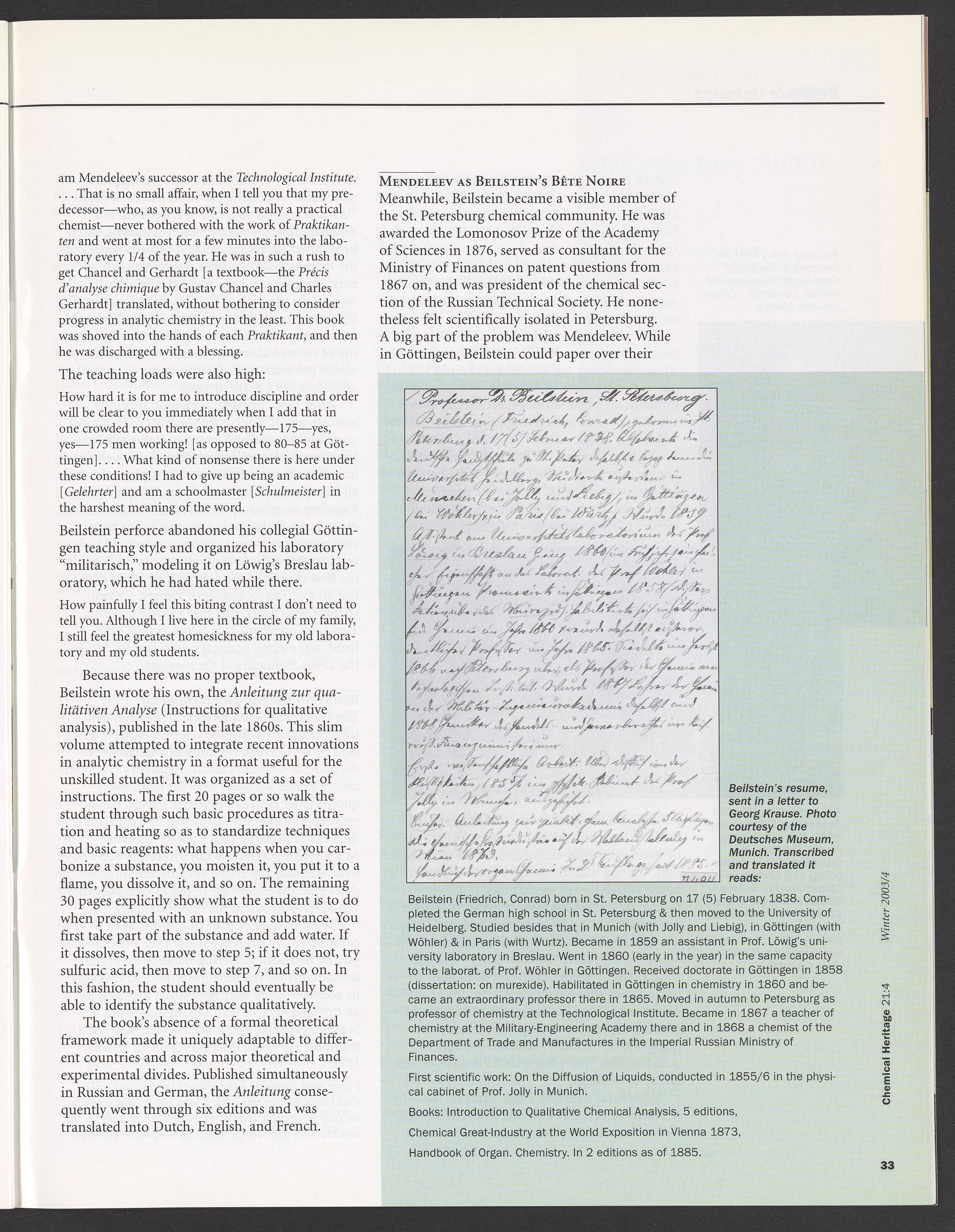Chemical Heritage, Volume 21 Number 4