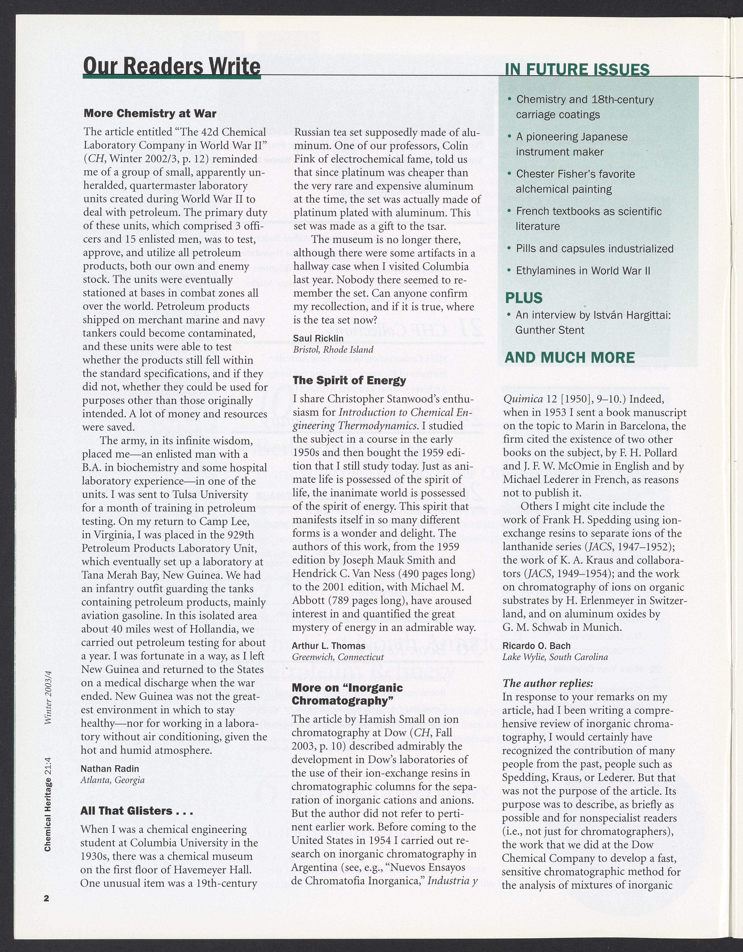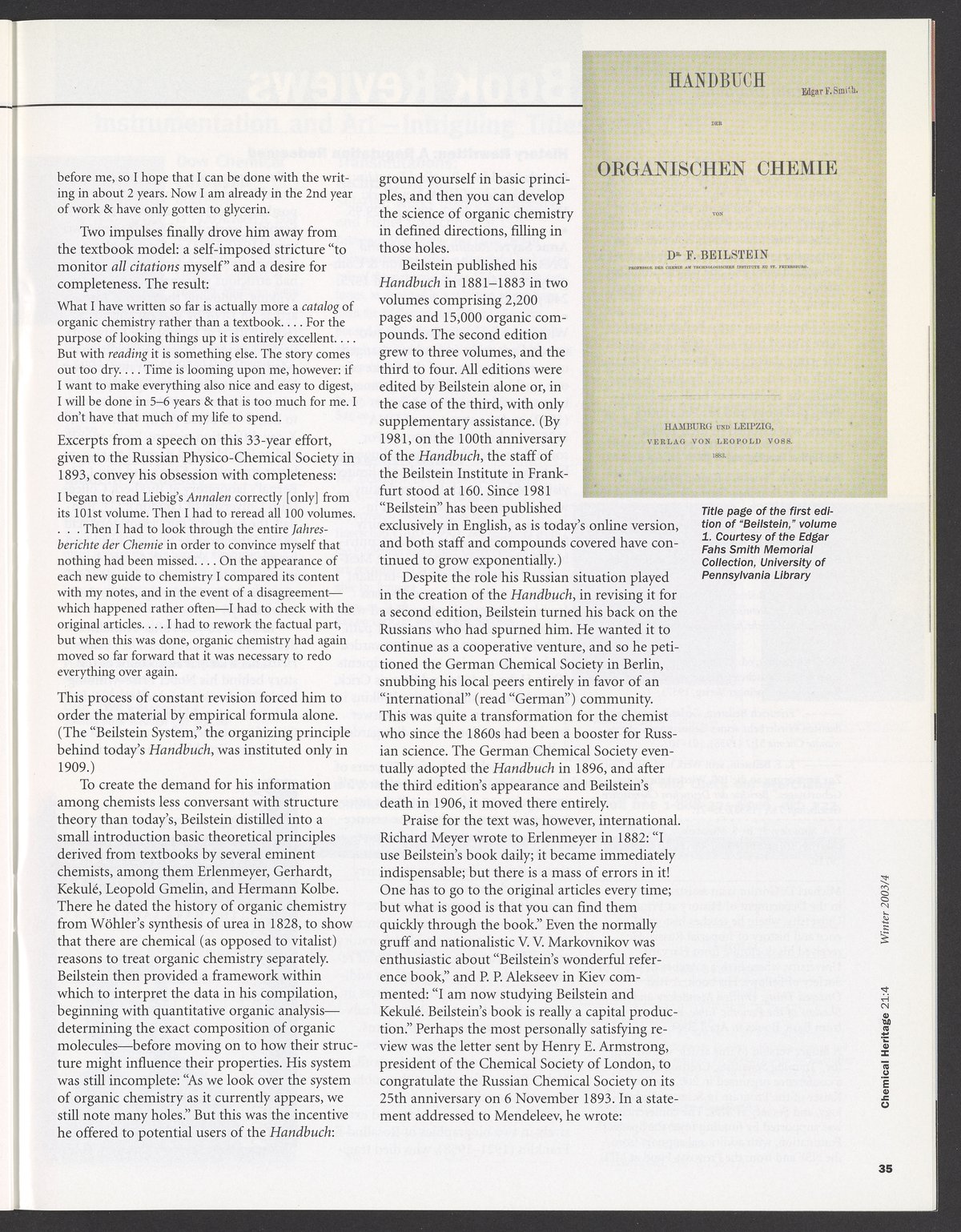 Chemical Heritage, Volume 21 Number 4