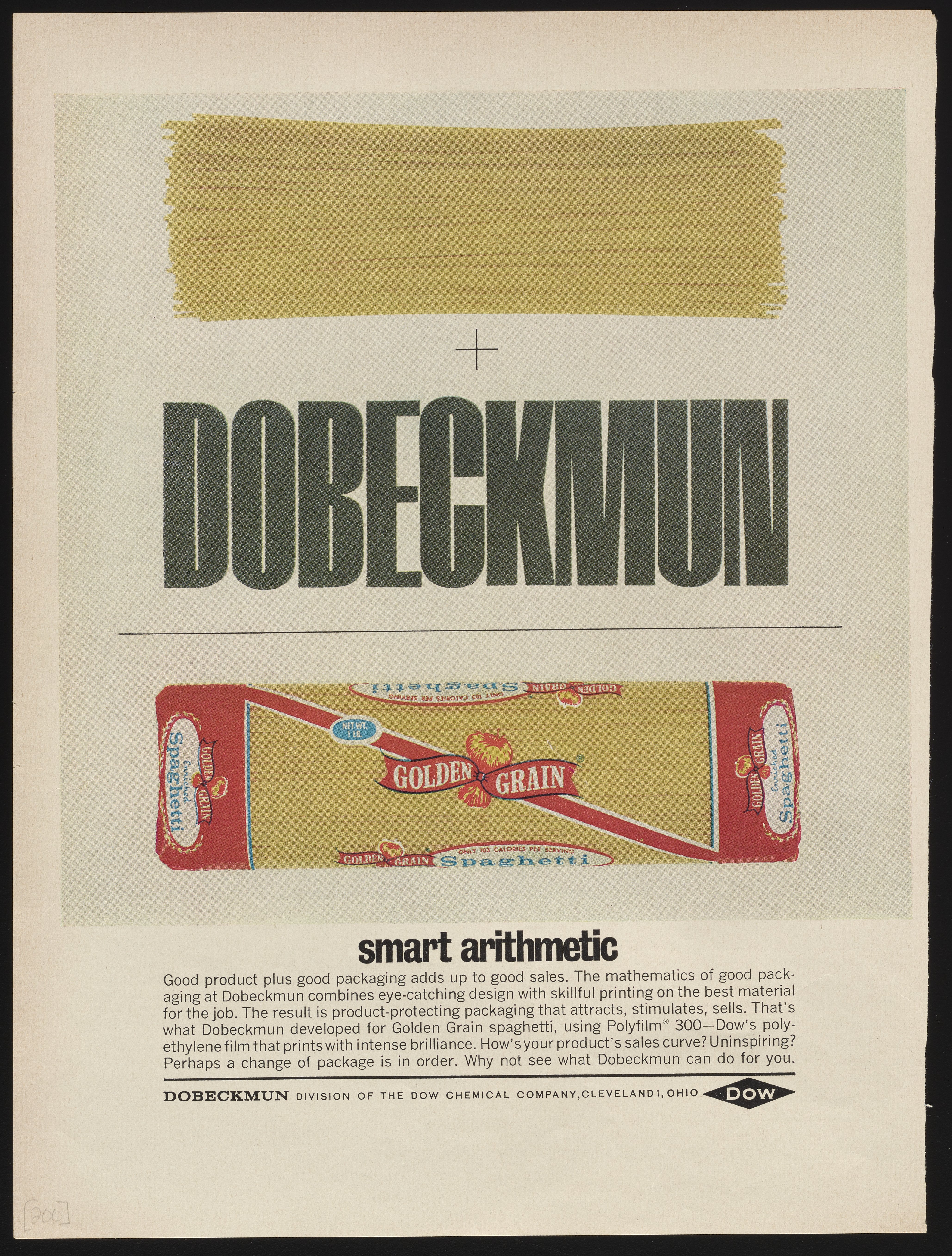 Dow Chemical Company. “Smart Arithmetic: Dobeckmun,” n.d. Advertisements from the Dow Chemical Historical Collection, Box 7. Science History Institute. Philadelphia. https://digital.sciencehistory.org/works/4f16c366k.