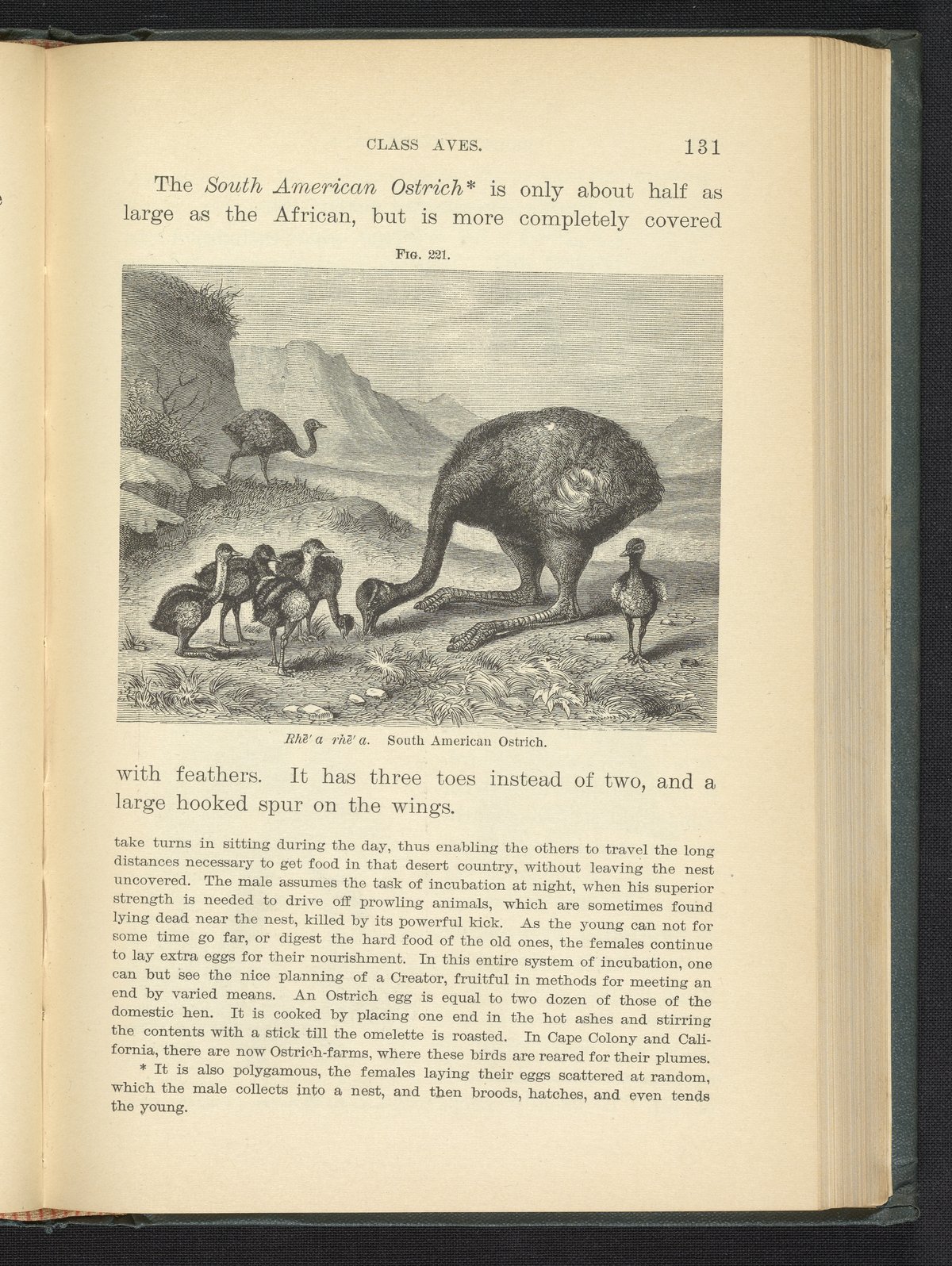 Figure 221 of the 1887 volume Popular Zoology depicting a flock of South American ostriches.