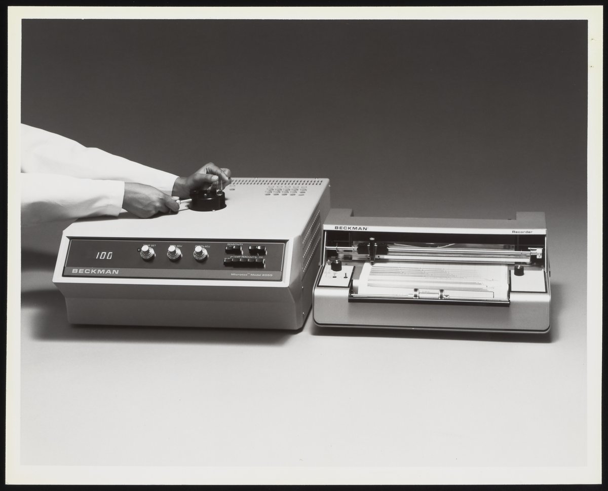 Karjalas' Photo Vision. “Beckman Microtox Recorder and Model 2055 Monitor, with Operator Manipulating a Sample,” circa 1979. Beckman Historical Collection, Box 79. Science History Institute. Philadelphia. https://digital.sciencehistory.org/works/4j03cz75d.