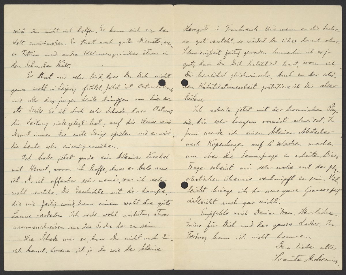 Letter from Svante Arrhenius to Georg Bredig, April 1901