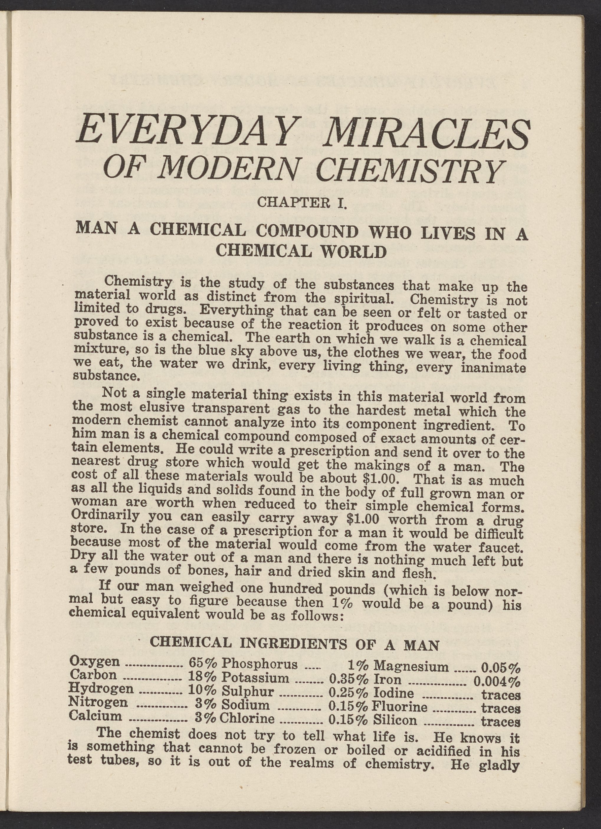 Everyday Miracles of Modern Chemistry : Man, a Chemical Compound who Lives in a Chemical World!