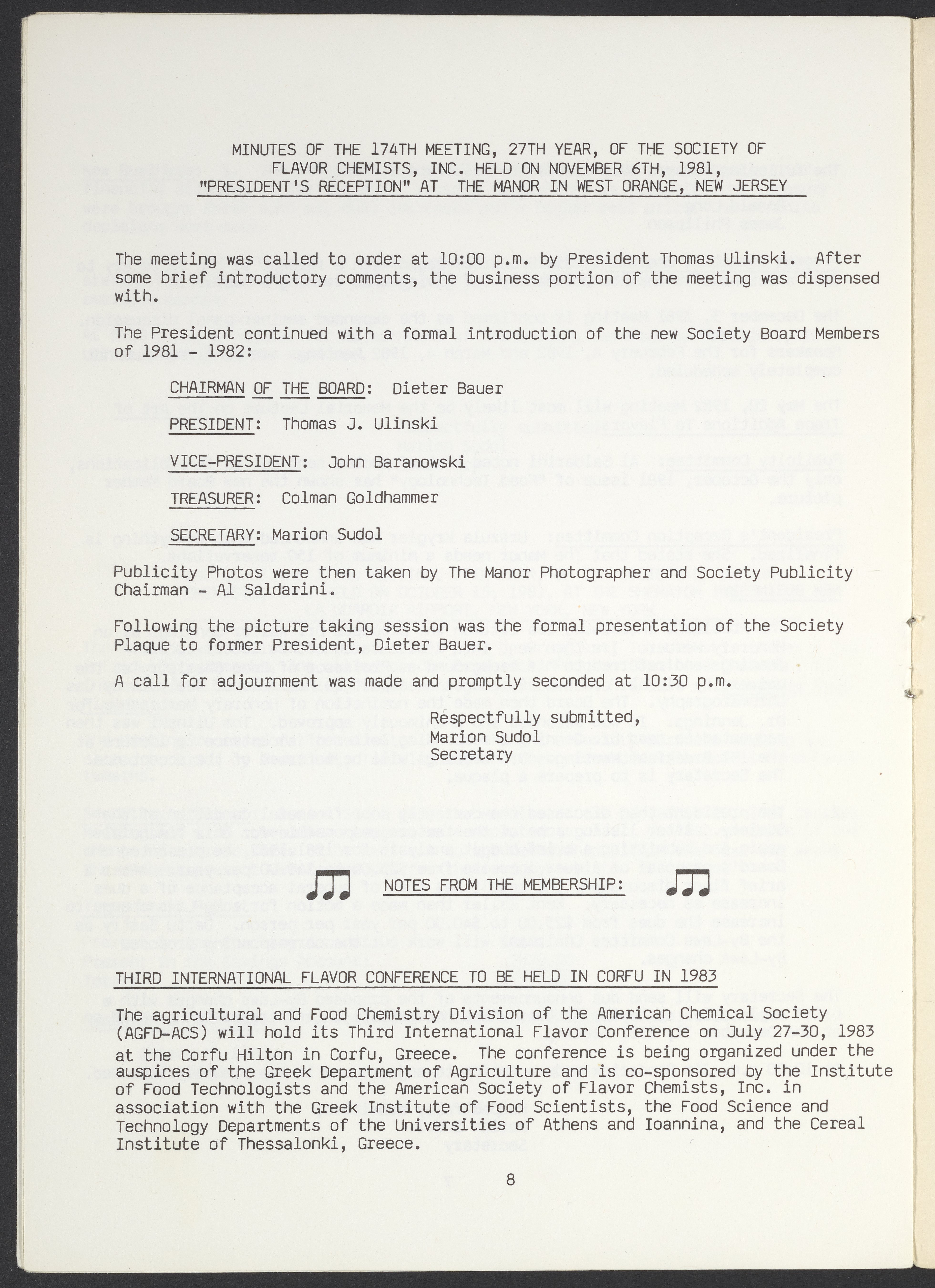 Society of Flavor Chemists. “Society of Flavor Chemists Newsletter, January 1982,” January 27, 1982. Society of Flavor Chemists Newsletters and Certificate of Incorporation, Box 1, Folder 1. Science History Institute. Philadelphia. https://digital.sciencehistory.org/works/4nokz2v.
