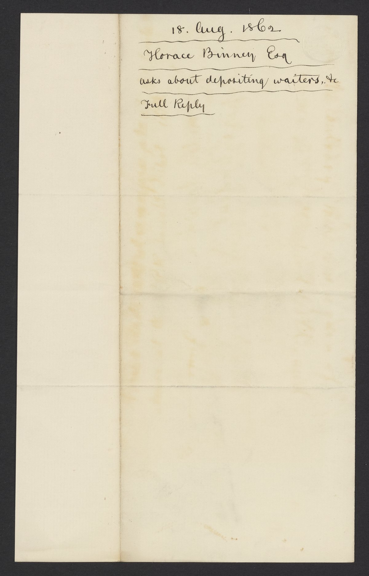 Letter from Horace Binney to James Curtis Booth, August 18, 1862