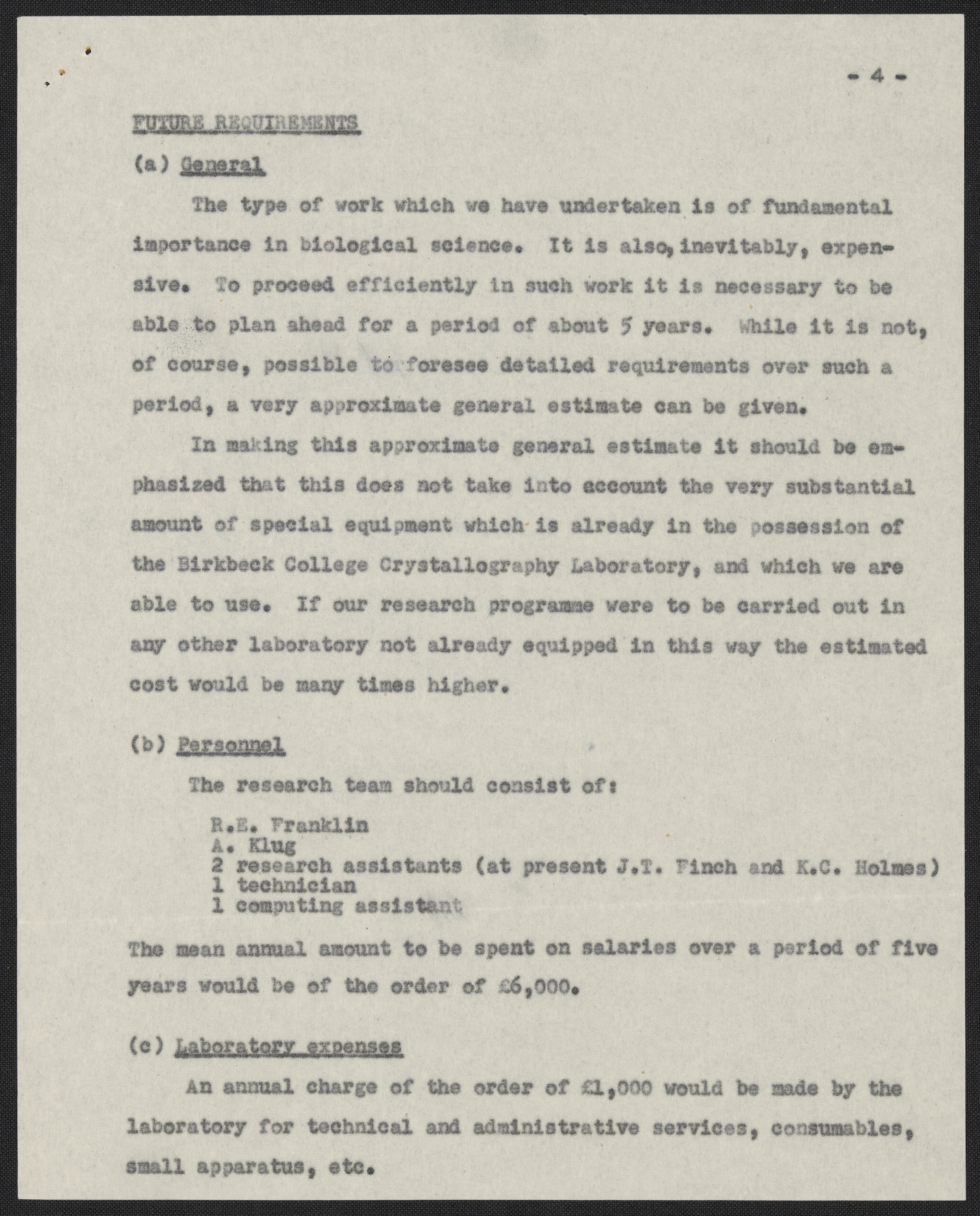 Note on the Future of the A.R.C. Research Group in Birkbeck College Crystallography Laboratory