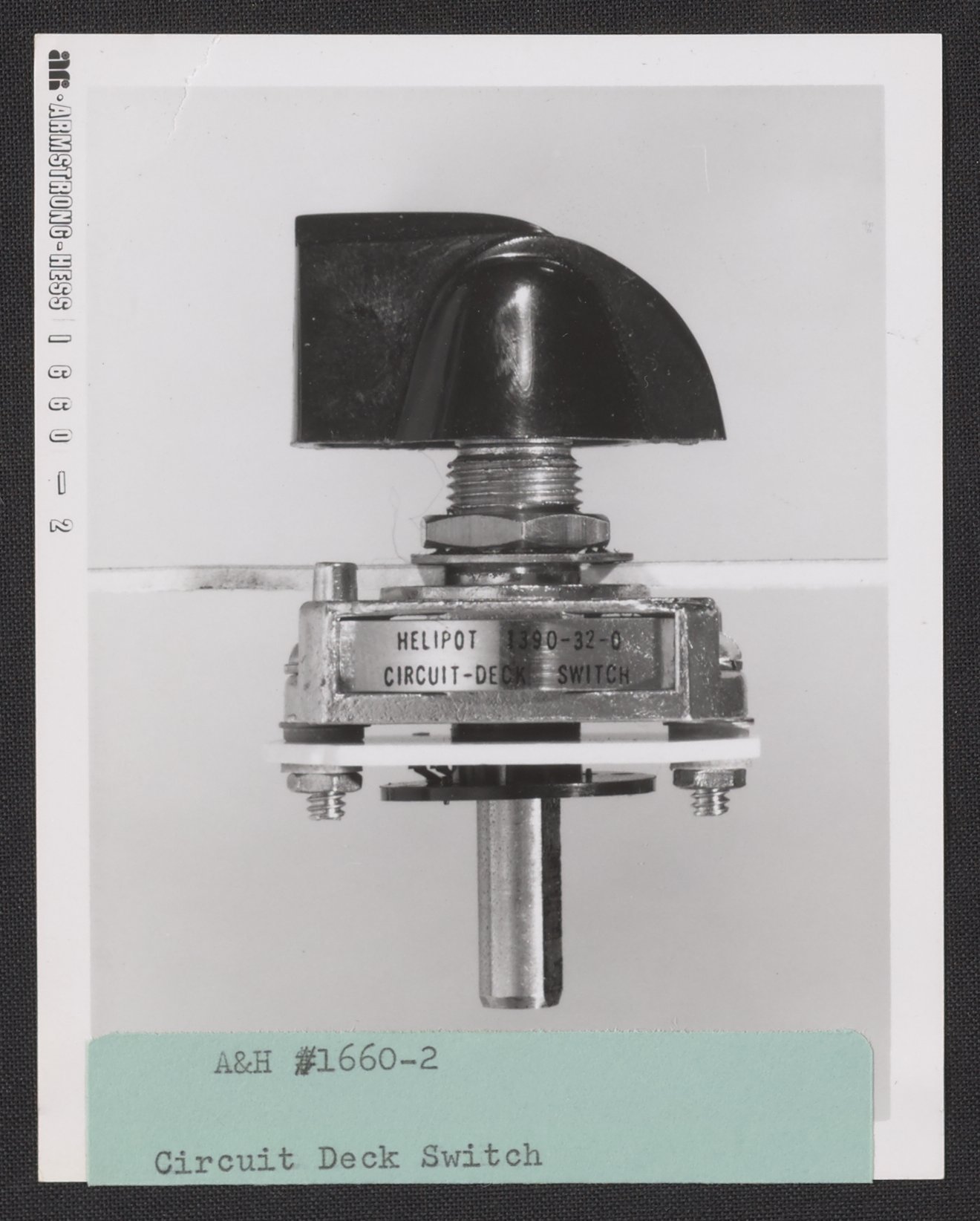 Armstrong & Hess. “Helipot Circuit Deck Switch,” 1950–1969. Beckman Historical Collection, Box 85. Science History Institute. Philadelphia. https://digital.sciencehistory.org/works/4q77fr78z.