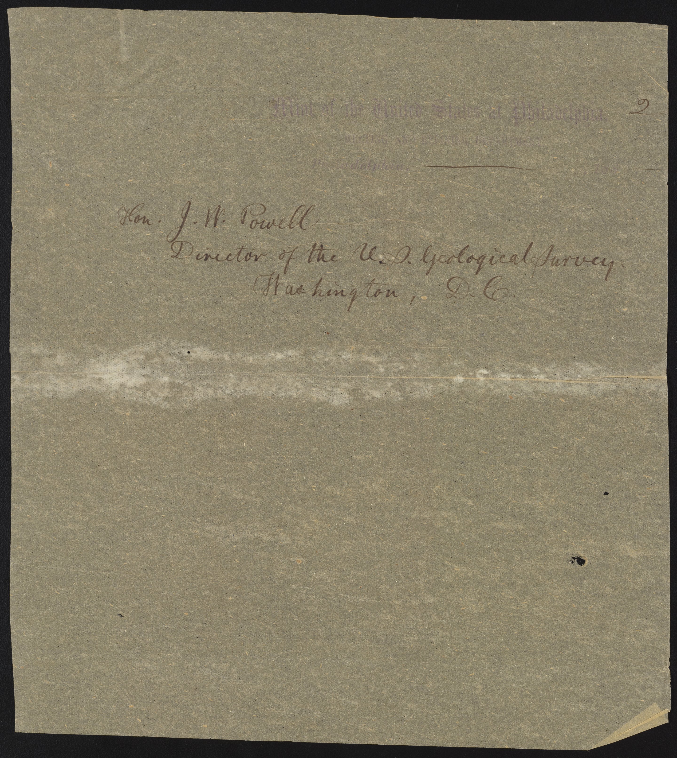 Booth, James Curtis. “Letter from James Curtis Booth to John Wesley Powell,” May 1, 1885. Papers of James Curtis Booth, Box 2, Folder 8. Science History Institute. Philadelphia. https://digital.sciencehistory.org/works/4qe31v7.