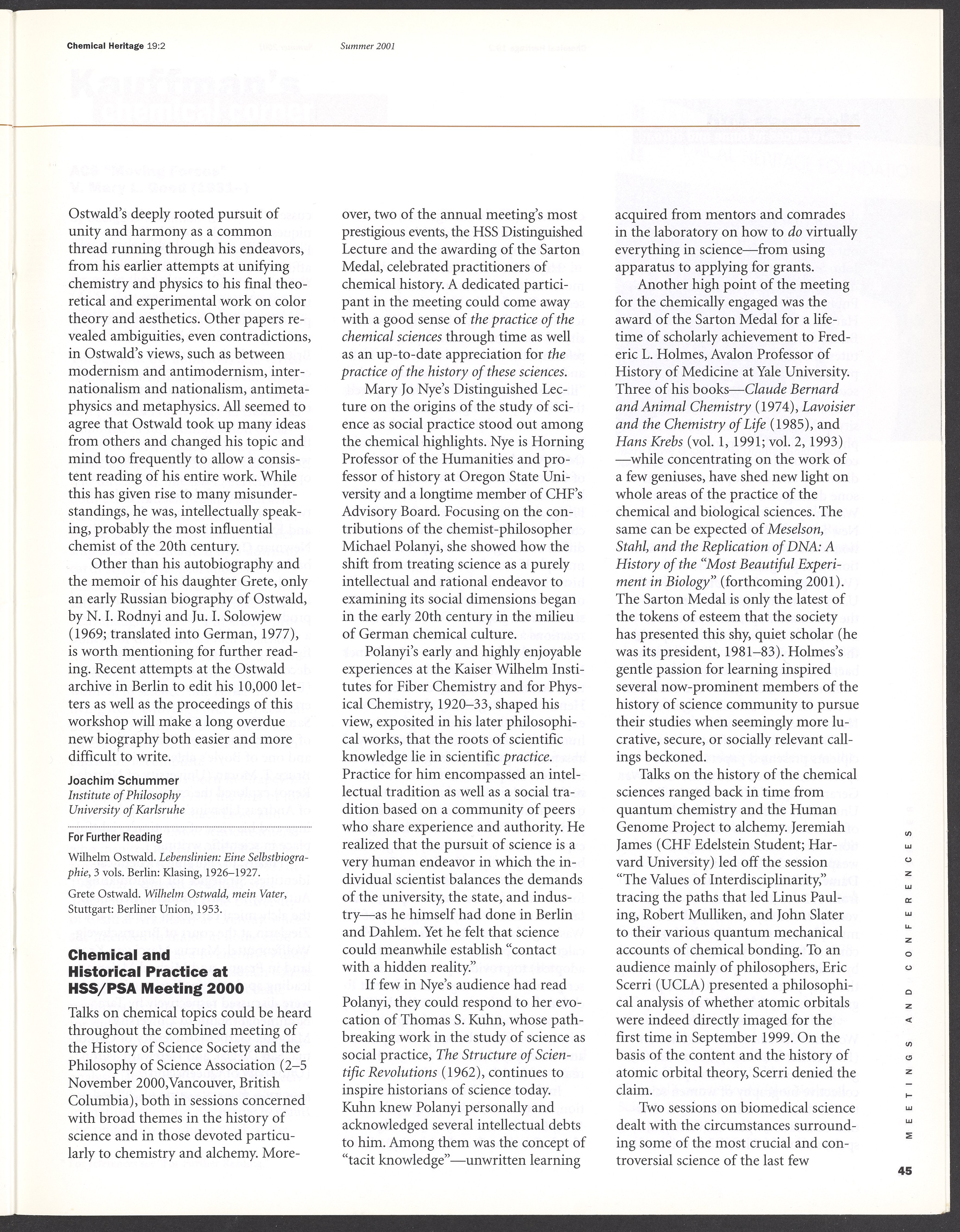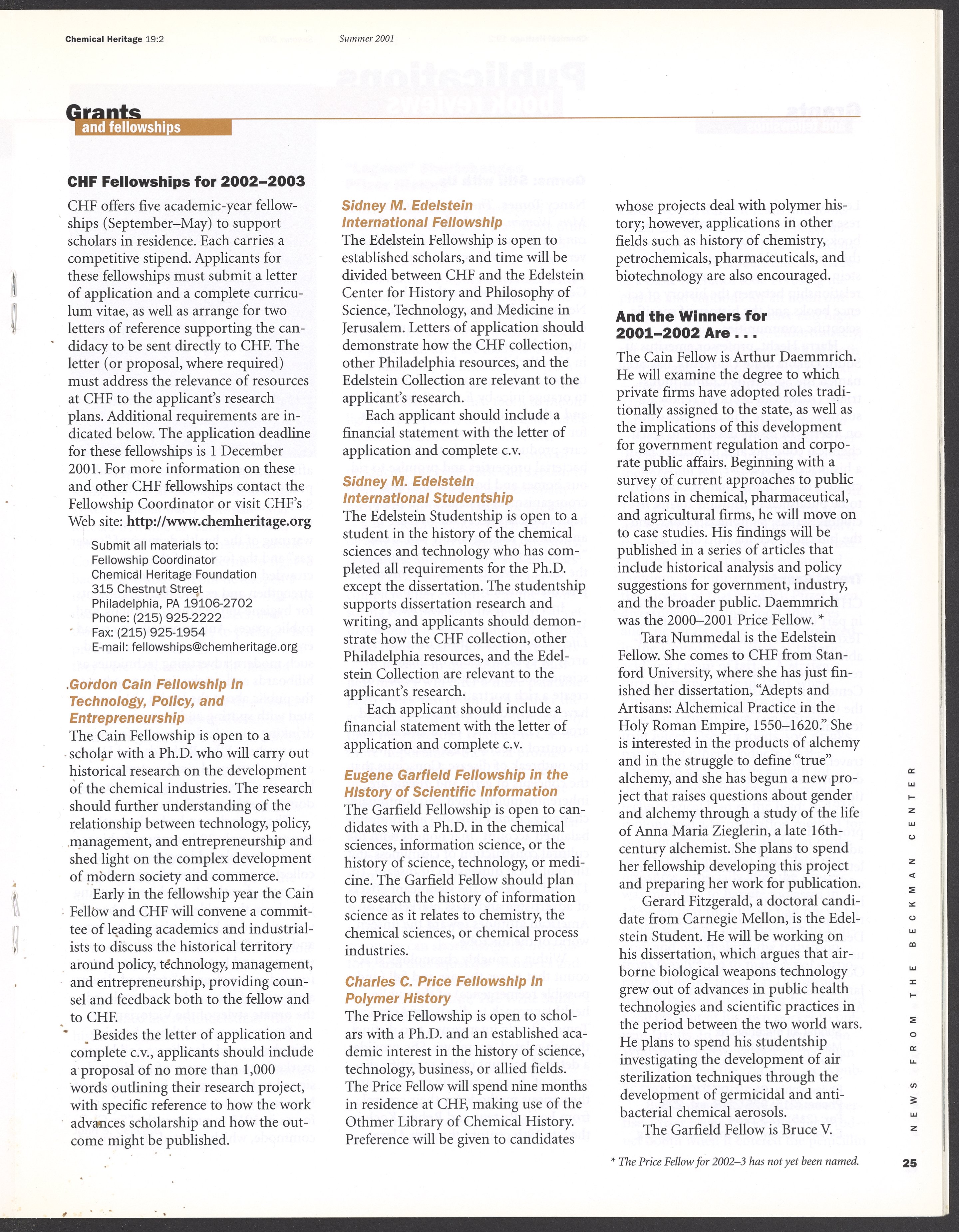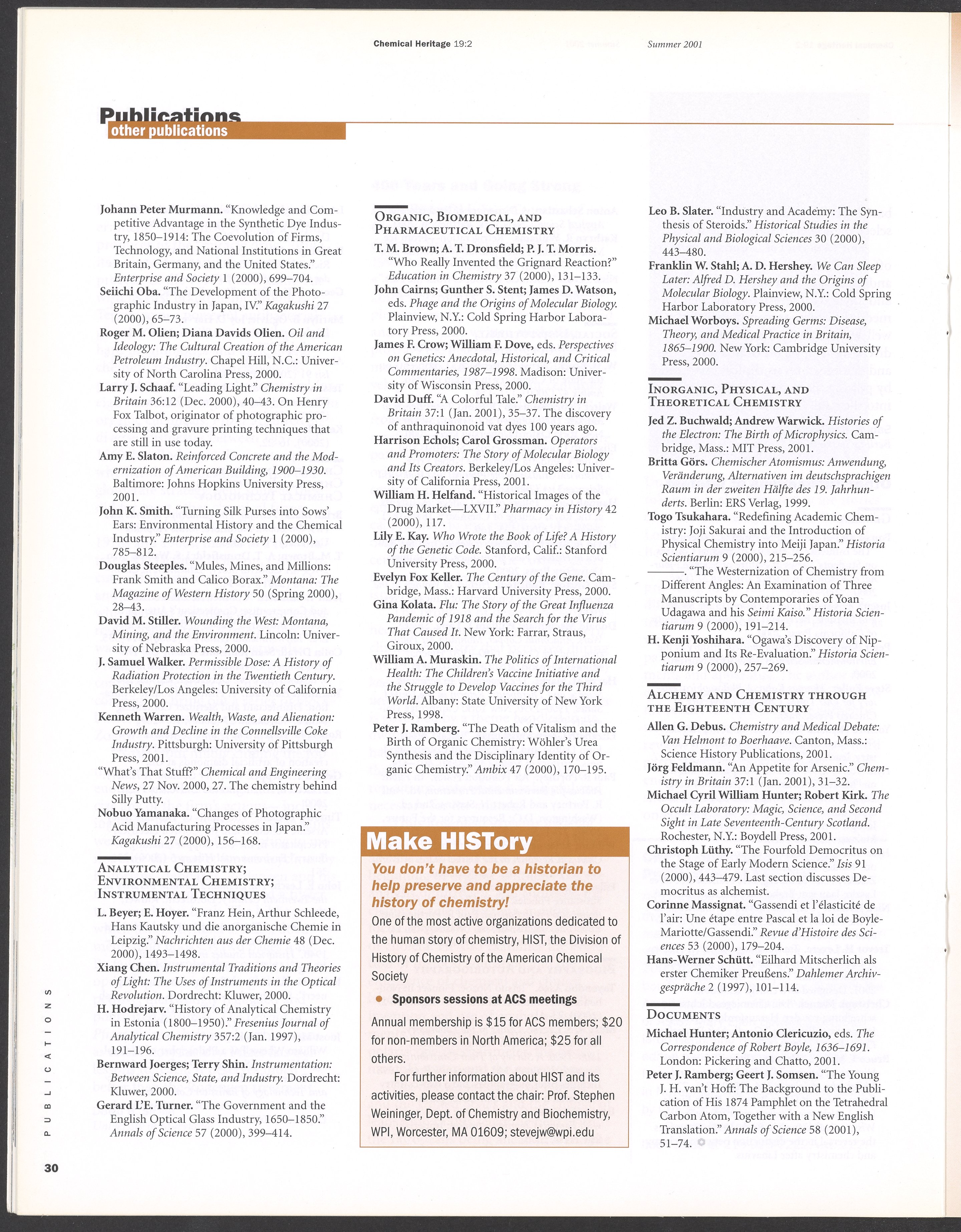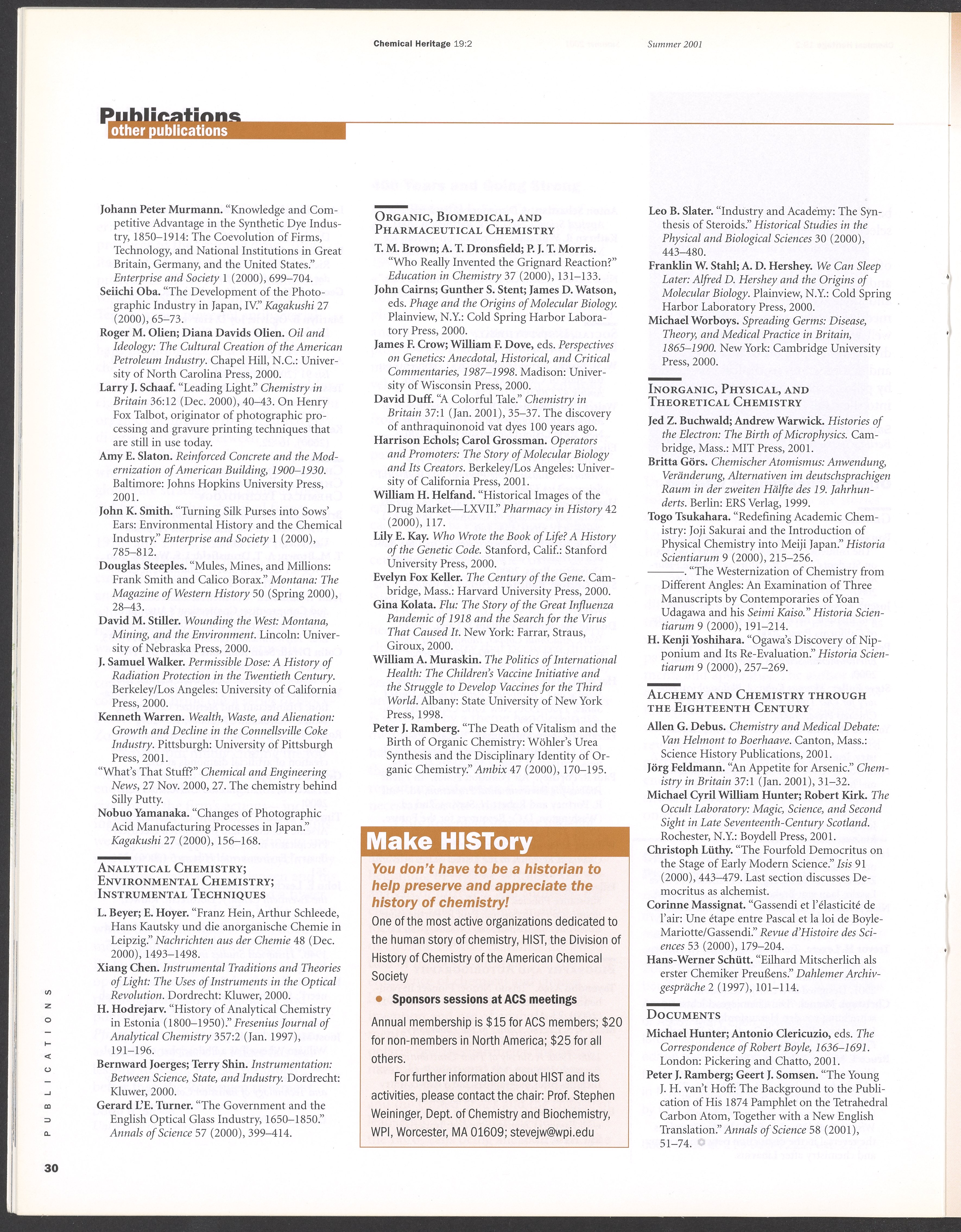 Chemical Heritage, Volume 19 Number 2