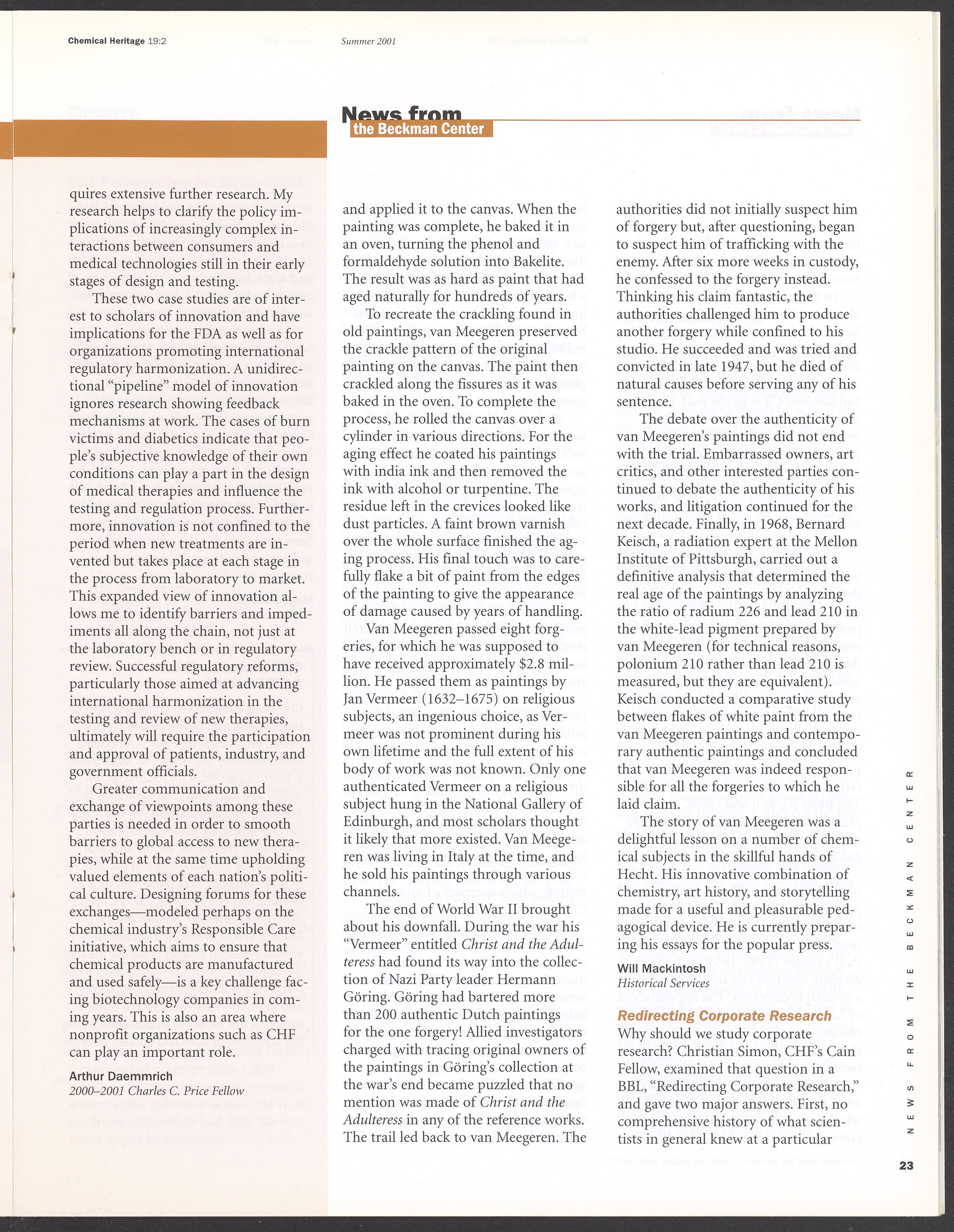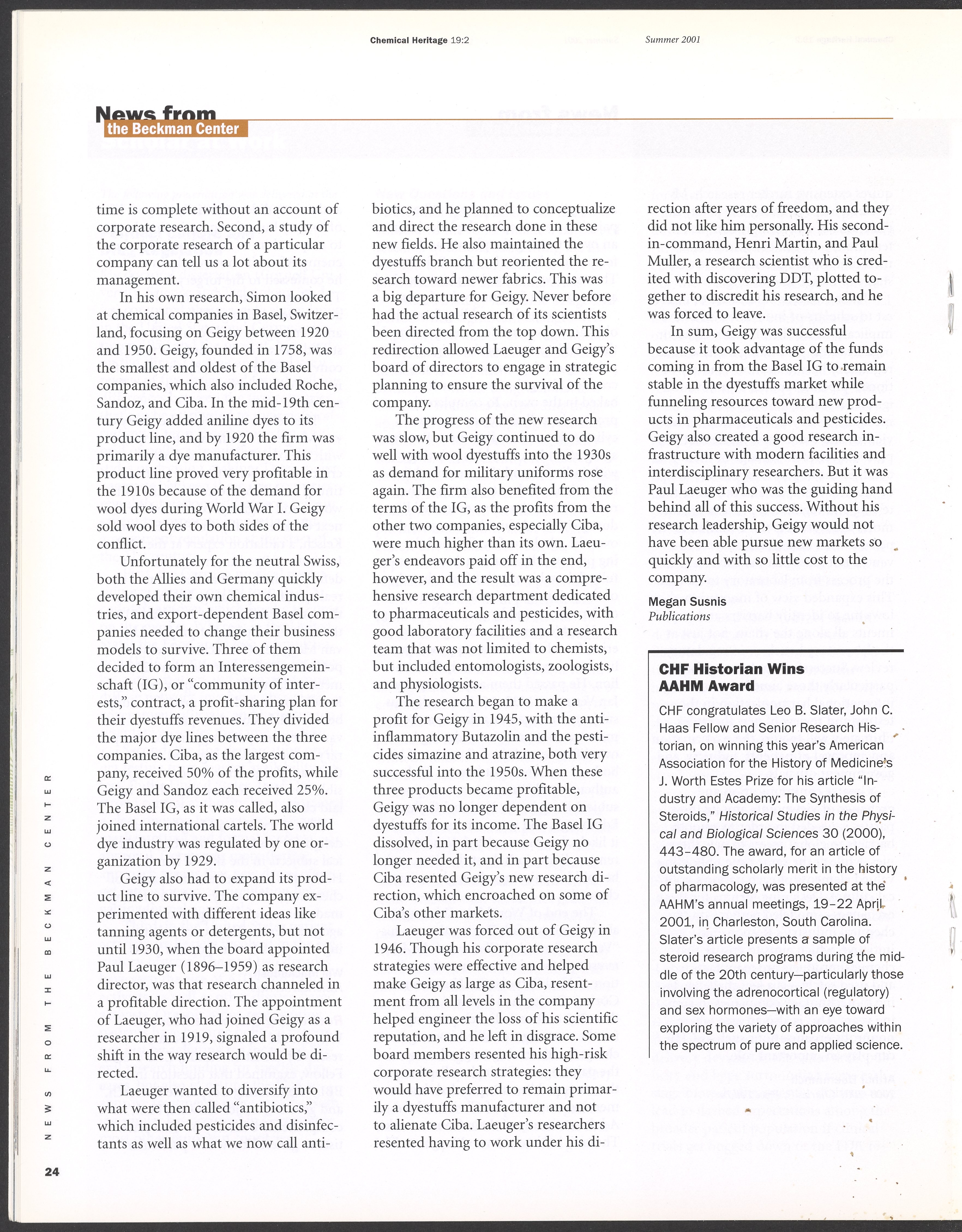 “Chemical Heritage, Volume 19 Number 2.” Philadelphia, Pennsylvania: Chemical Heritage Foundation, 2001. 099C001. Science History Institute. Philadelphia. https://digital.sciencehistory.org/works/4qr25ck.