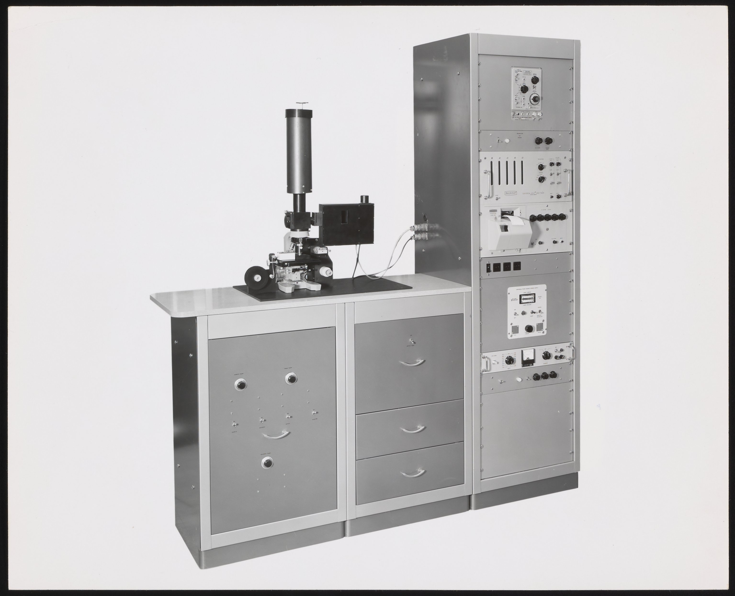Beckman's Space Engineering Group (SEG) was formed within the Scientific Process Instruments Division (SPID) in 1959. In 1964, it subcontracted to Space General Corp. to perform work for the U.S. Army. The SEG was tasked with exploring new techniques for detecting bacteriological warfare agents (like this instrument) and developing a device using the fluorescent antibody staining technique (FAST).