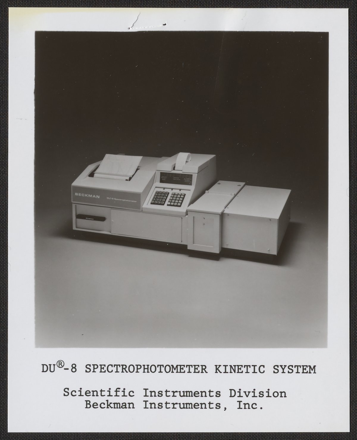 “Beckman DU-8 Spectrophotometer Kinetic System,” circa 1980. Beckman Historical Collection, Box 84. Science History Institute. Philadelphia. https://digital.sciencehistory.org/works/4t64gn39h.