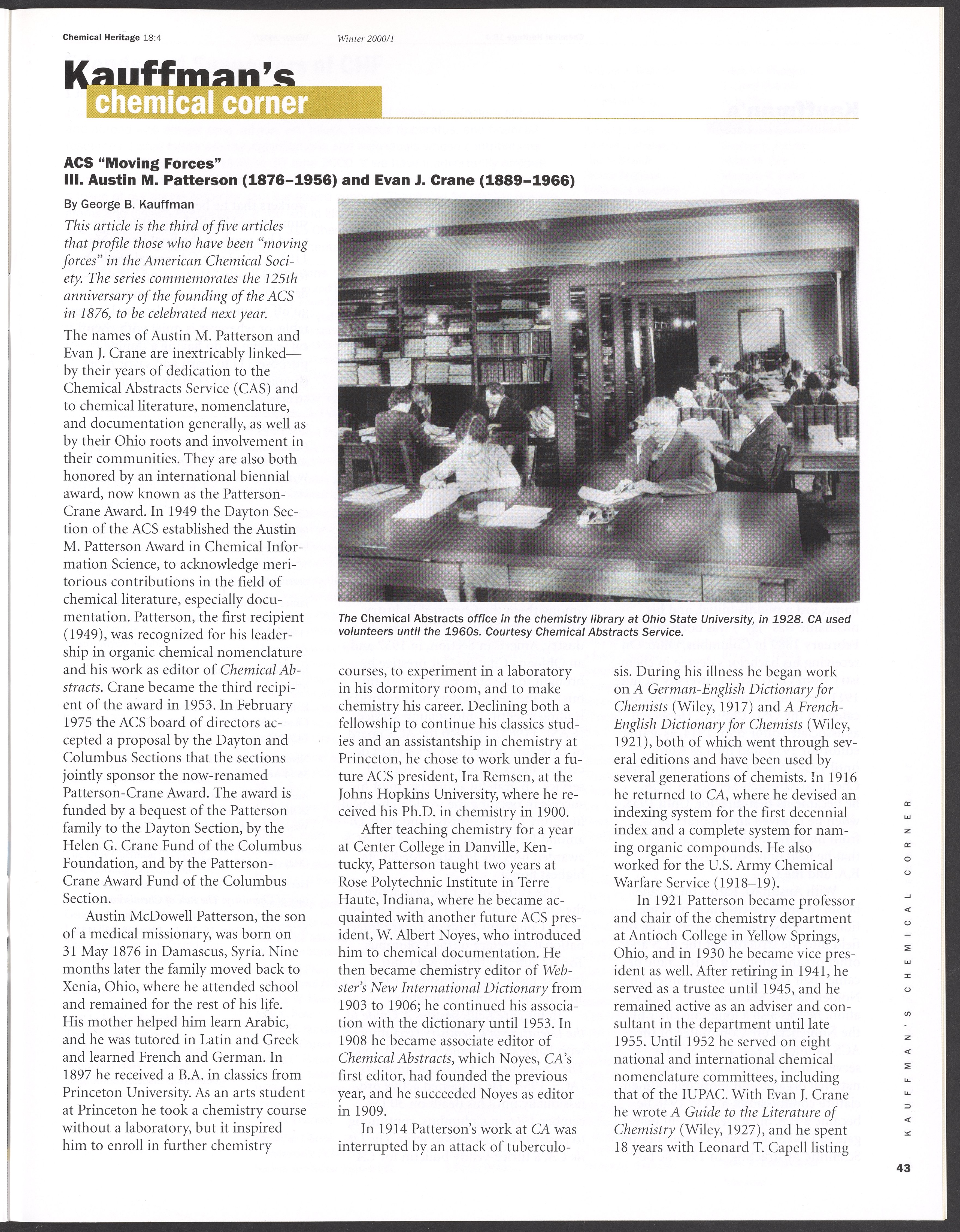Chemical Heritage, Volume 18 Number 4