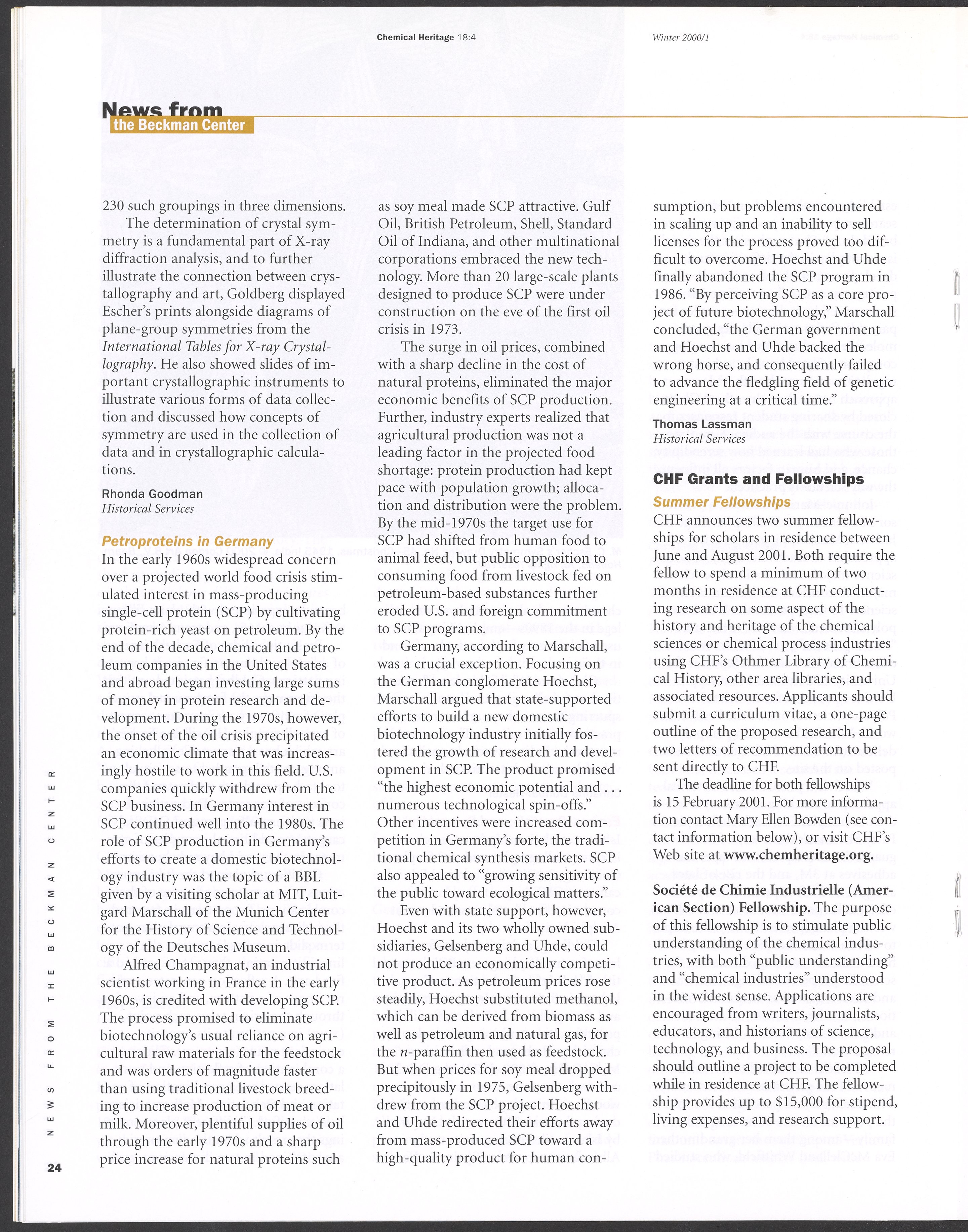 “Chemical Heritage, Volume 18 Number 4.” Philadelphia, Pennsylvania: Chemical Heritage Foundation, 2000. 099C001. Science History Institute. Philadelphia. https://digital.sciencehistory.org/works/4u4qubf.