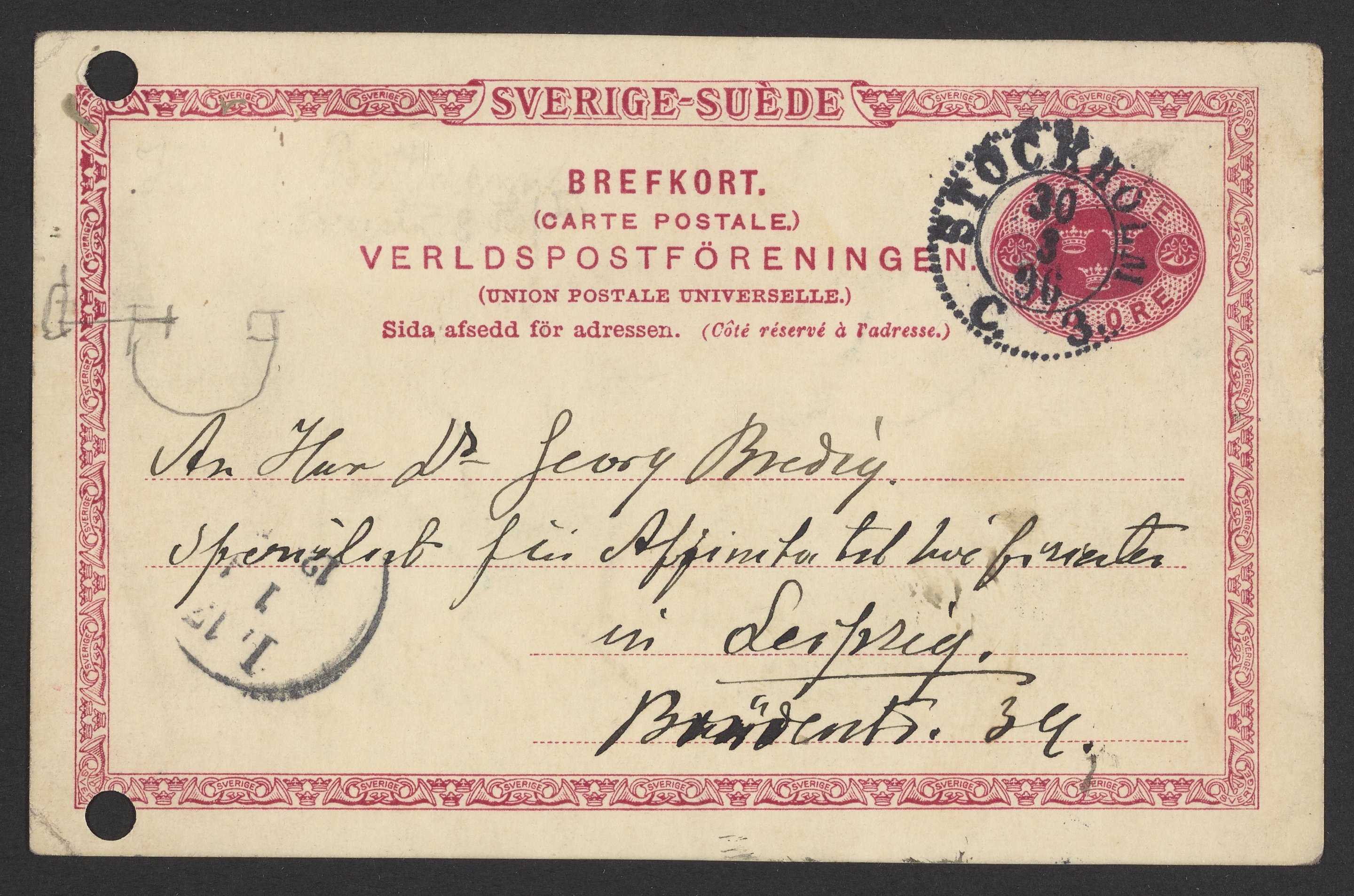 Luggins, Hans. “Postcard from Colleagues to Georg Bredig, March 1896,” March 30, 1896. Papers of Georg and Max Bredig, Box 2, Folder 28. Science History Institute. Philadelphia. https://digital.sciencehistory.org/works/4u9x210.