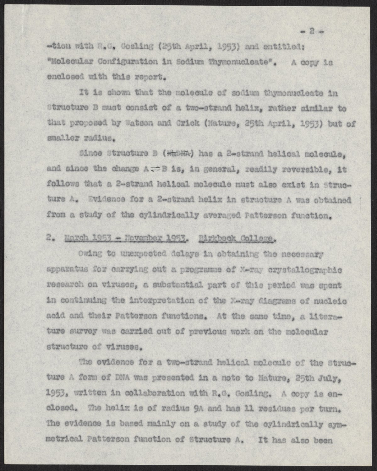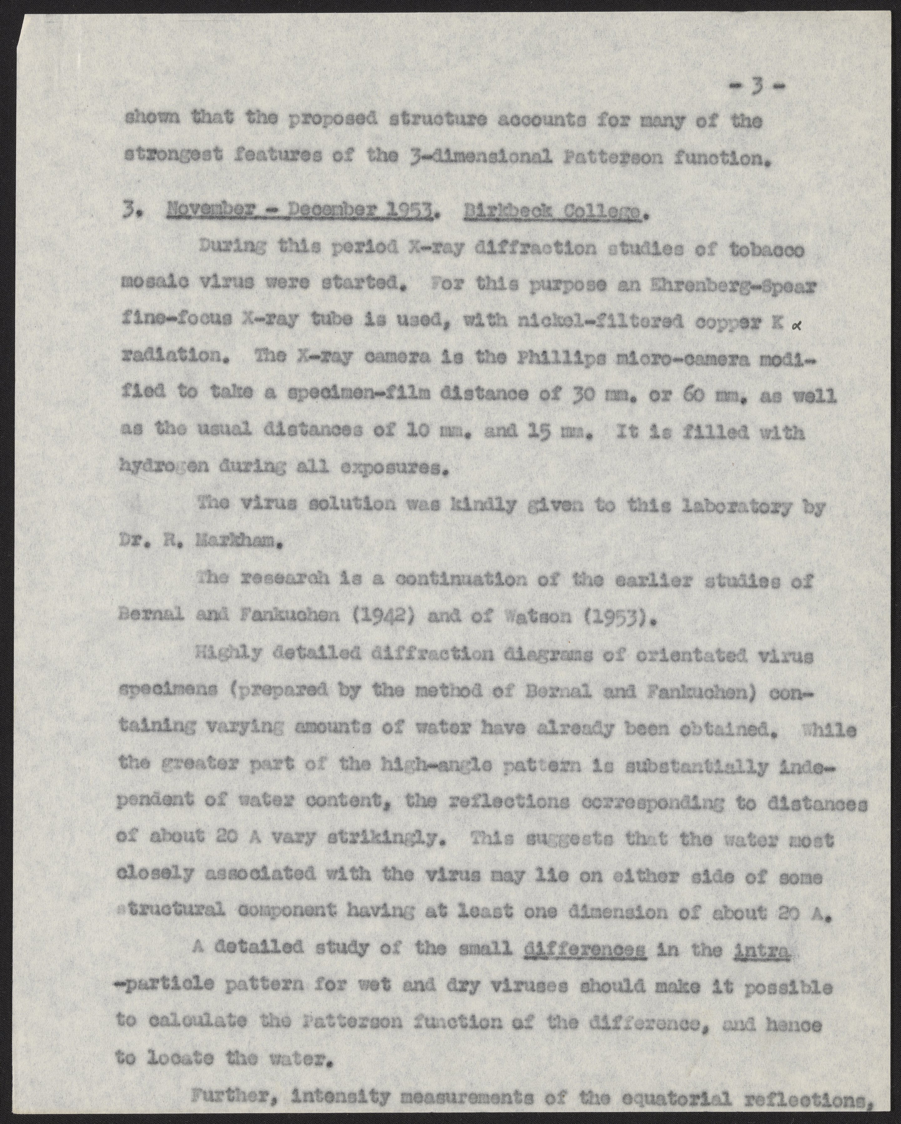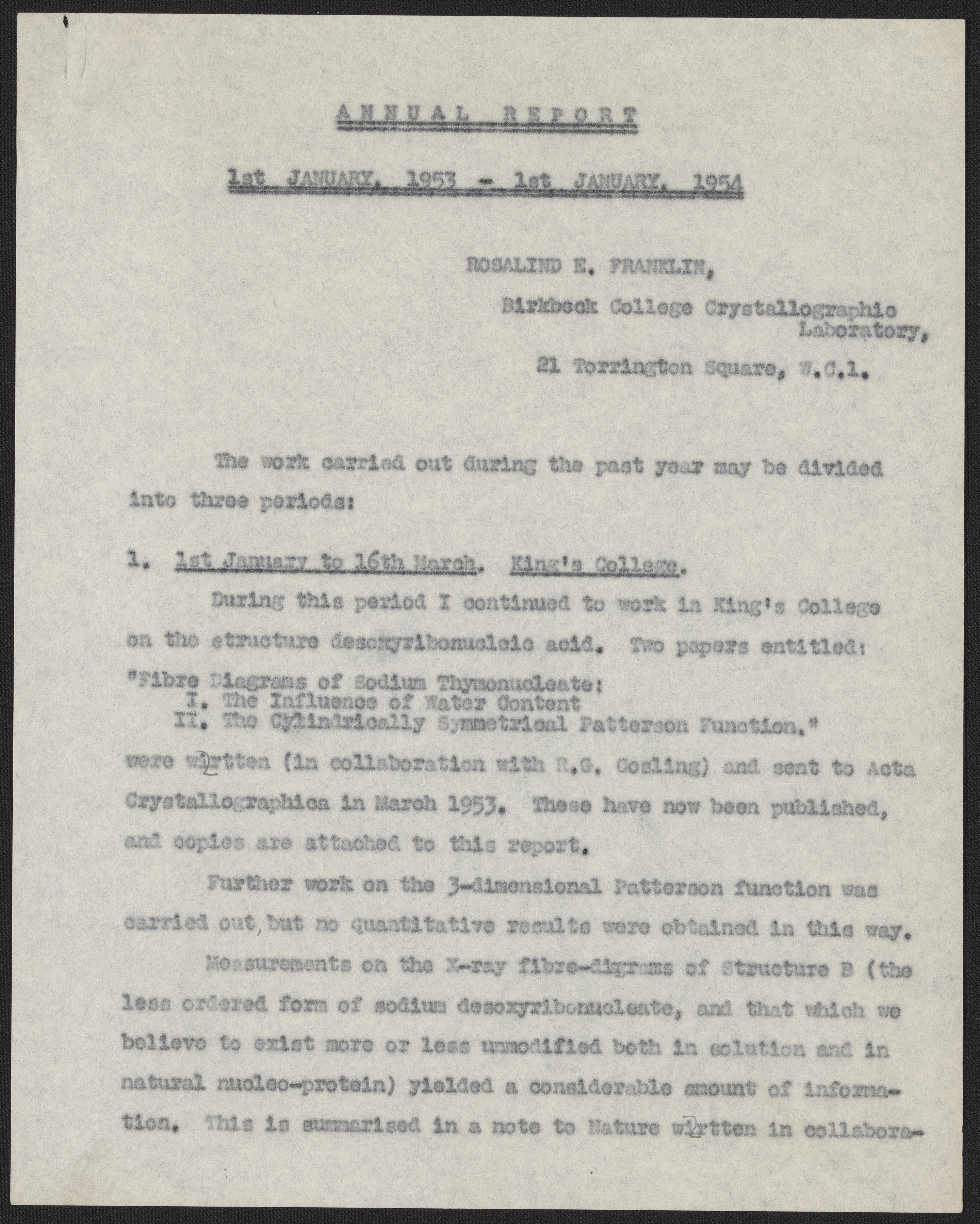 Birkbeck College Crystallographic Laboratory 1953 Annual Report