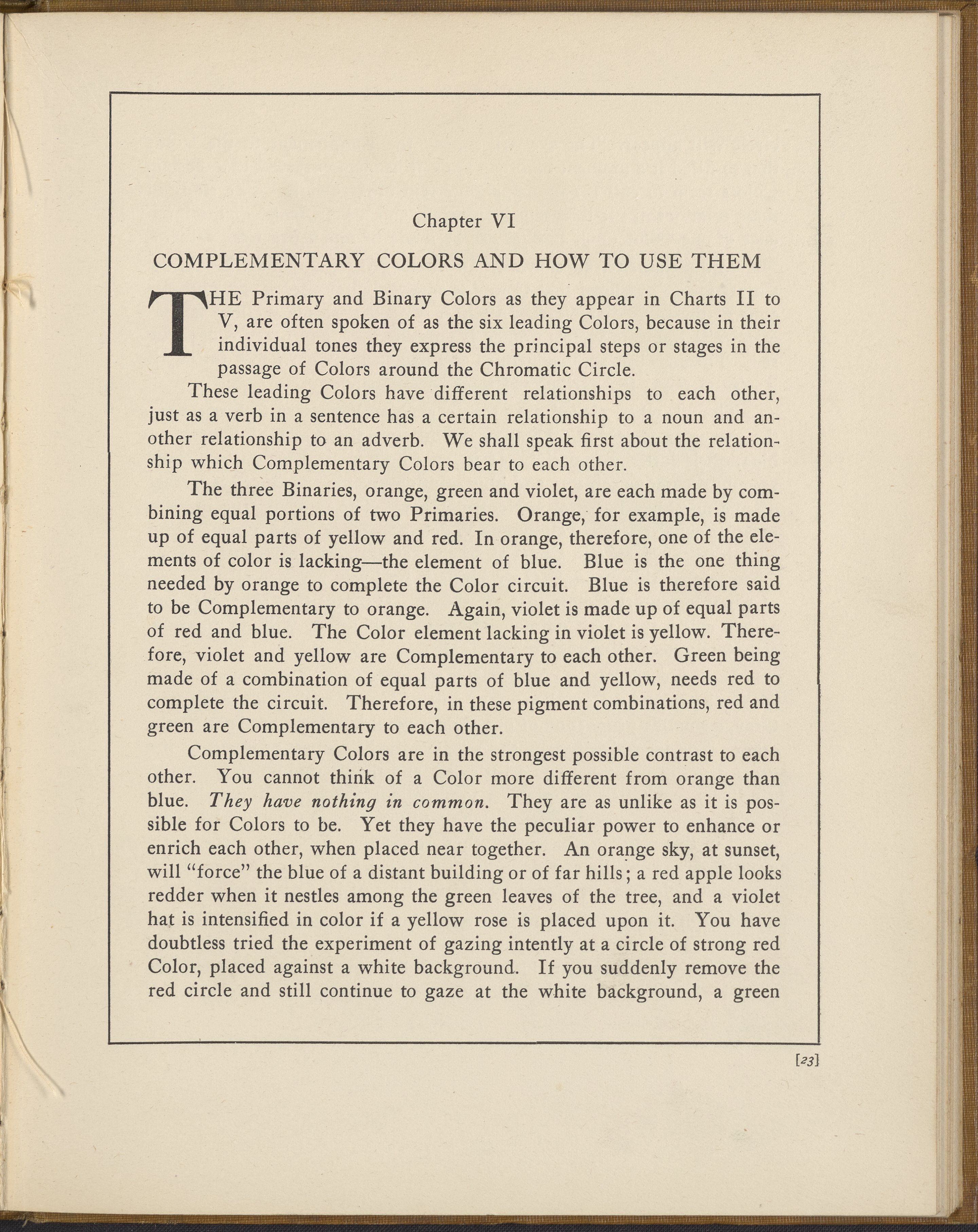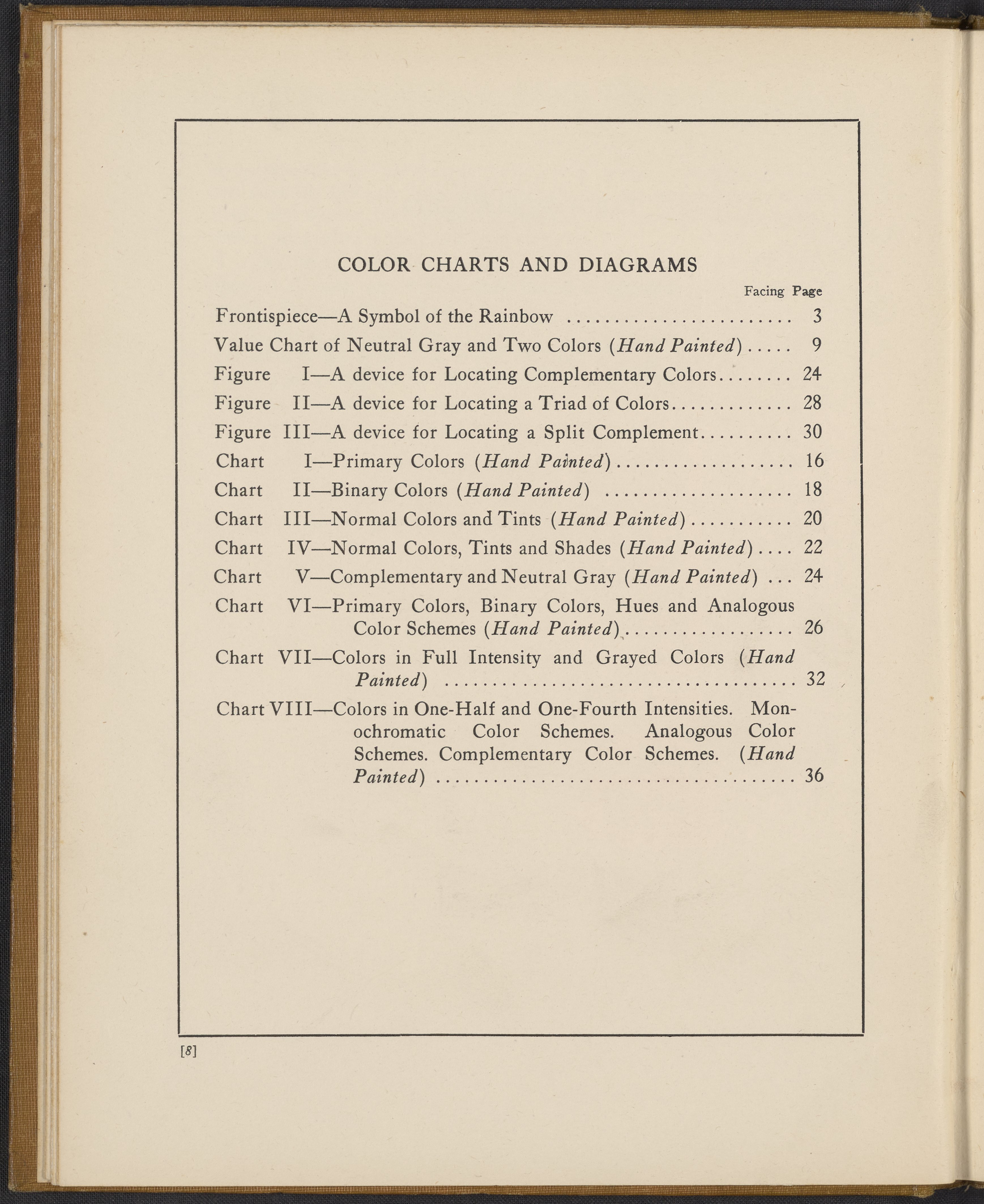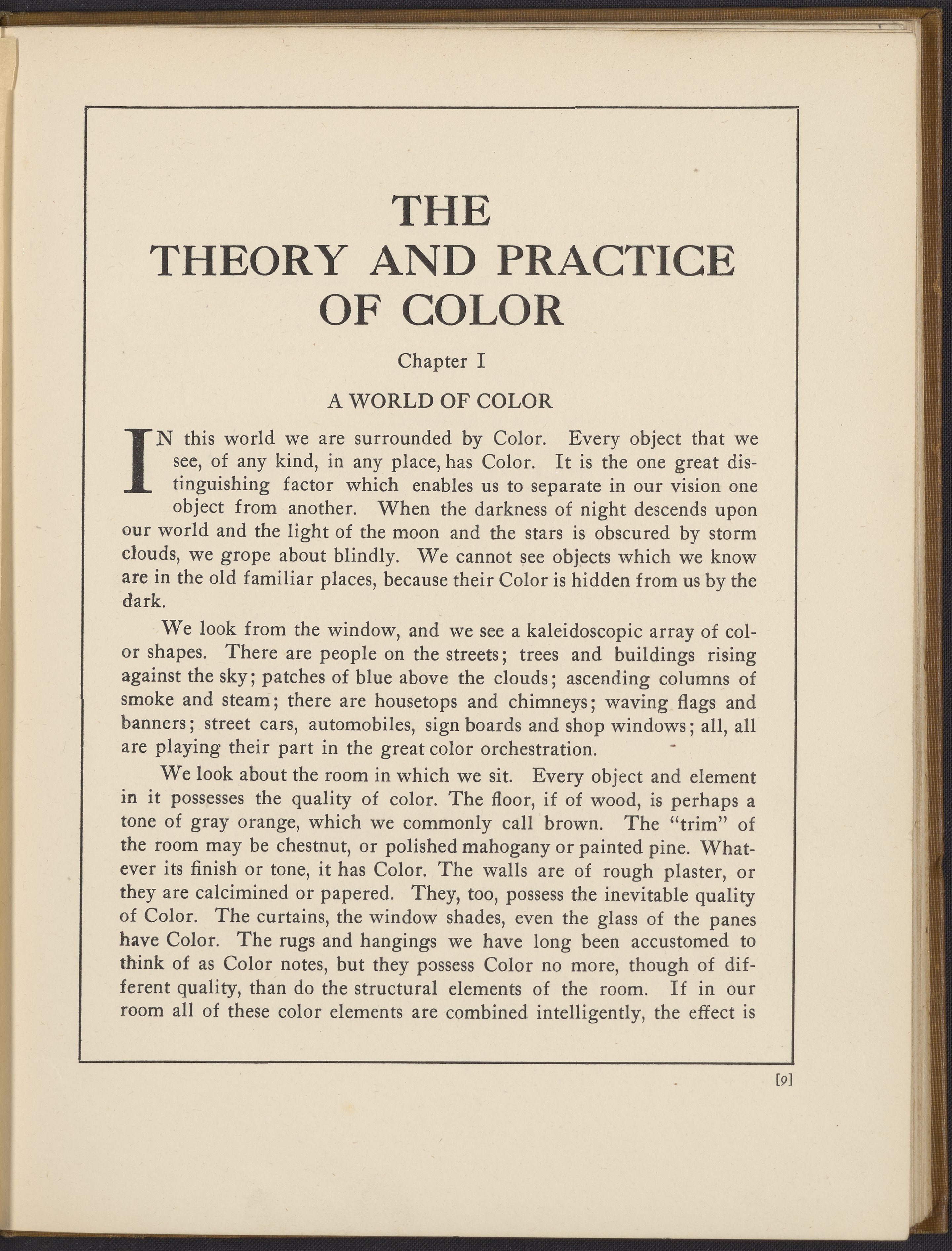 Small JPG1200 x 1483px — 460 KBLarge JPG2880 x 3558px — 2.4 MBFull-sized JPG3448 x 4260px — 3.2 MBOriginal fileTIFF — 3448 x 4260px — 42.1 MBWork intended to convey to the average person the laws and principles of color to improve their appreciation, understanding, and employment of color in daily life. Includes nine pages of color samples that collectively illustrate concepts of color theory.