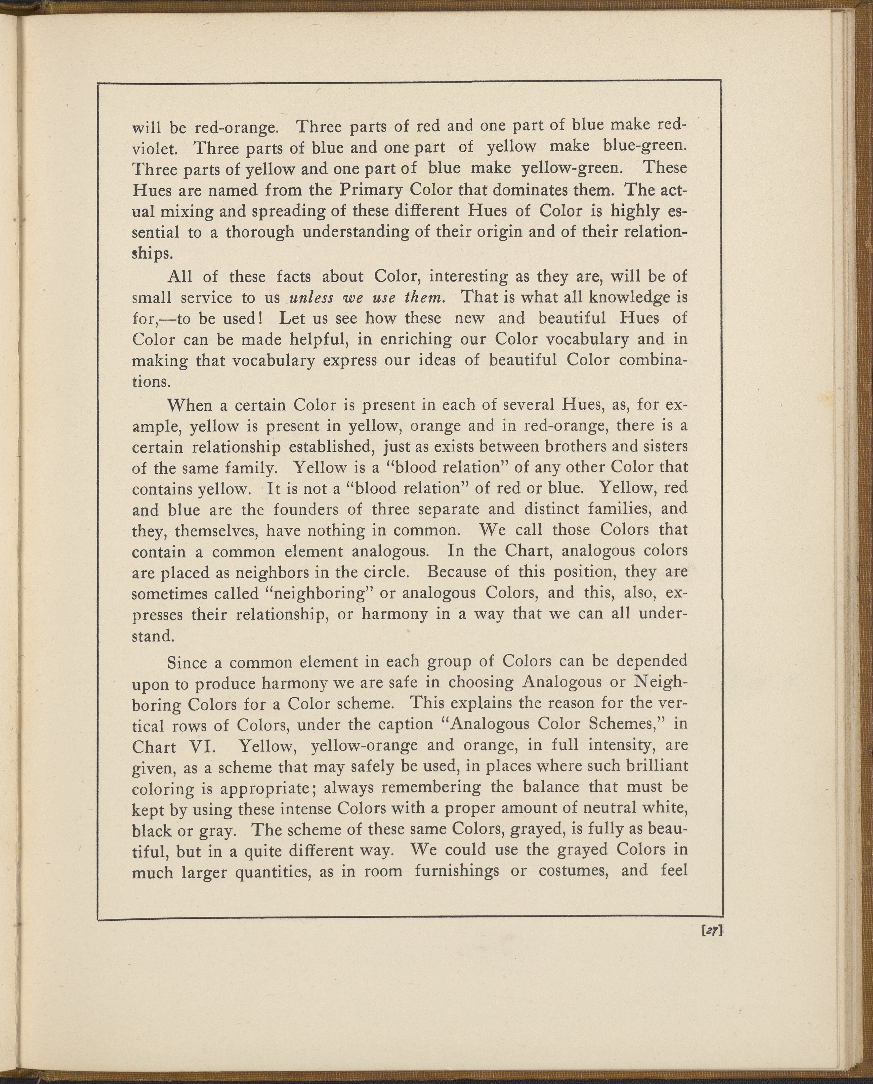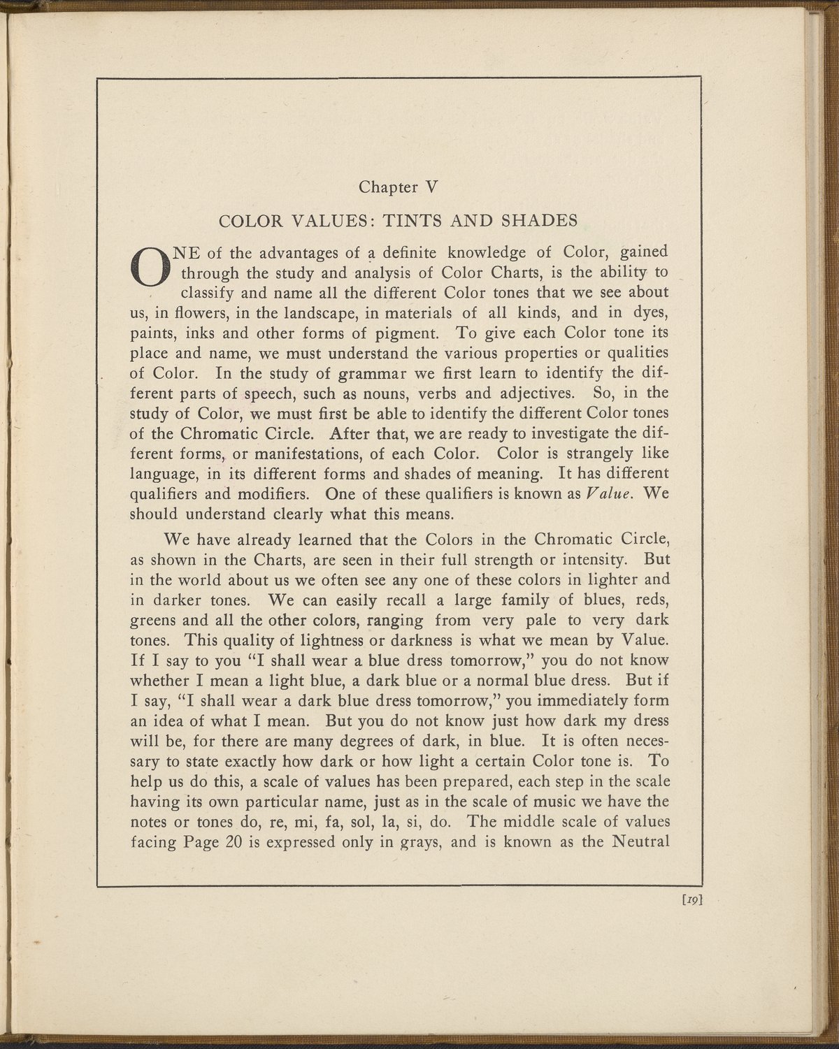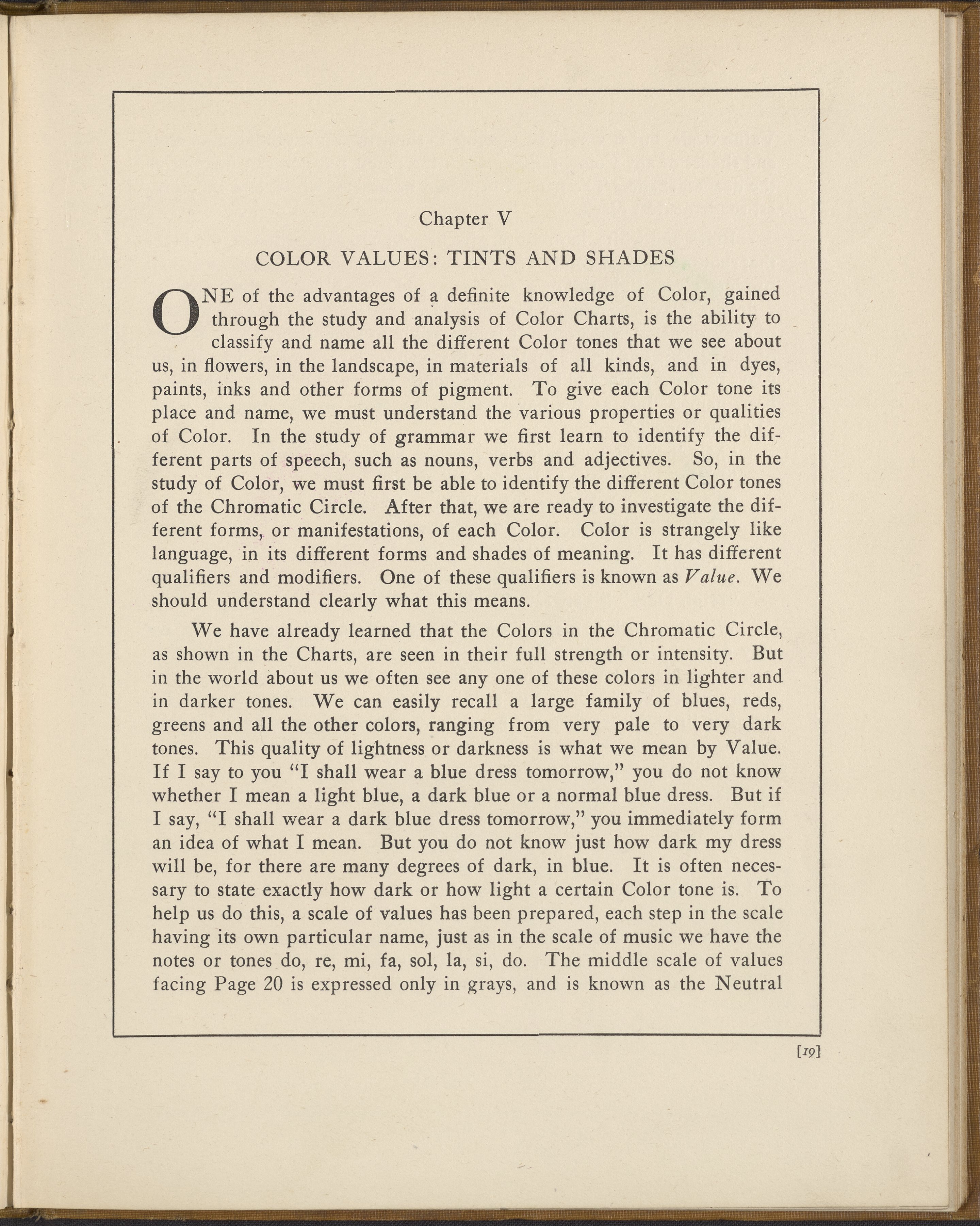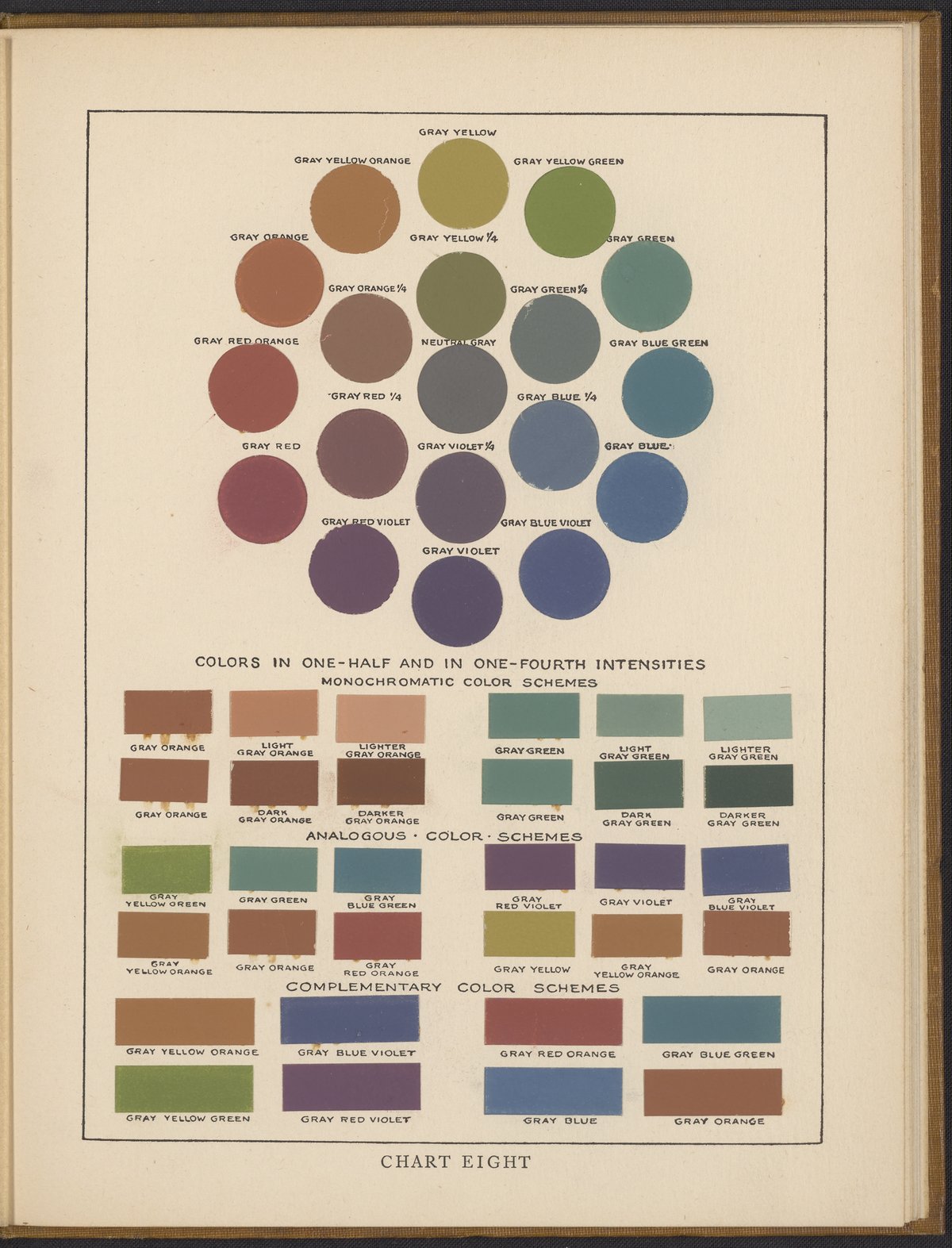 Small JPG1200 x 1483px — 460 KBLarge JPG2880 x 3558px — 2.4 MBFull-sized JPG3448 x 4260px — 3.2 MBOriginal fileTIFF — 3448 x 4260px — 42.1 MBWork intended to convey to the average person the laws and principles of color to improve their appreciation, understanding, and employment of color in daily life. Includes nine pages of color samples that collectively illustrate concepts of color theory.