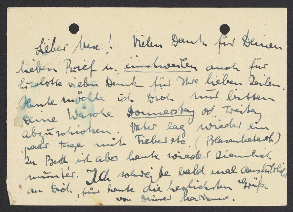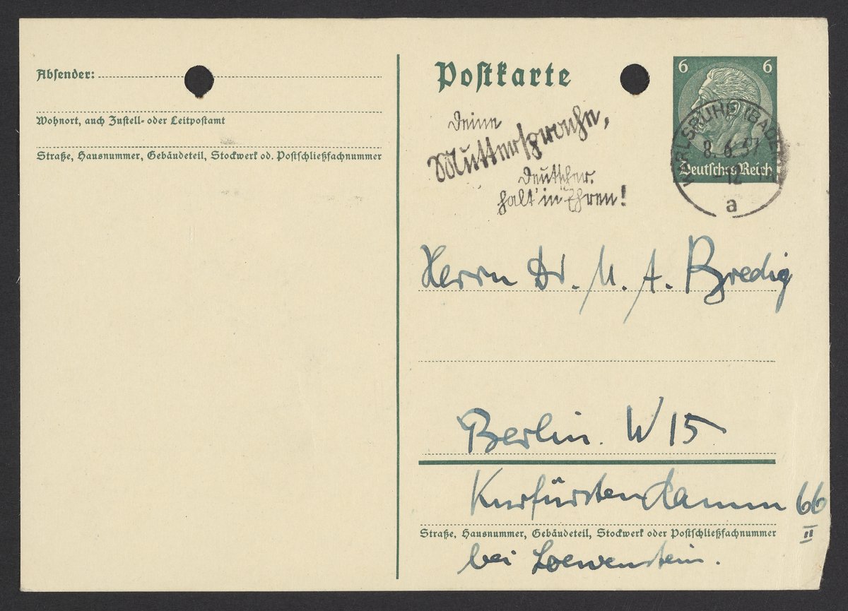 Postcard from Marianne Homburger to Max Bredig, June 8, 1937