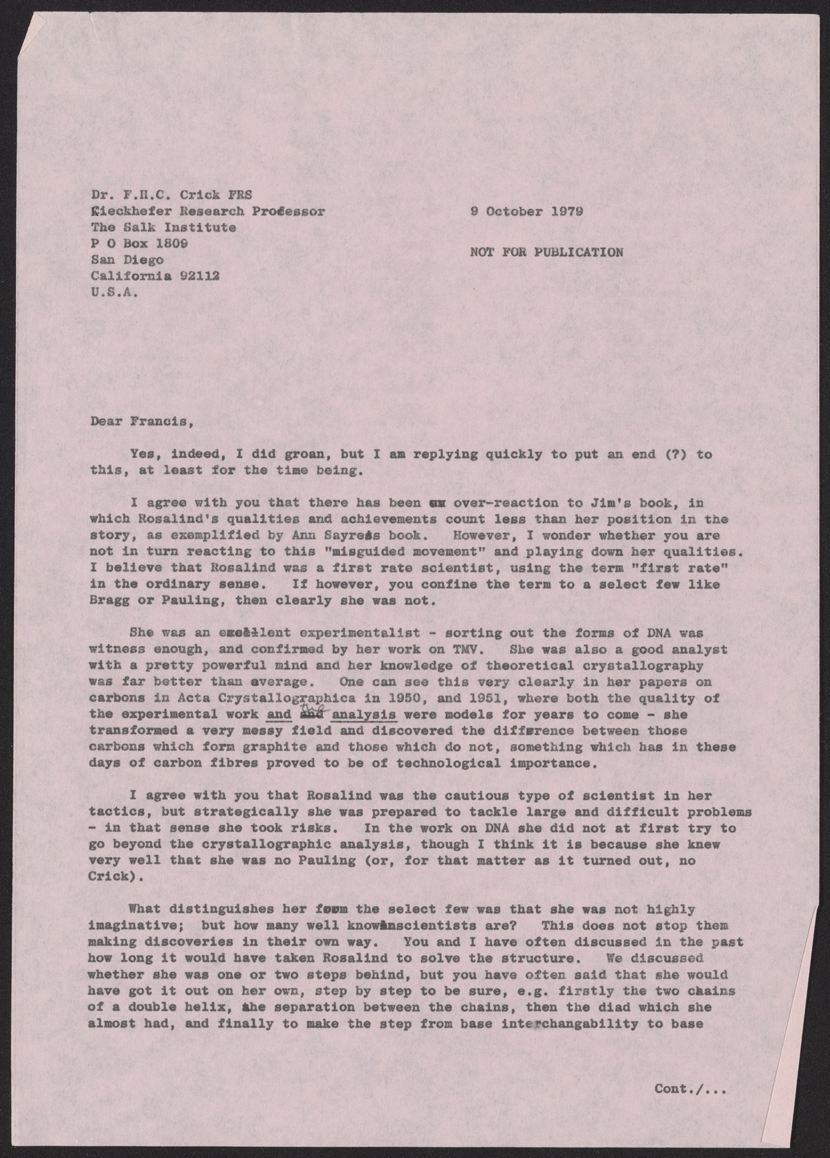 Klug, A. (Aaron), Sir. “Letter from Aaron Klug to Francis Crick, October 9, 1979,” October 9, 1979. History of Molecular Biology Collection, Box 20, Folder 3. Science History Institute. Philadelphia. https://digital.sciencehistory.org/works/50svs5p.