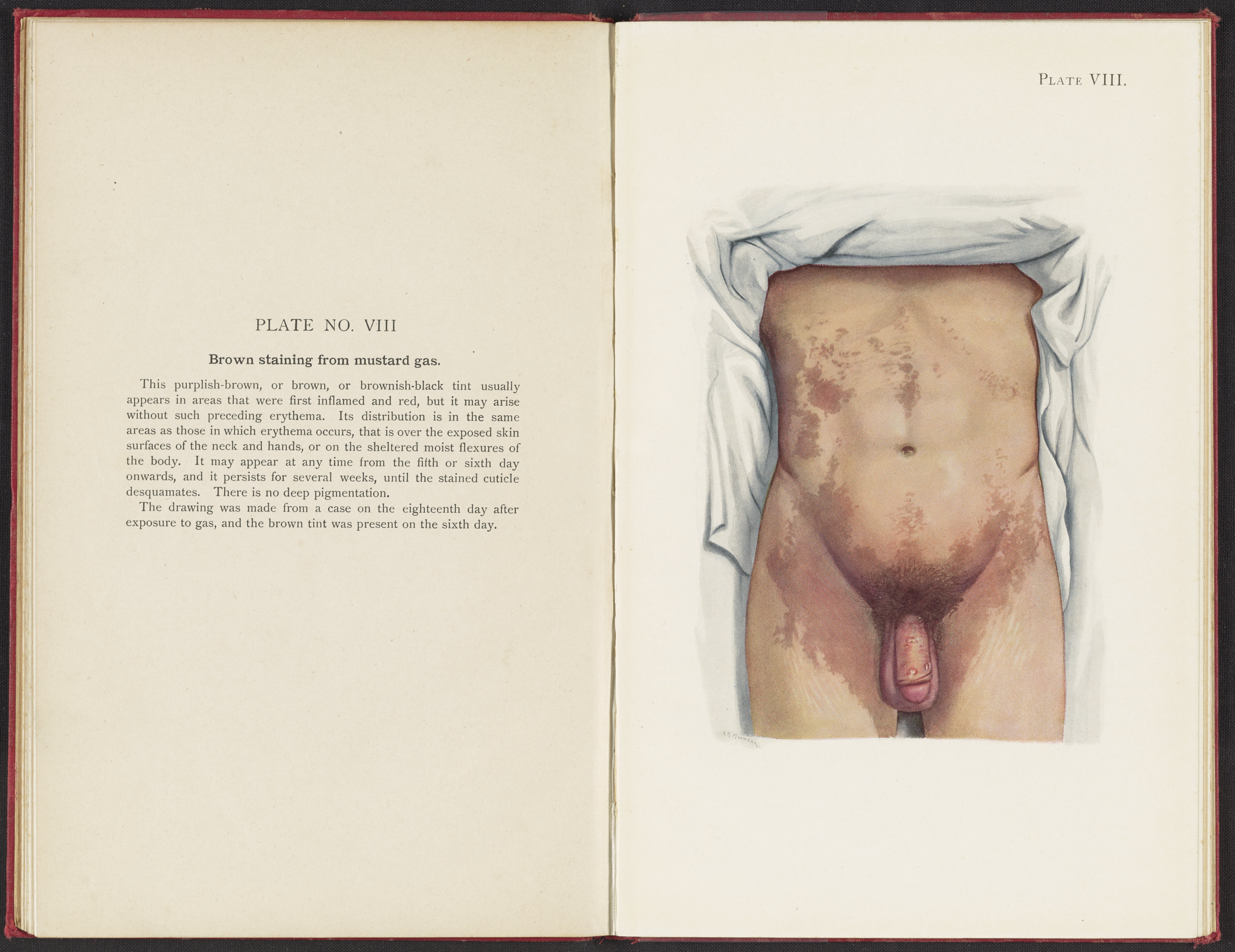 Great Britain. Medical Research Committee. “Plate VIII. Brown Staining from Mustard Gas.” An Atlas of Gas Poisoning. London, England, 1918. https://digital.sciencehistory.org/works/5138jd856.