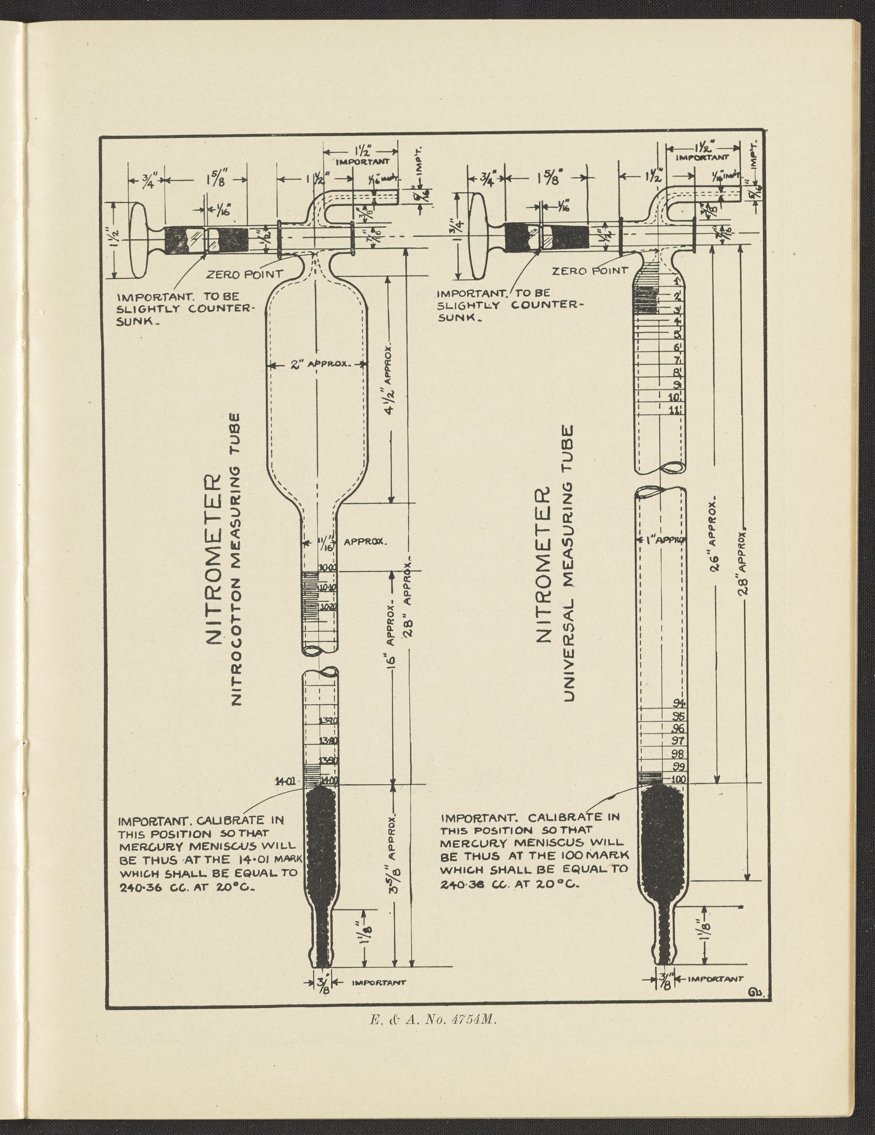 “Specifications for Nitrometers, Nitrocotton and Universal.” Standard Laboratory Apparatus Adopted by the Manufacturing Chemists Association of the United States Part 1. New York (State): Eimer & Amend, 1922. https://digital.sciencehistory.org/works/5425k972c.