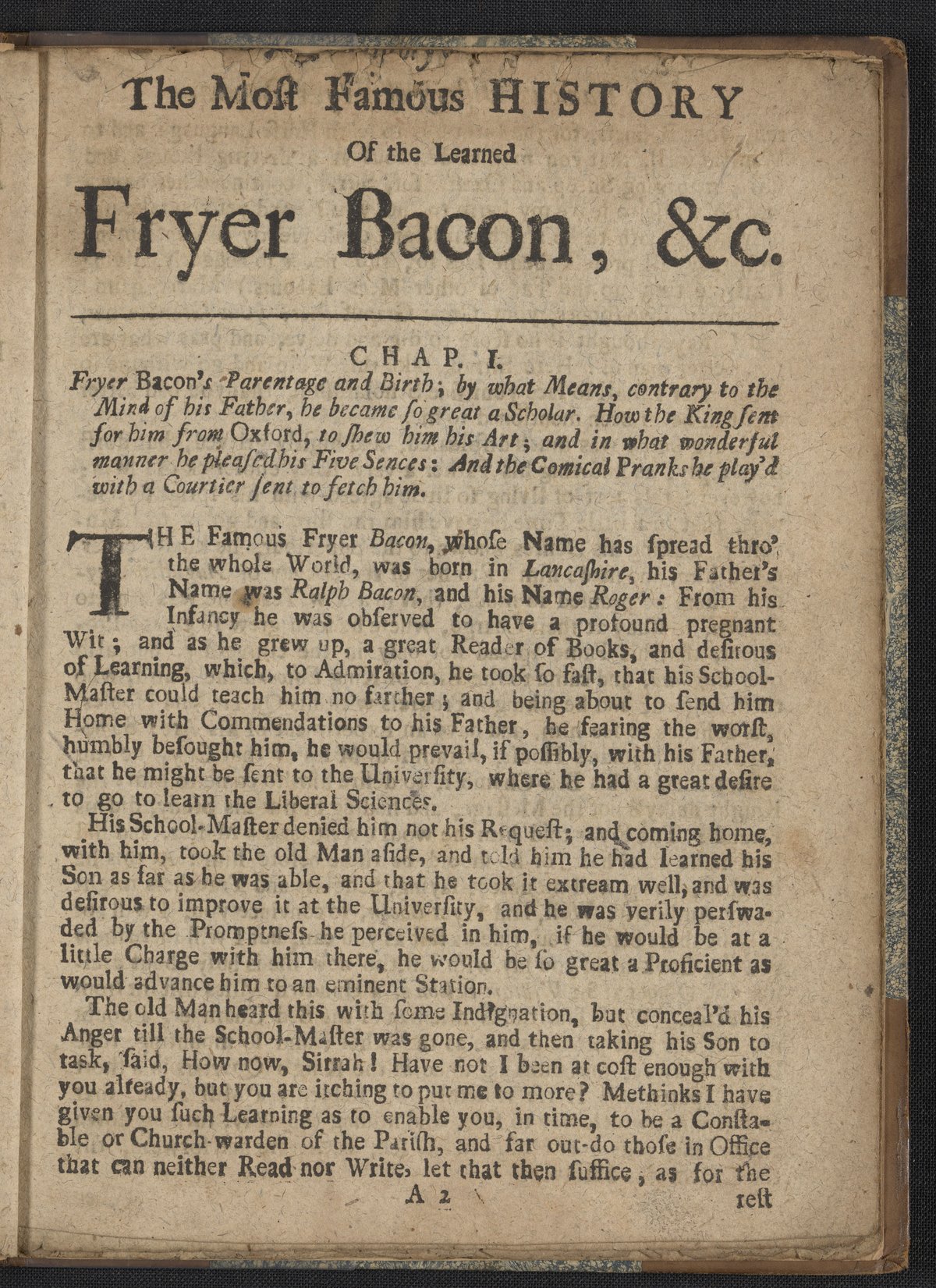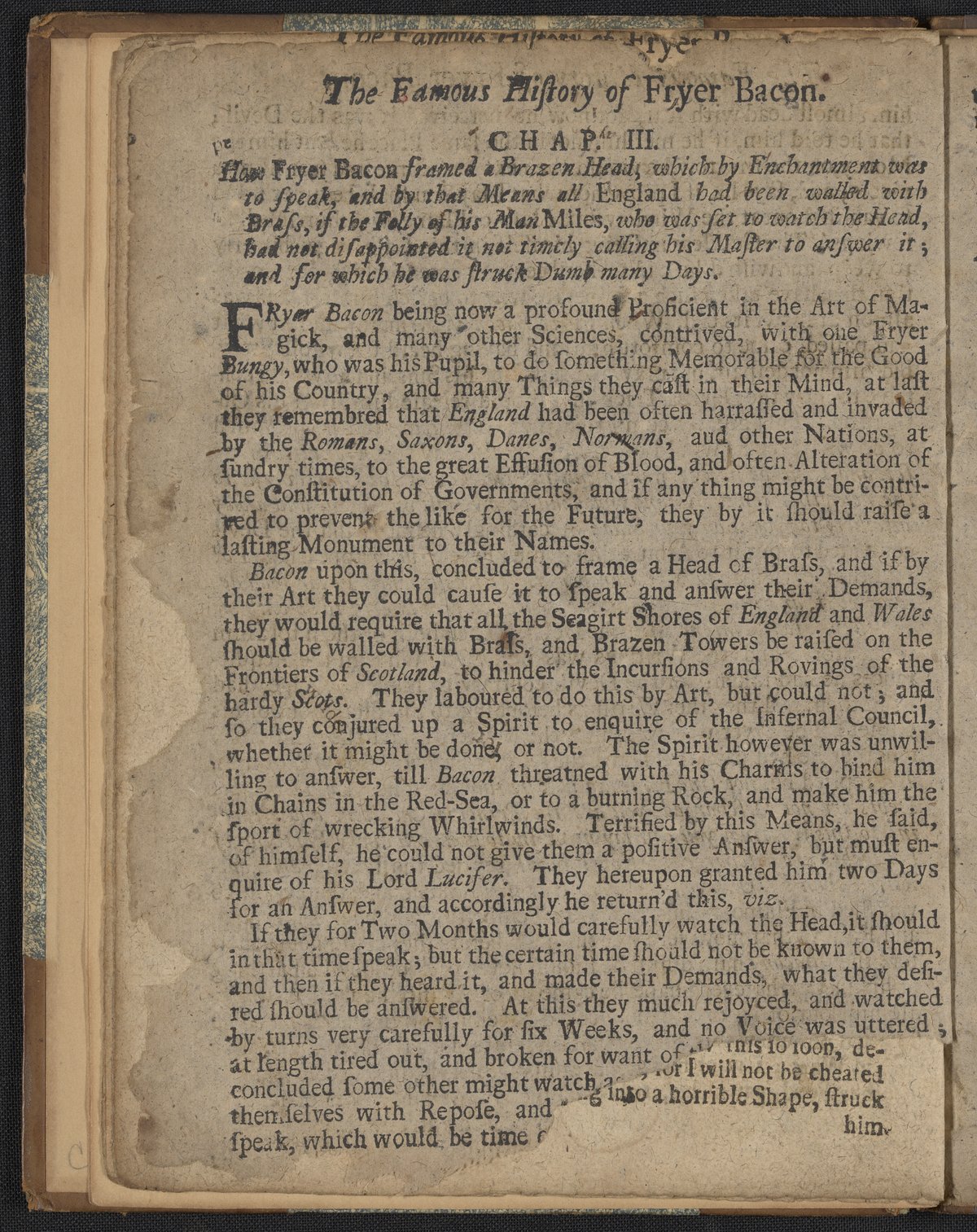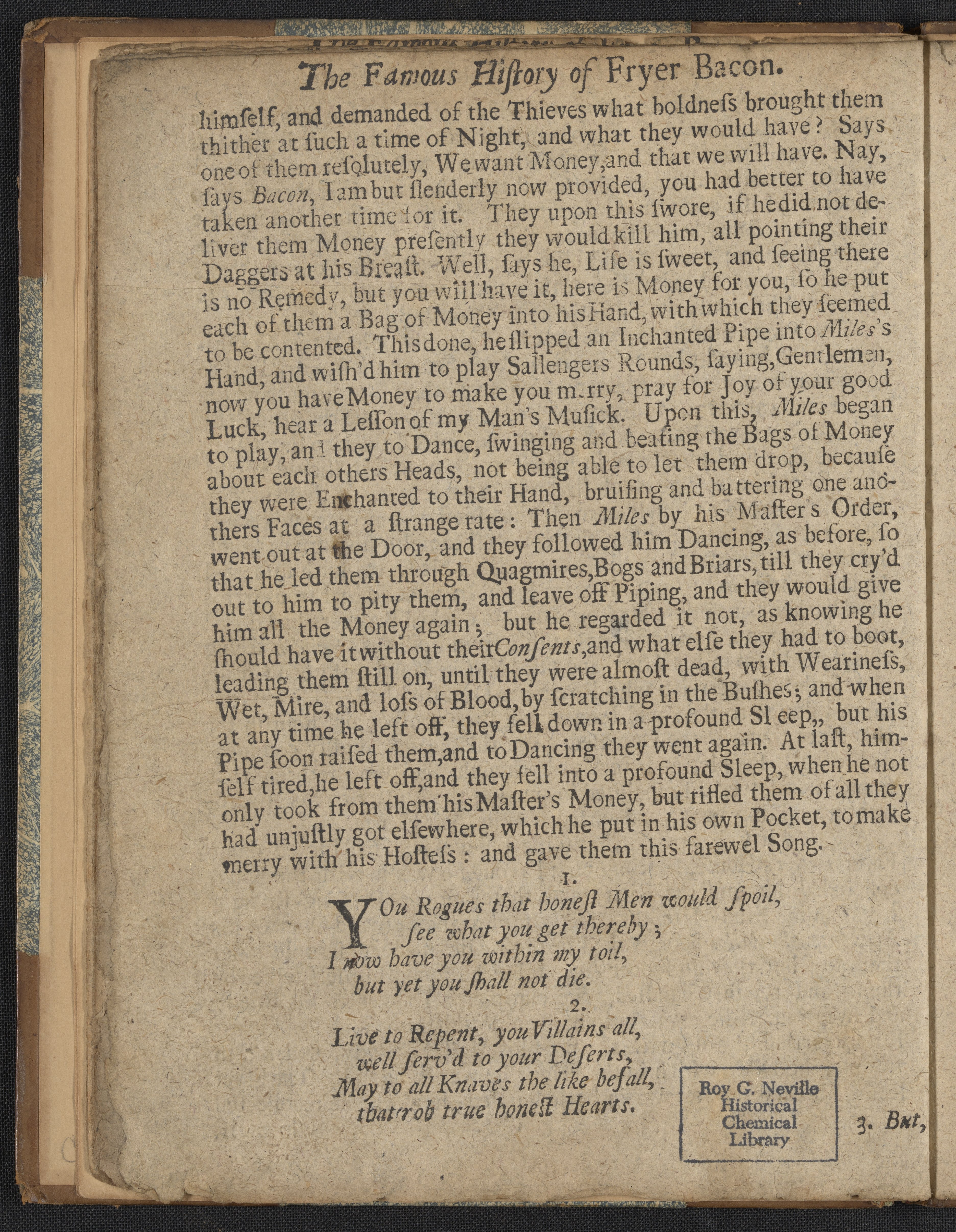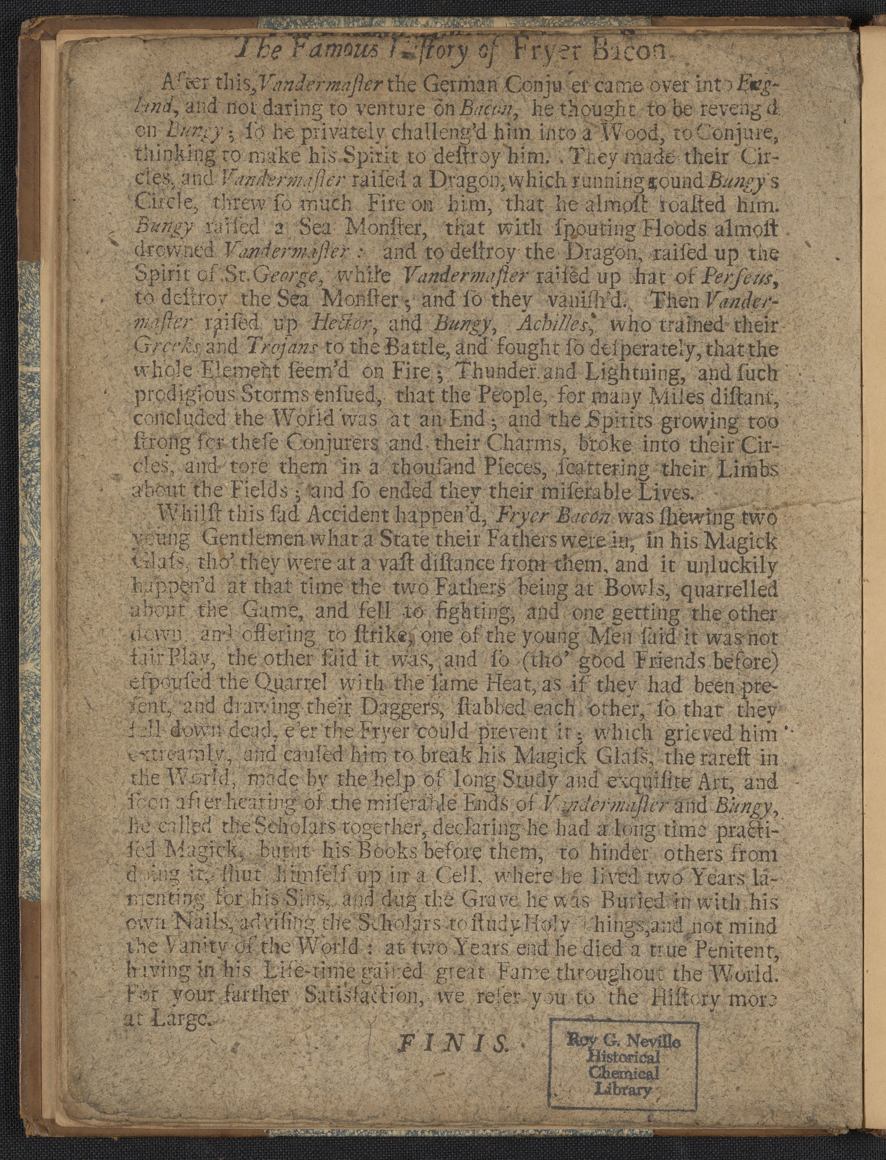 The Most Famous History of the Learned Fryer Bacon, 1500–1599. https://digital.sciencehistory.org/works/54pkvzr.