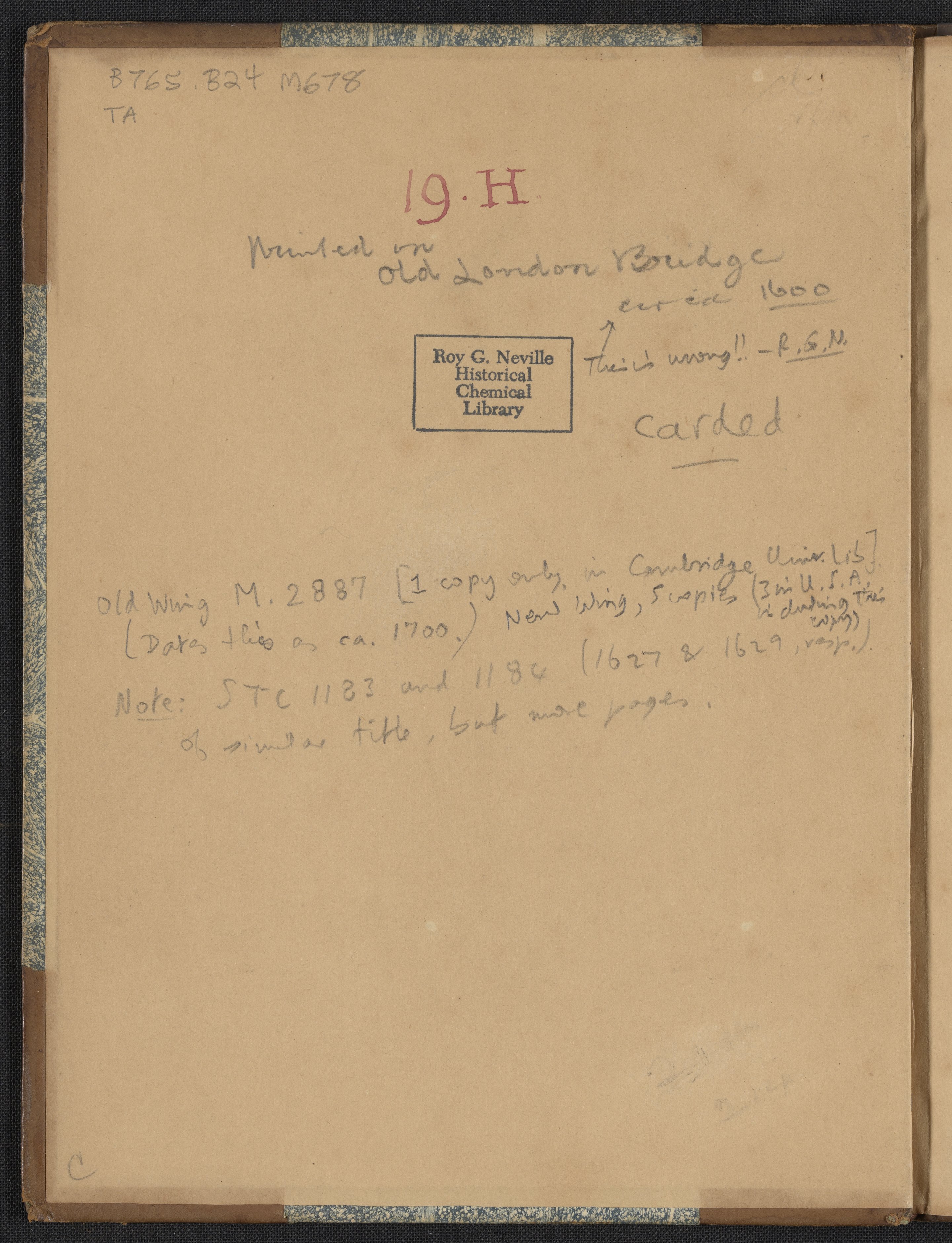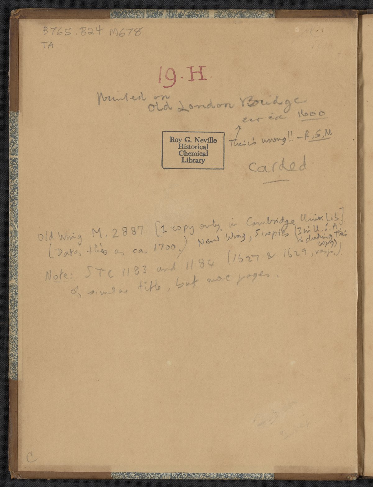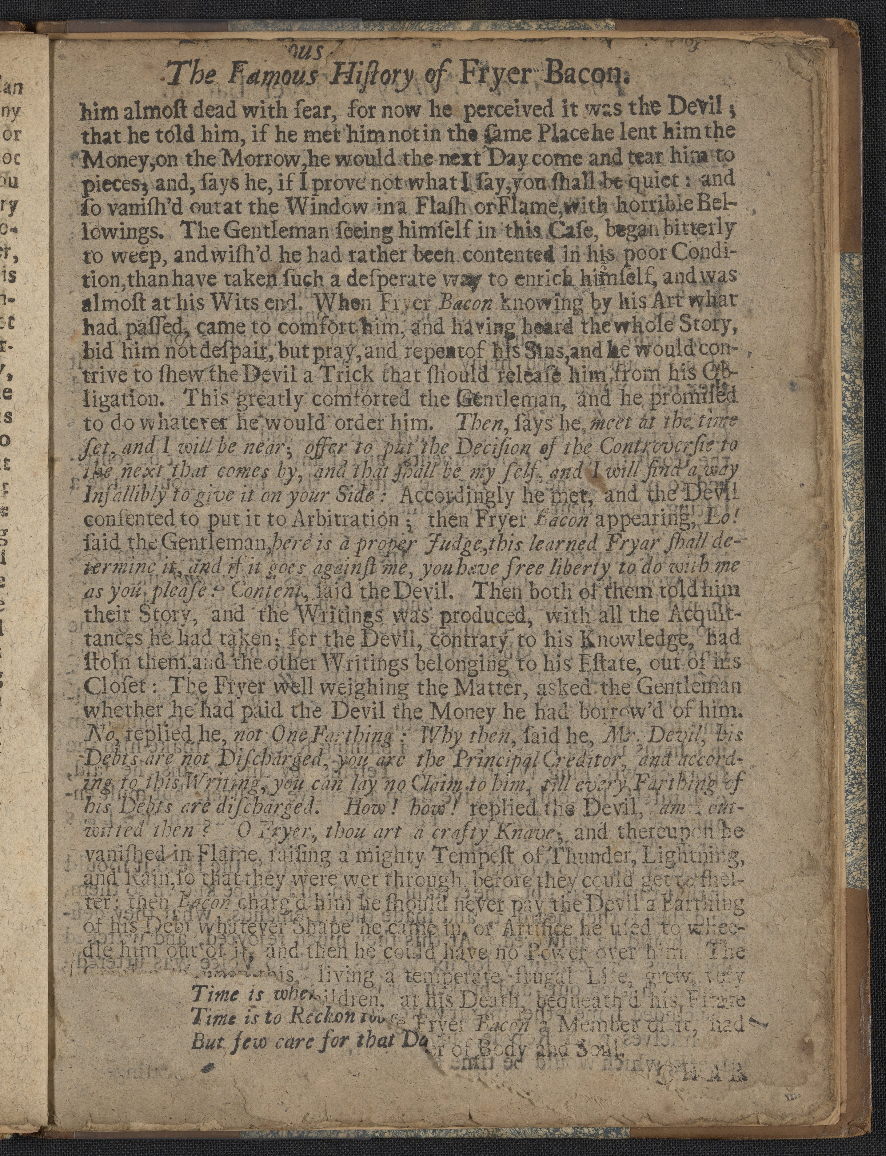Small JPG1200 x 1573px — 554 KBLarge JPG2880 x 3776px — 2.8 MBFull-sized JPG3626 x 4754px — 4.1 MBOriginal fileTIFF — 3626 x 4754px — 49.3 MBAn early edition of an anonymous chapbook written probably towards the end of the sixteenth century, on which Robert Greene may have founded his play "The honorable historie of Friar Bacon and Friar Bongay." Many different editions and versions of the chapbook were published over the next two centuries, probably rewritten by different authors. There were two principal versions distinguished by length and completeness; this is the shorter version.