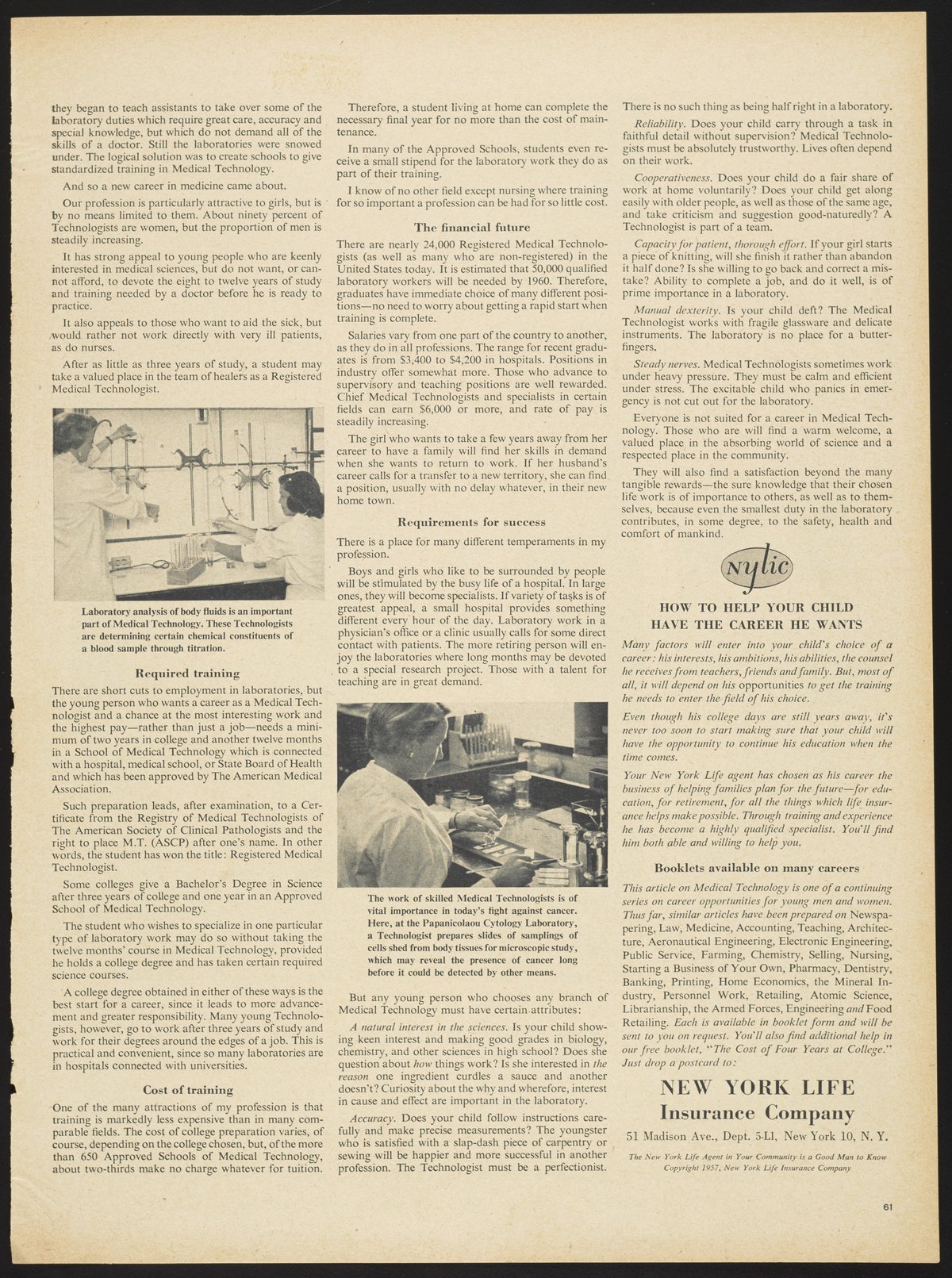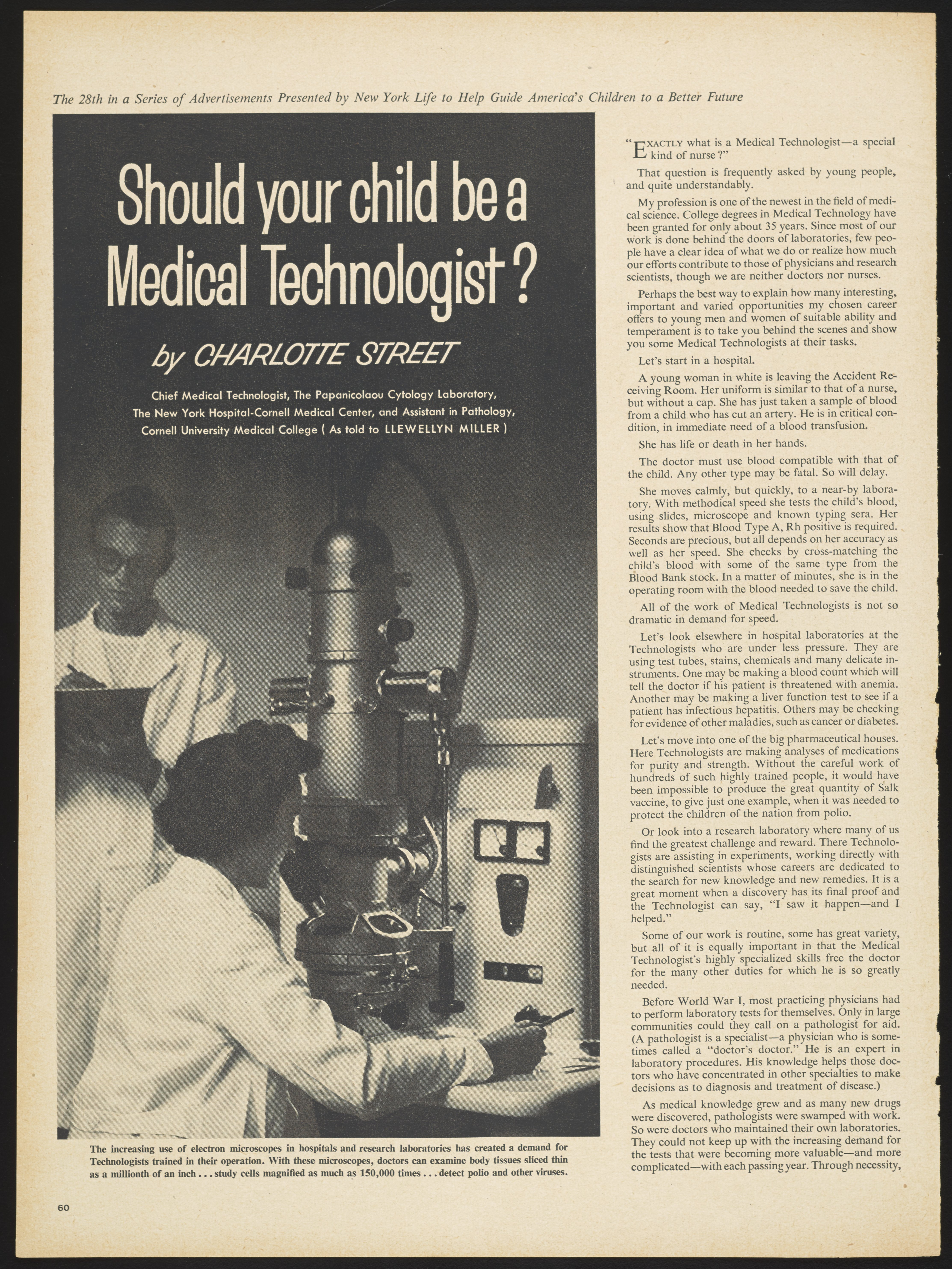 Street, Charlotte. “Should Your Child Be a Medical Technologist?,” October 21, 1957. Science History Institute. Philadelphia. https://digital.sciencehistory.org/works/5712m6834.