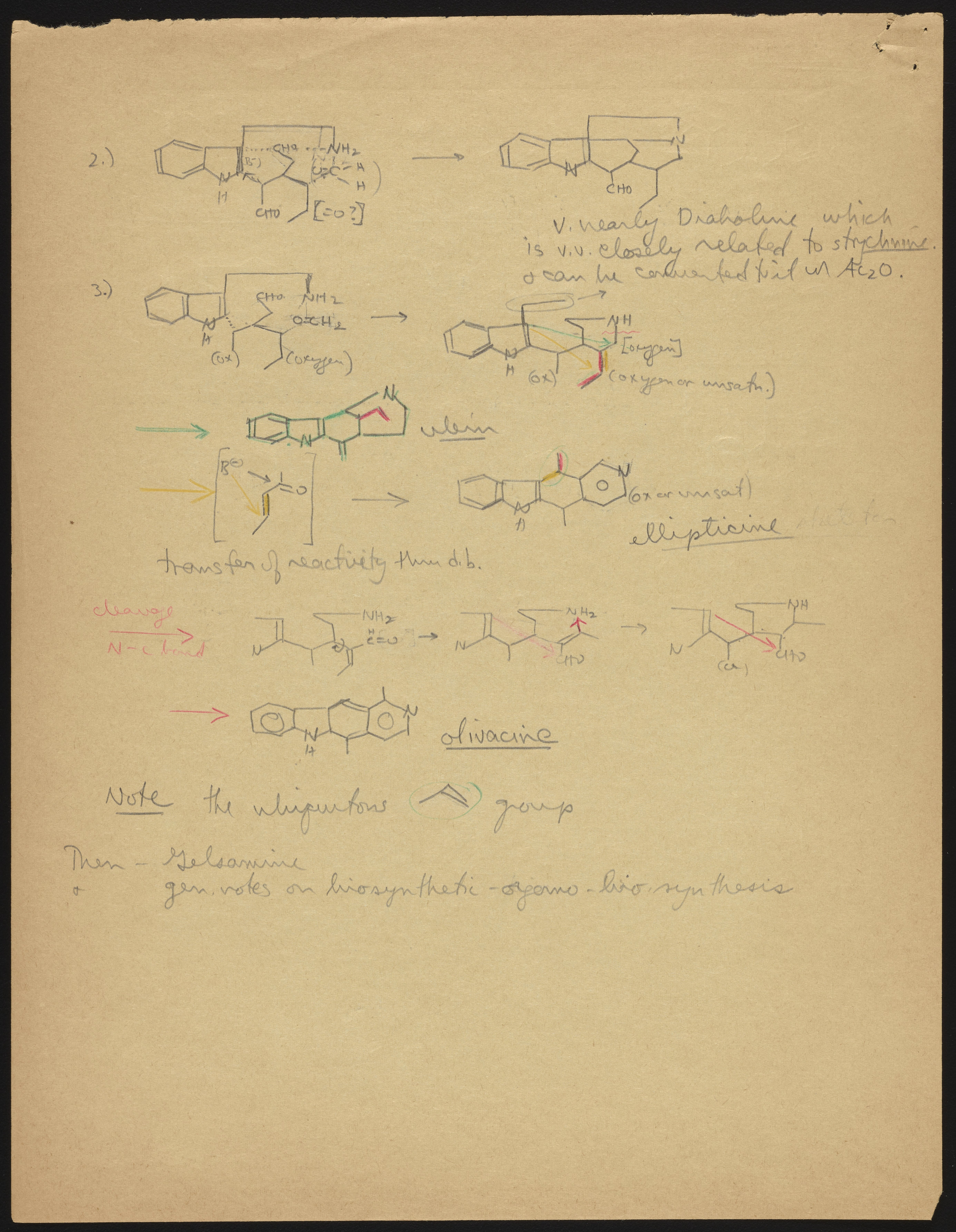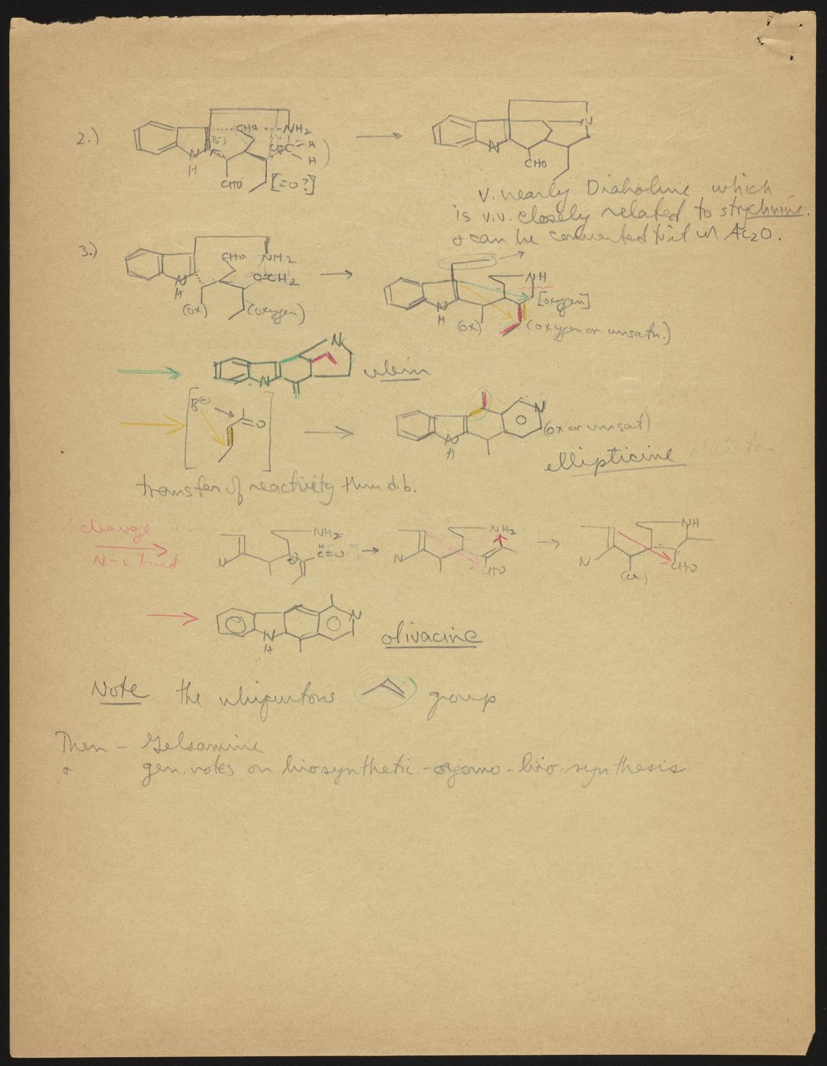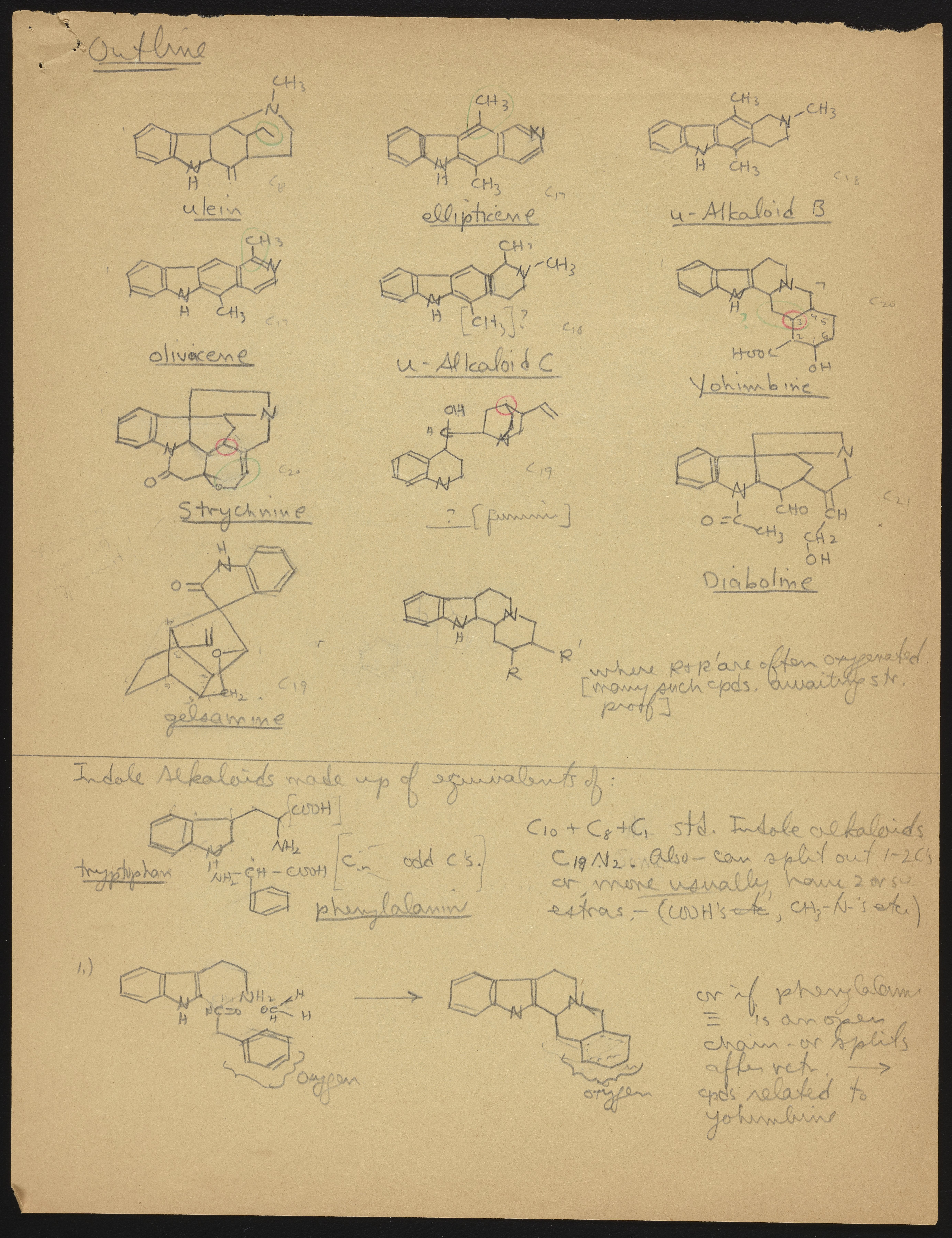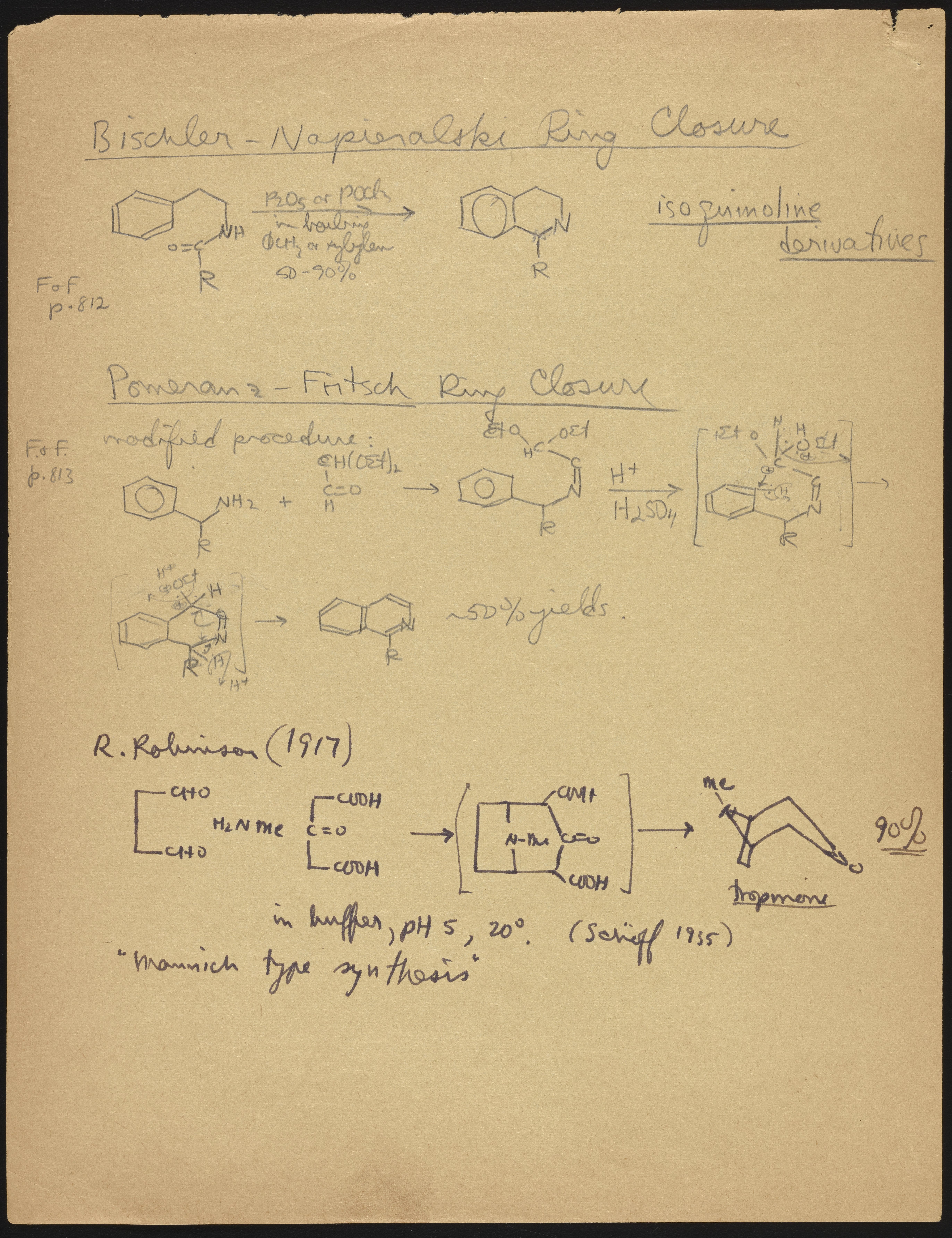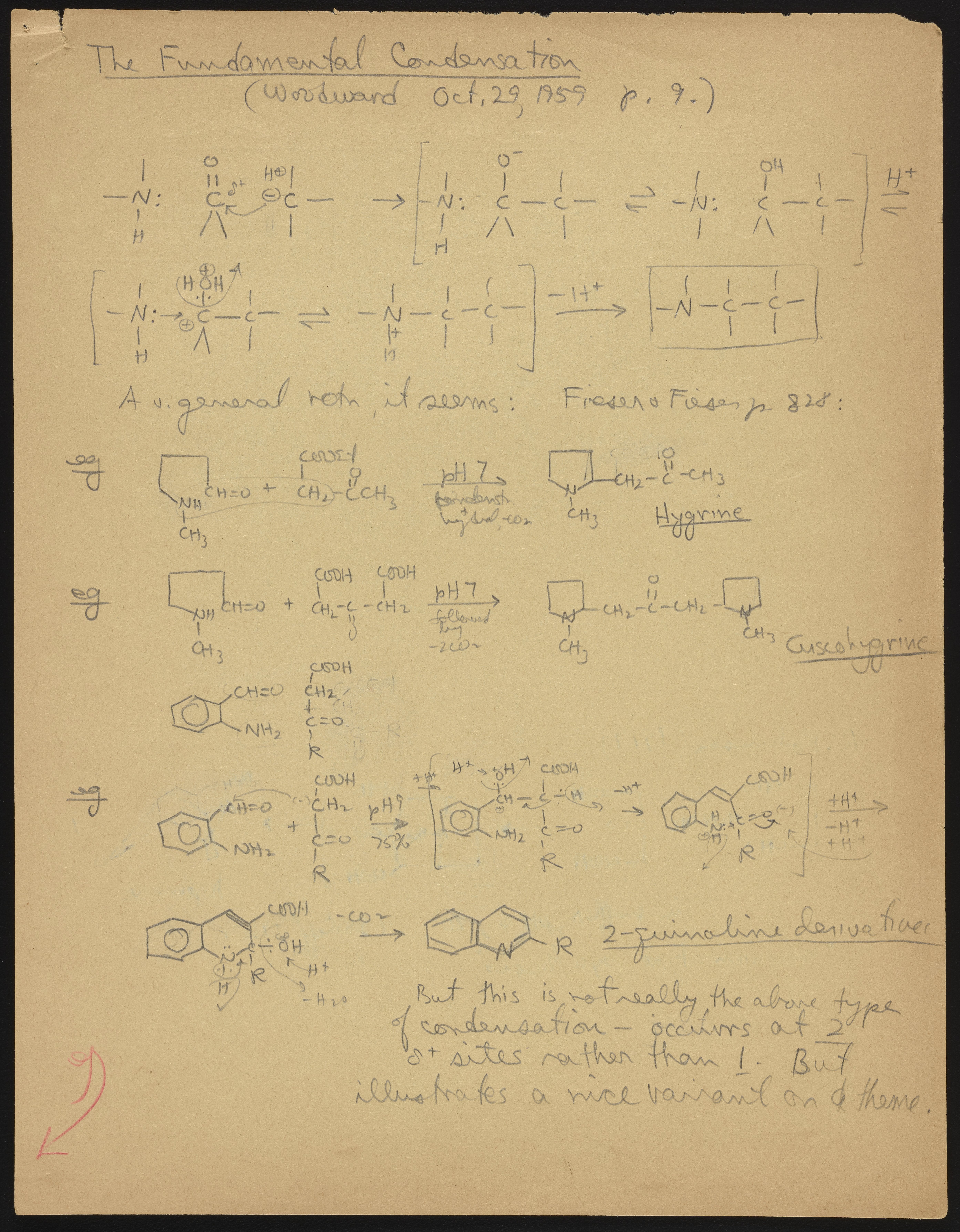 Kohler, Robert E. “R. B. (Robert Burns) Woodward Seminar Entitled ‘The Fundamental Condensation.’” Notes from R. B. (Robert Burns) Woodward's Seminars, circa 1959–1966. Folder 2. Science History Institute. Philadelphia. https://digital.sciencehistory.org/works/5712m745x.