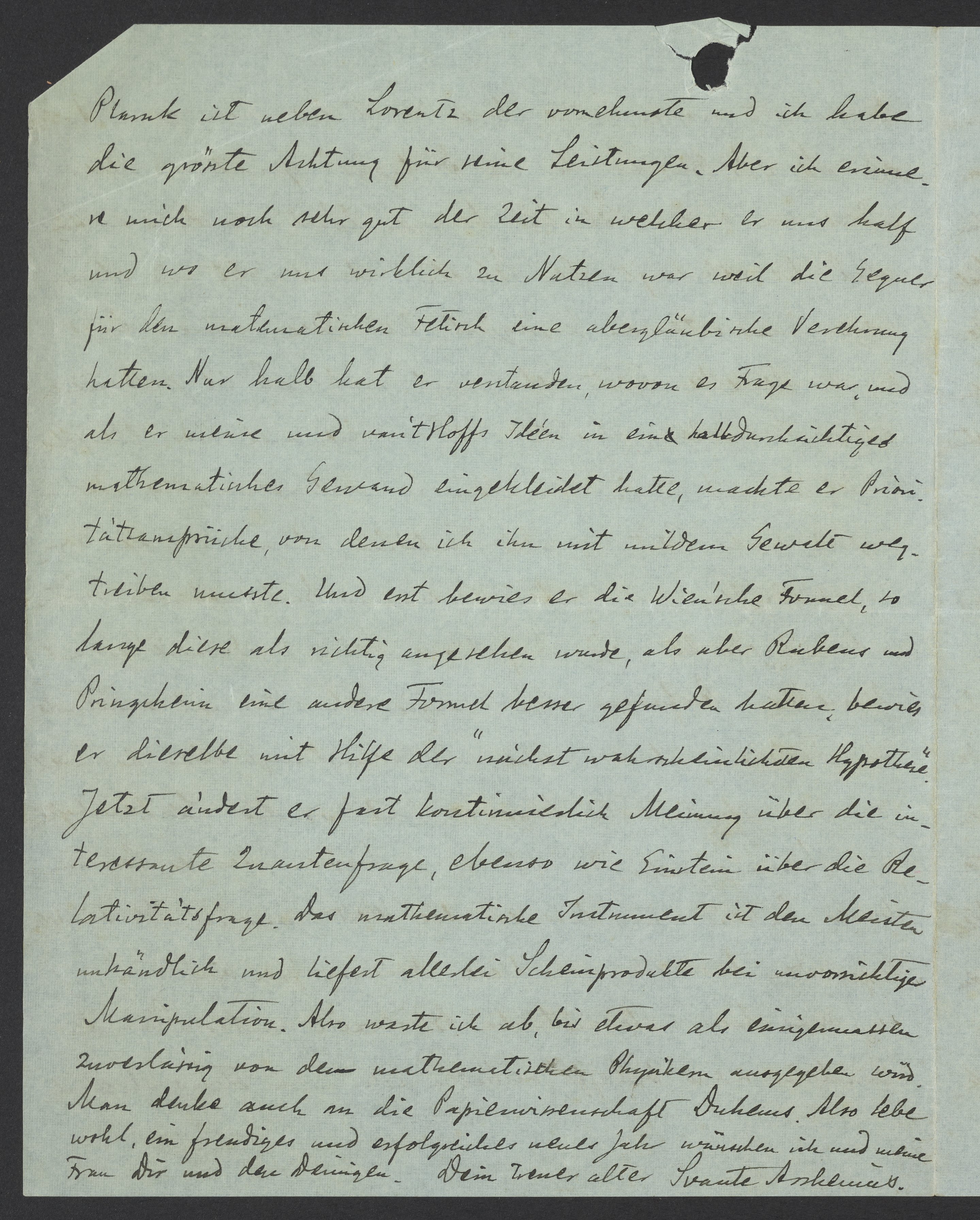 Letter from Svante Arrhenius to Georg Bredig, January 1913