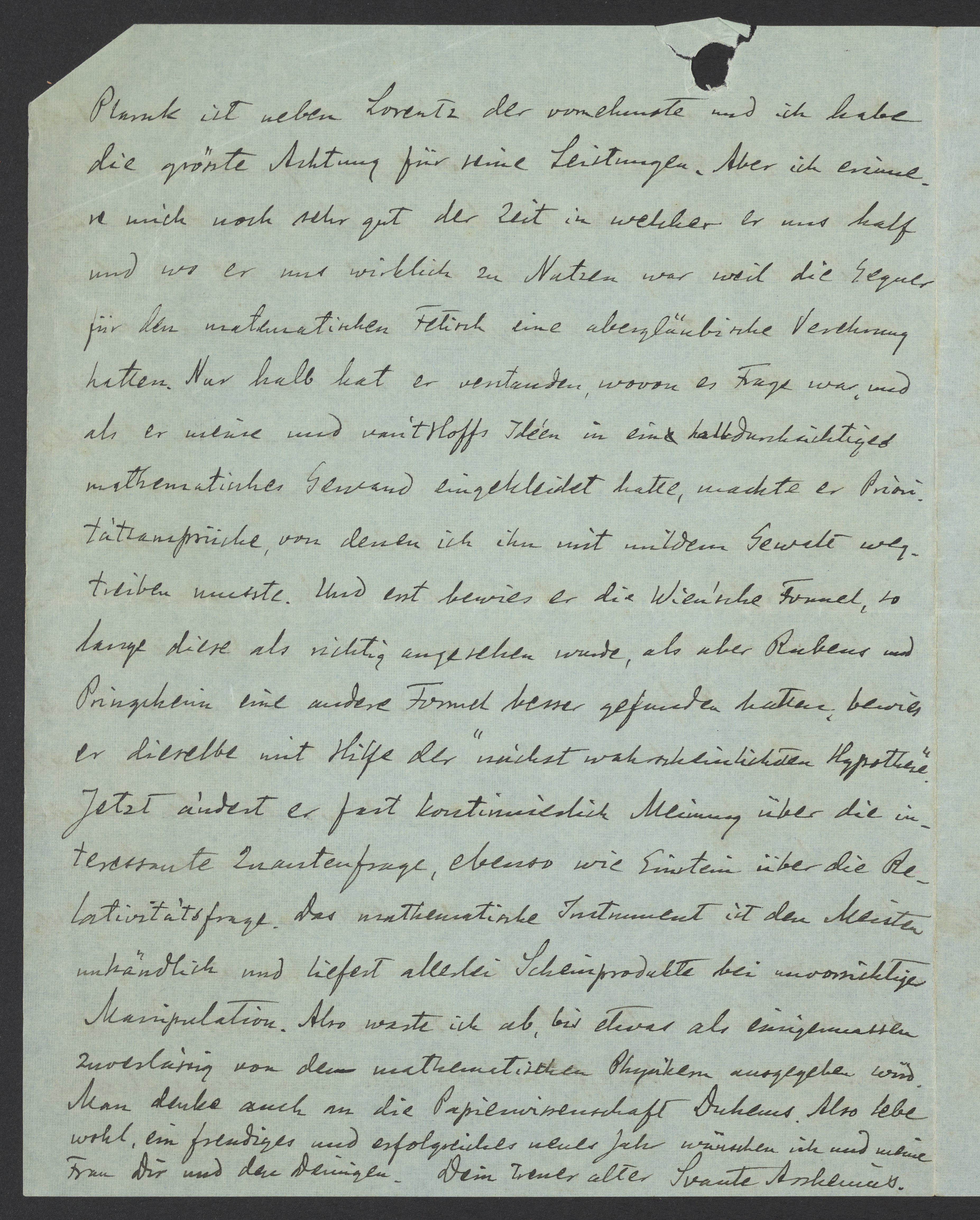 Letter from Svante Arrhenius to Georg Bredig, January 1913
