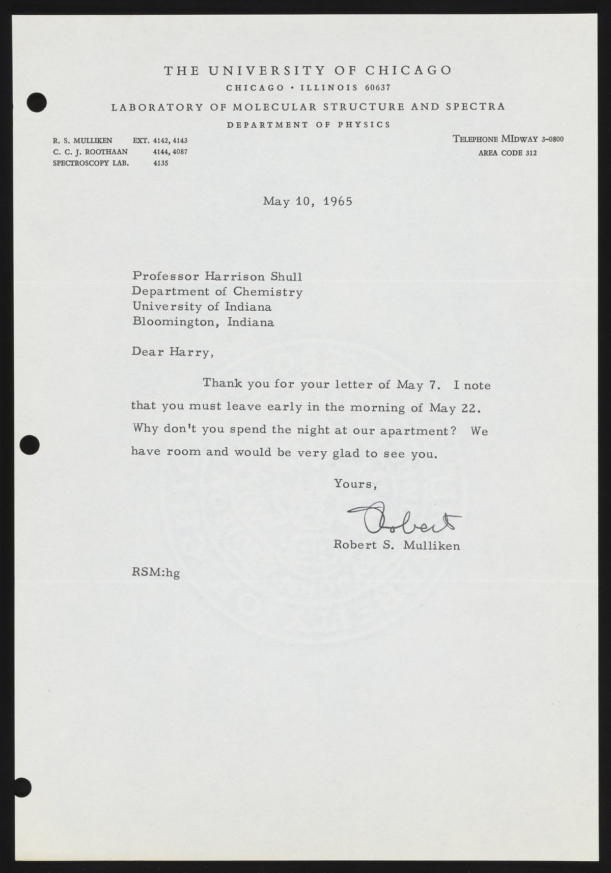 Mulliken, Robert Sanderson. “Letter from Robert S. Mulliken to Harrison Shull, 1965,” May 10, 1965. Robert S. Mulliken & Harrison Shull Correspondence, Box 1. Science History Institute. Philadelphia. https://digital.sciencehistory.org/works/5999n344x.