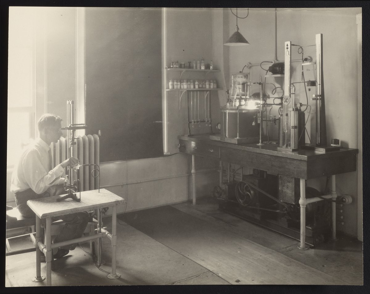 “Dick Adams Using Apparatus to Determine the Hygroscopicity of Fertilizer Materials,” circa 1928. Travis P. Hignett Collection of Fixed Nitrogen Research Laboratory Photographs, Box 3. Science History Institute. Philadelphia. https://digital.sciencehistory.org/works/5d86p058h.