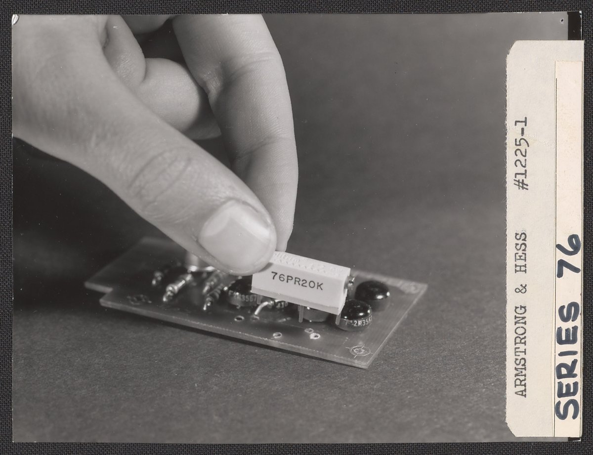 Armstrong & Hess. “Hand Holding a Helitrim Series 76 Trimming Potentiometer,” 1950–1969. Beckman Historical Collection, Box 85. Science History Institute. Philadelphia. https://digital.sciencehistory.org/works/5d86p061t.