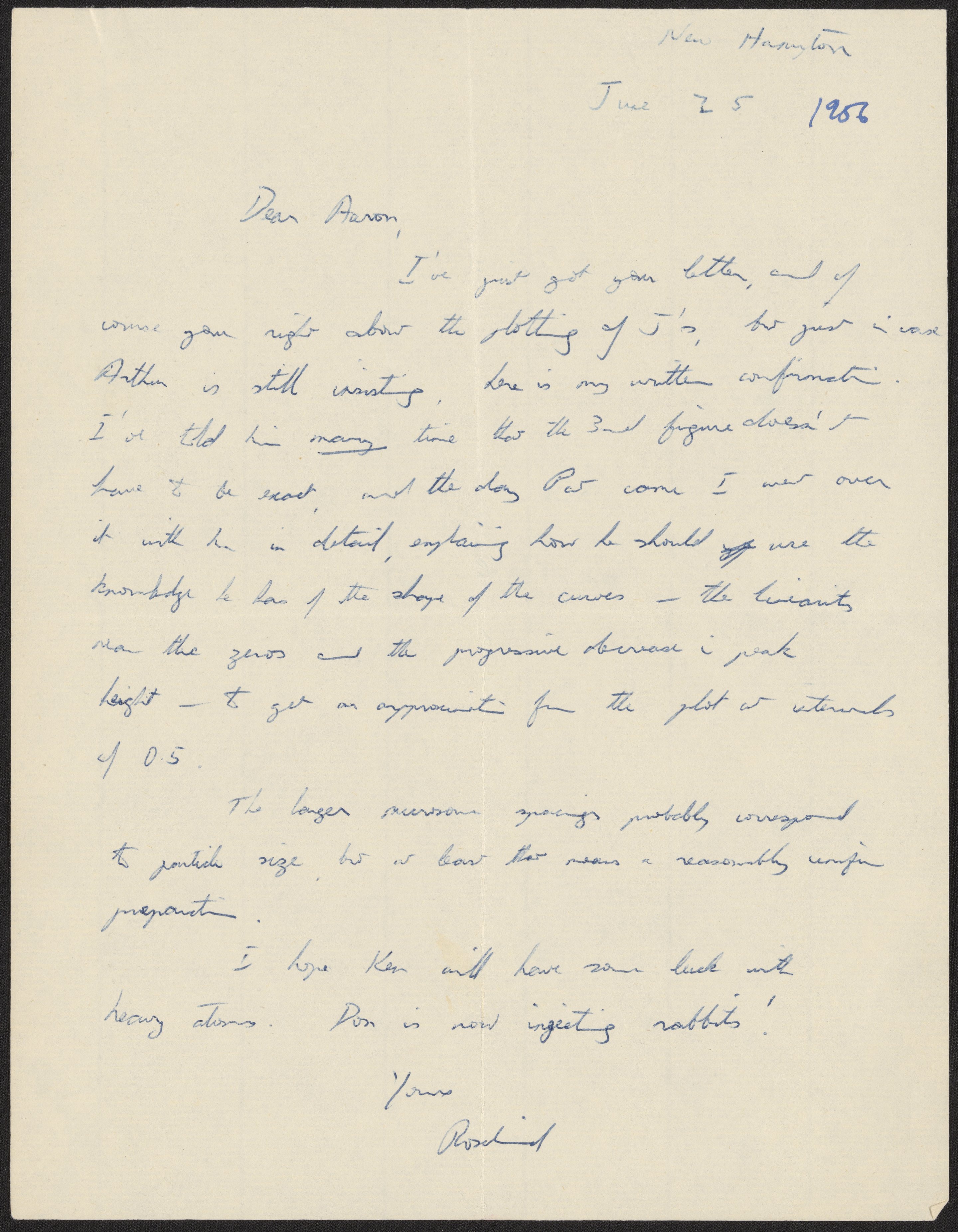 Letter from Rosalind Franklin to Aaron Klug, June 25, 1956