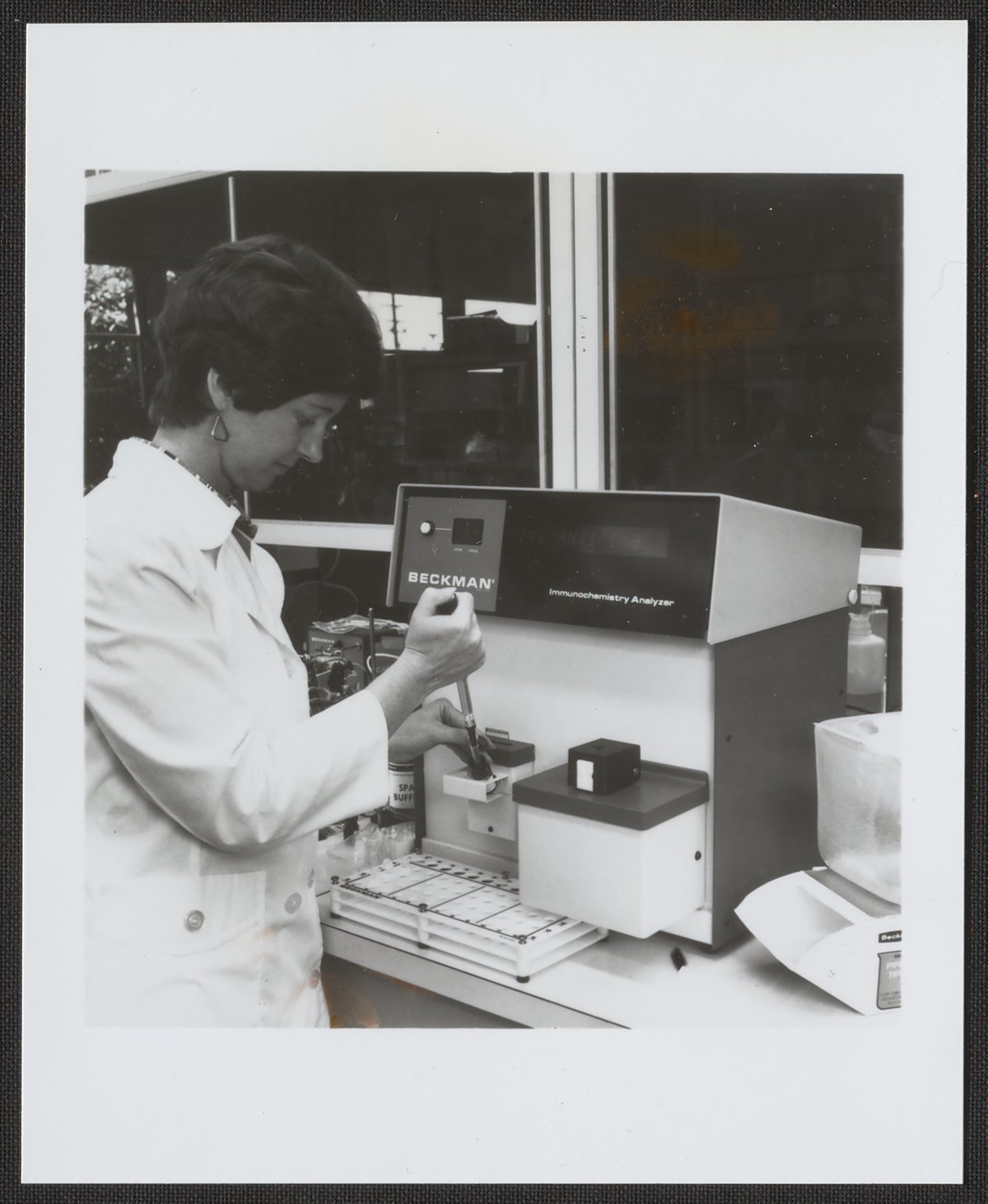 Woman using a Beckman Immunochemistry Analyzer