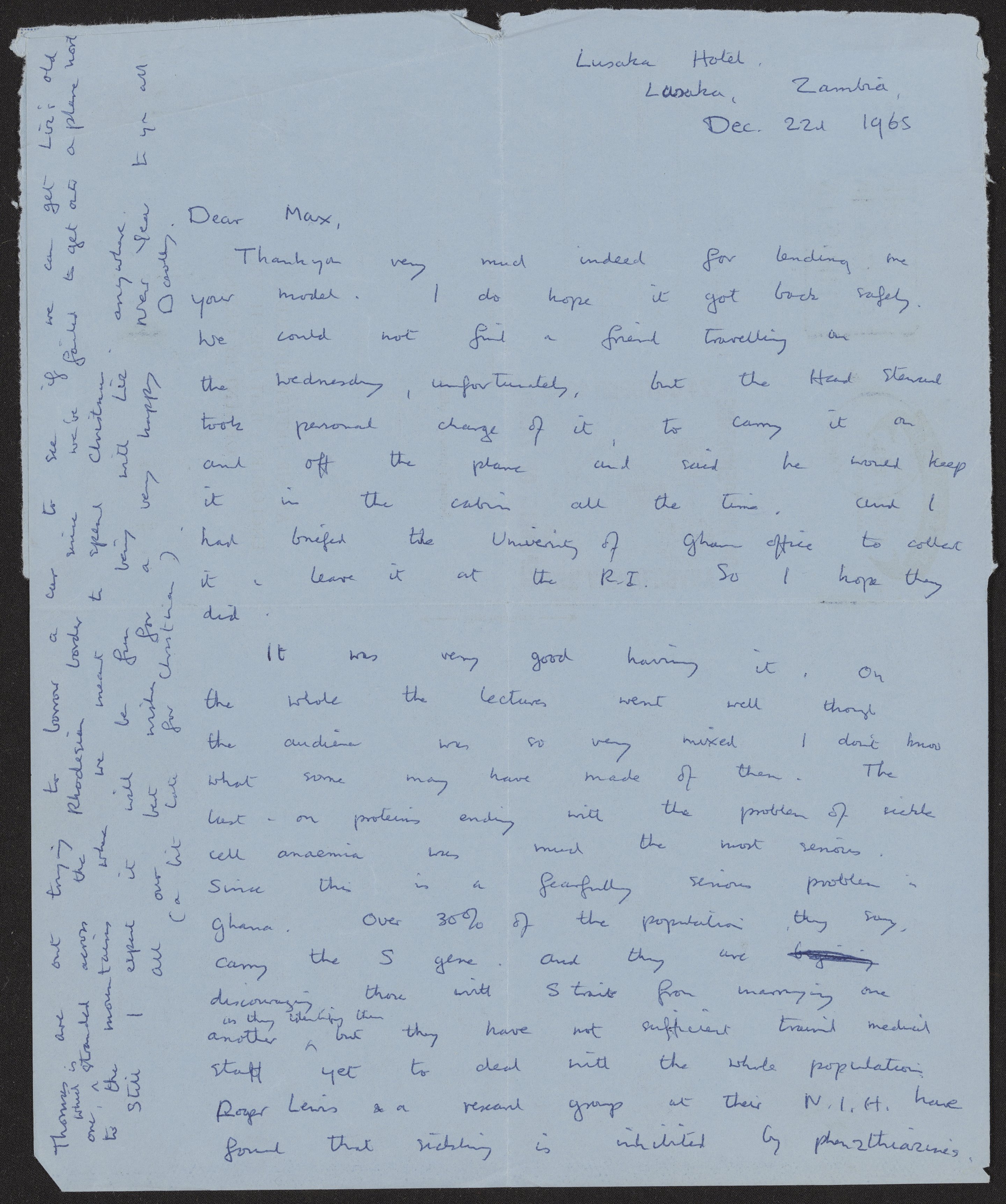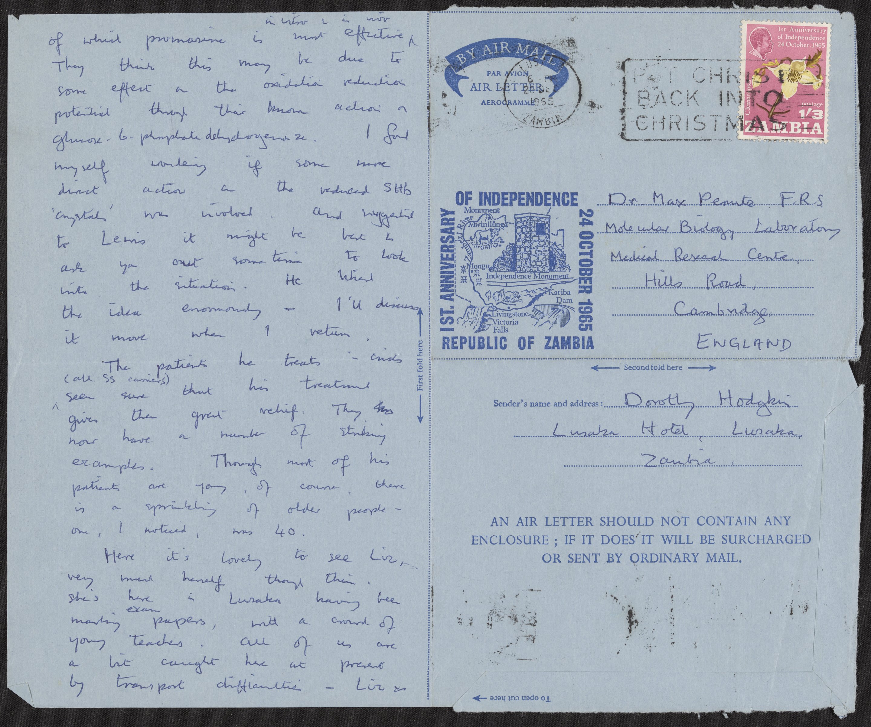Letter from Dorothy Hodgkin to Max Perutz, December 22, 1965