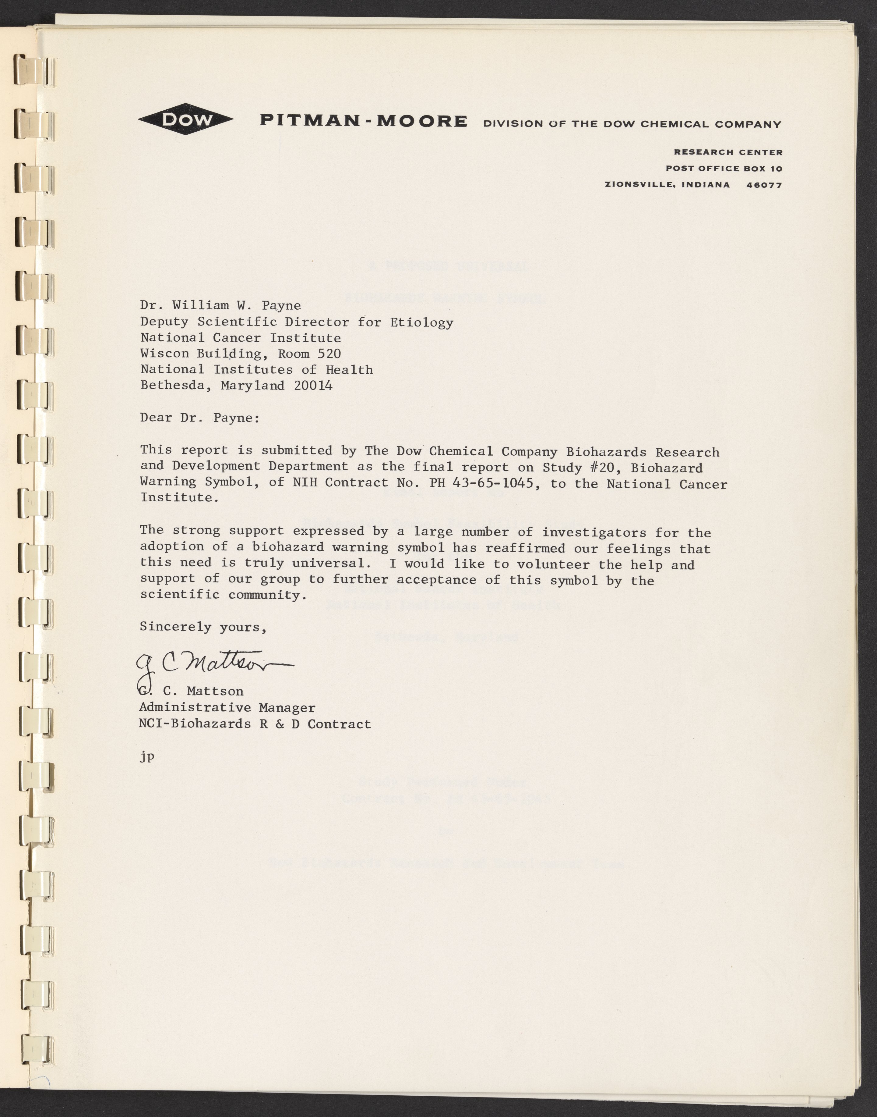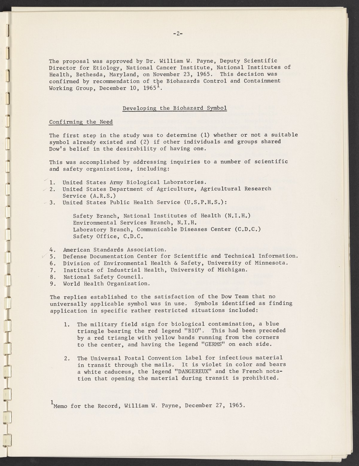Small JPG1200 x 1535px — 204 KBLarge JPG2880 x 3683px — 1.3 MBFull-sized JPG5456 x 6977px — 4.5 MBOriginal fileTIFF — 5456 x 6977px — 109 MBReport submitted by the Dow Chemical Company Biohazard Research and Development Team to the National Cancer Institute regarding a universal biohazard symbol.