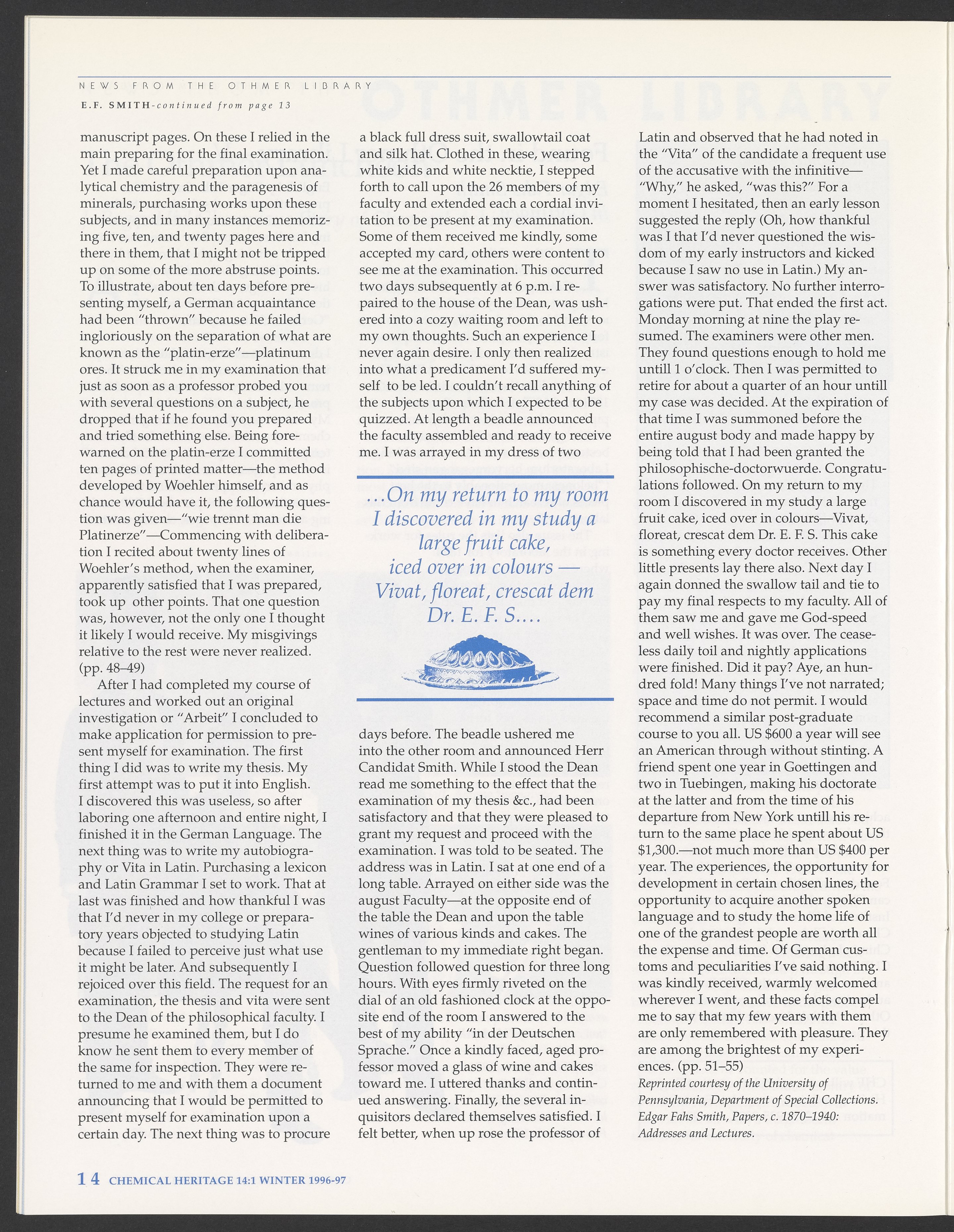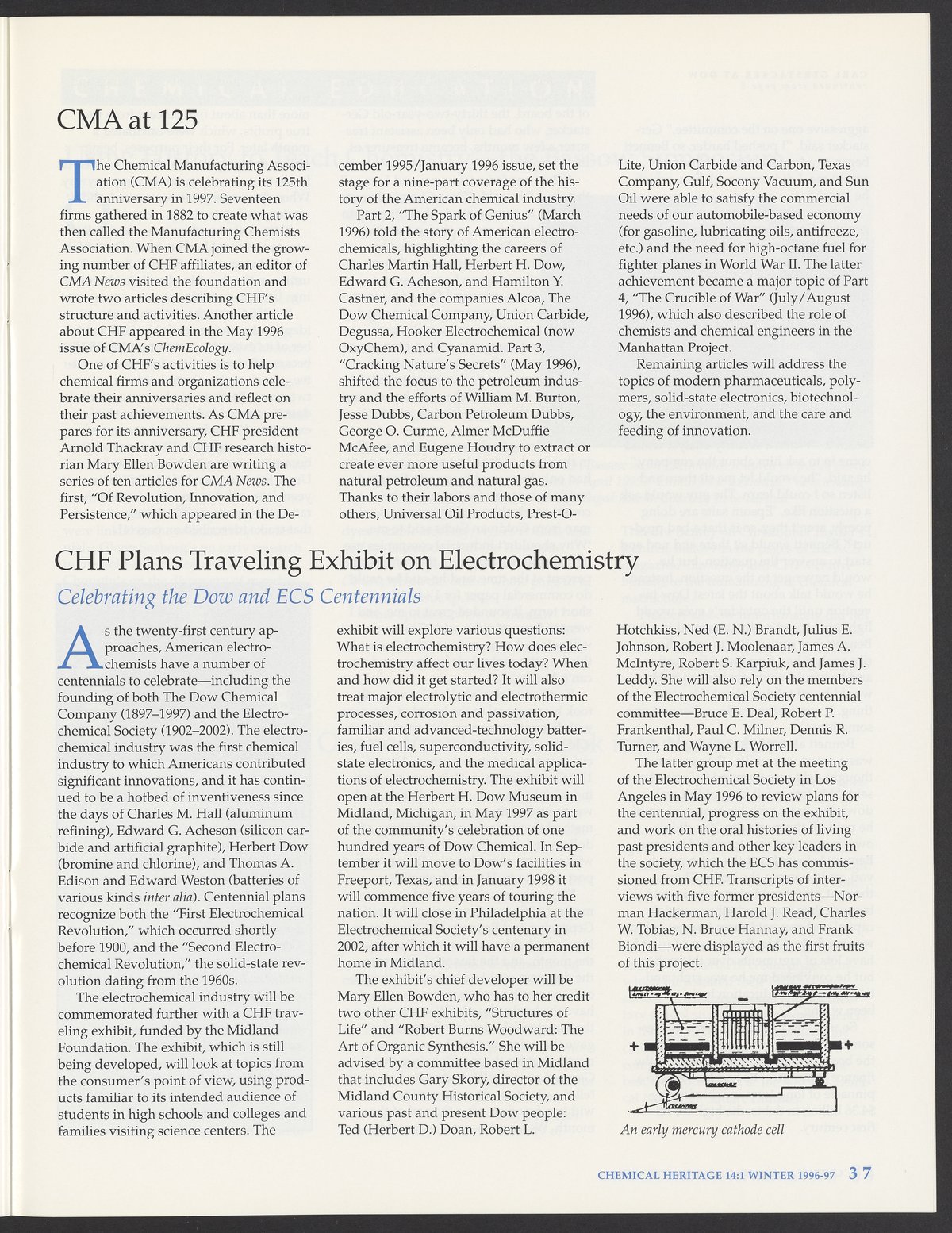 “Chemical Heritage, Volume 14 Number 1.” Philadelphia, Pennsylvania: Chemical Heritage Foundation, 1996. 099C001. Science History Institute. Philadelphia. https://digital.sciencehistory.org/works/5rbmsw4.