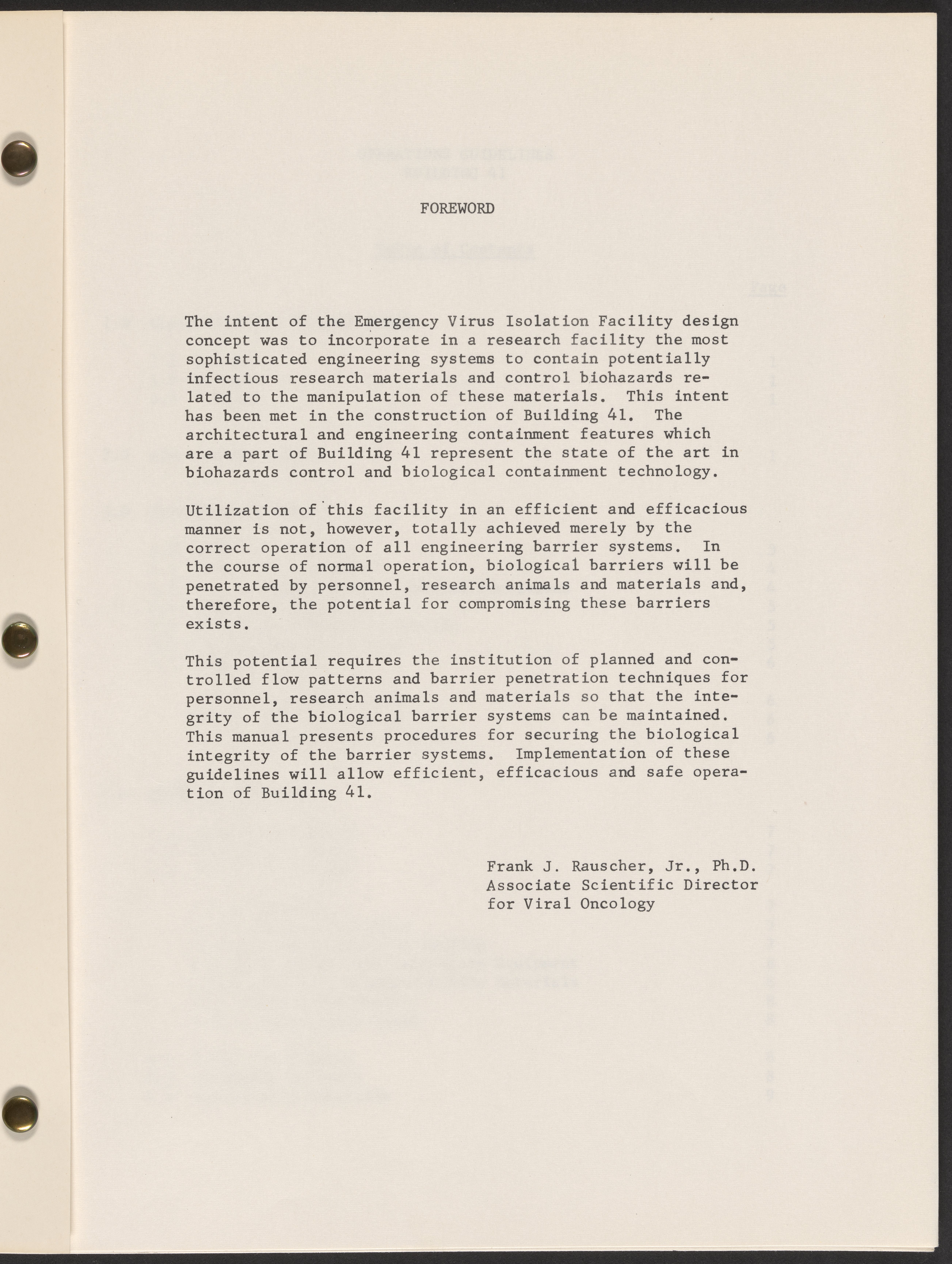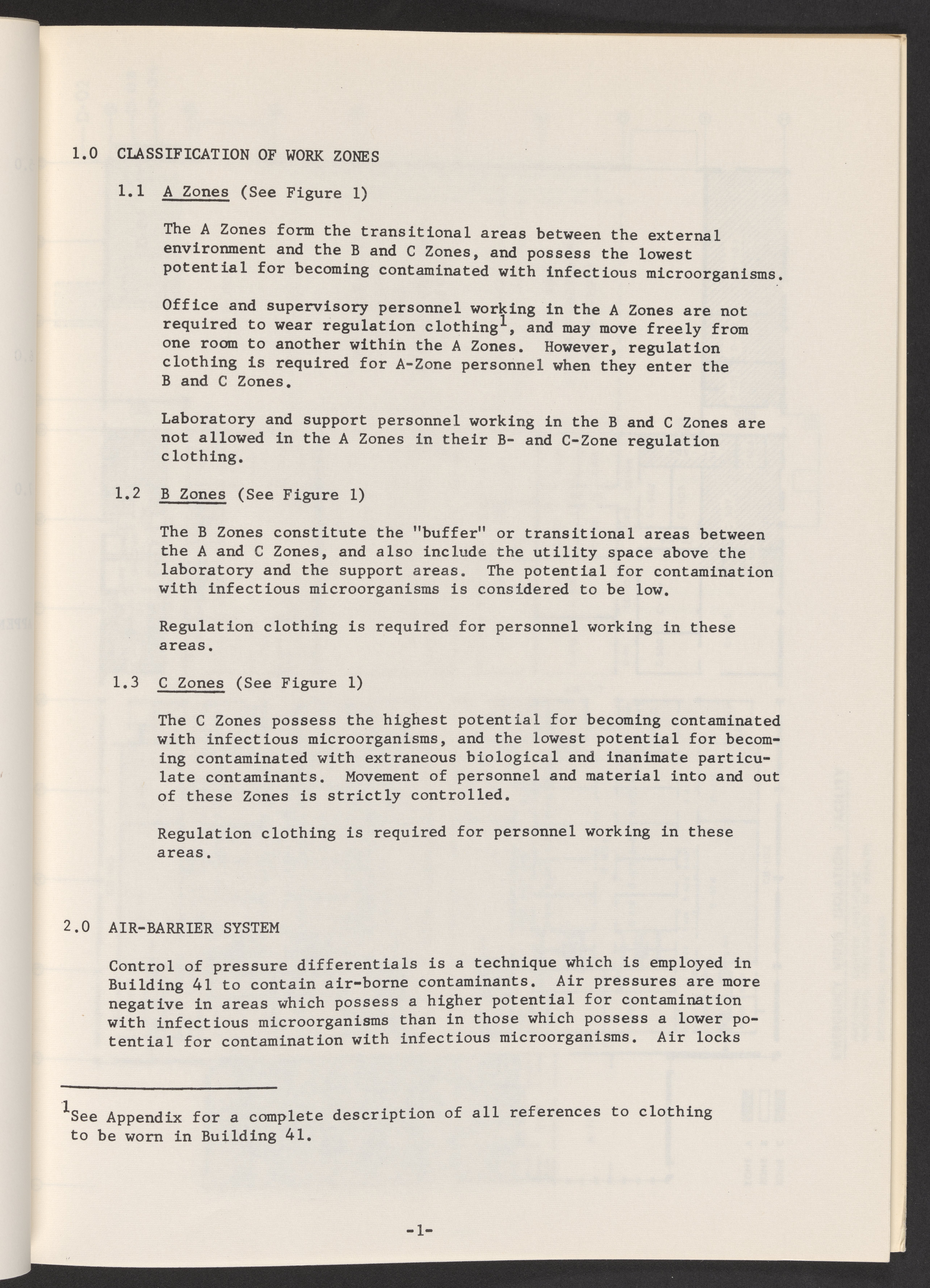 Small JPG1200 x 1542px — 205 KBLarge JPG2880 x 3701px — 1.2 MBFull-sized JPG5432 x 6980px — 4.3 MBOriginal fileTIFF — 5432 x 6980px — 108 MBOperations guidelines for Building 41, which was built for the National Cancer Institute in Bethesda, Maryland. The facility was designed to control and contain biohazards associated with cancer research virus studies.