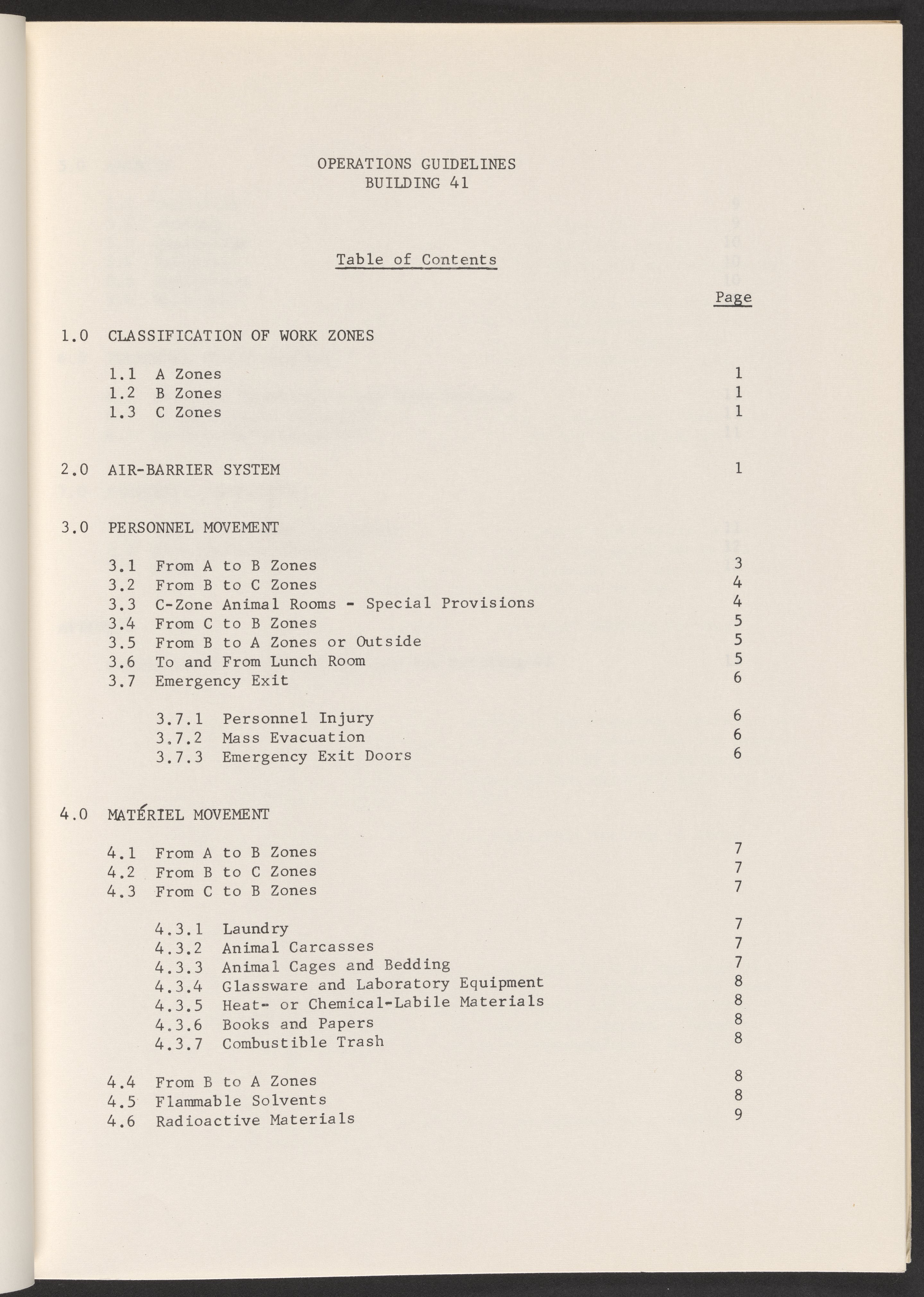 National Cancer Institute (U.S.). “Operations Guidelines Building 41,” 1960–1969. Dow Chemical Historical Collection, Box Safety 00360, Folder 00342F11. Science History Institute. Philadelphia. https://digital.sciencehistory.org/works/5s0jm67.