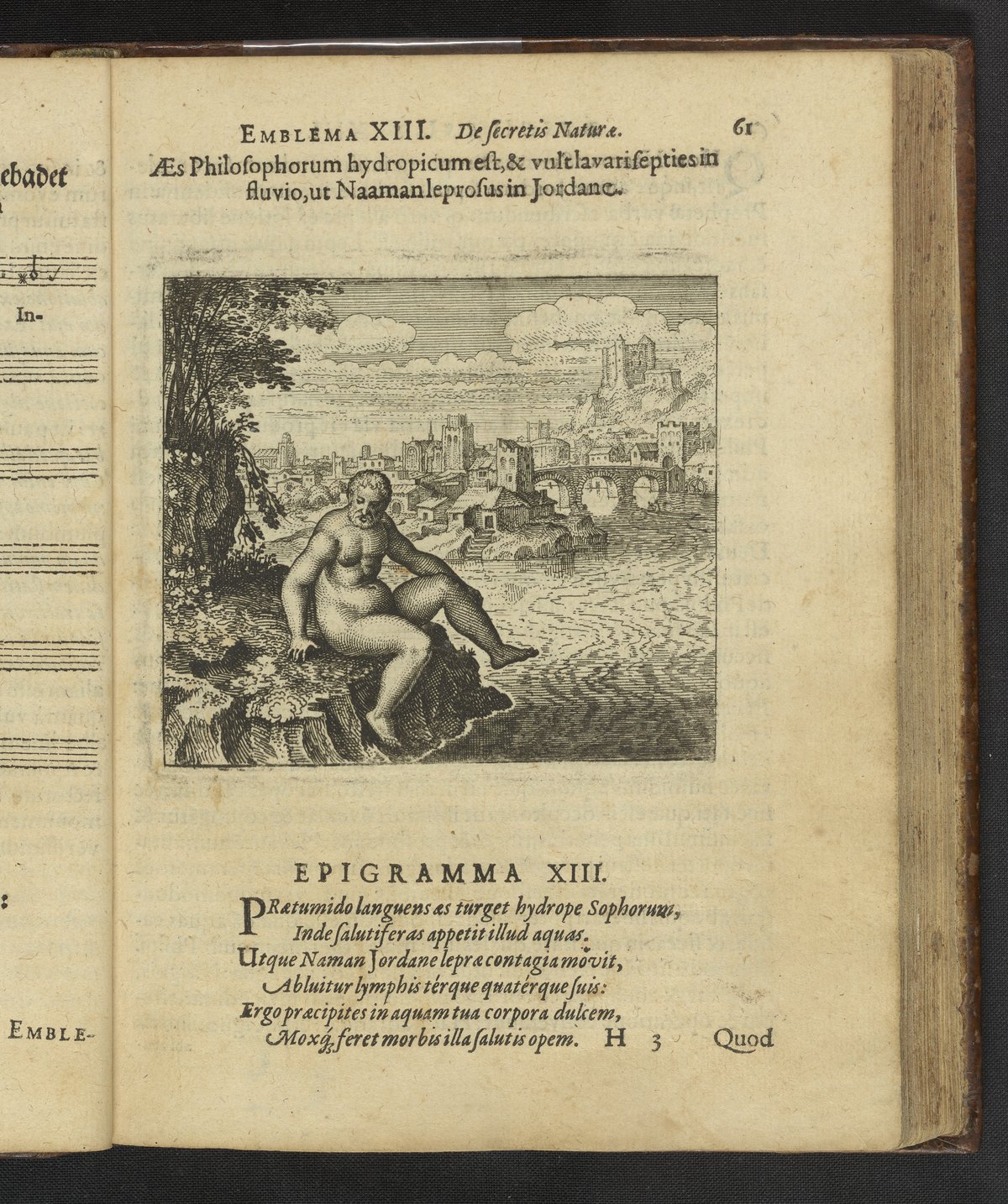 Emblem 13. Ore of the Philosophers is dropsical, and needs to be washed seven times in the river, as Naaman the leper was in Jordan.