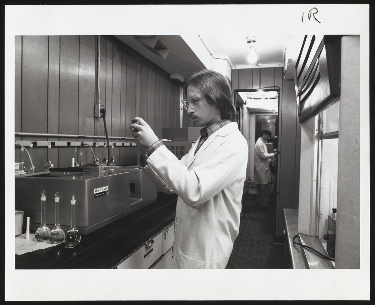 Perkin-Elmer Corporation. “Perkin-Elmer Infrared Spectrophotometer in Use at EPA Mobile Laboratory,” 1970–1979. Photographs from the Perkin-Elmer-Applera Collection, Box 6. Science History Institute. Philadelphia. https://digital.sciencehistory.org/works/5t34sk48b.