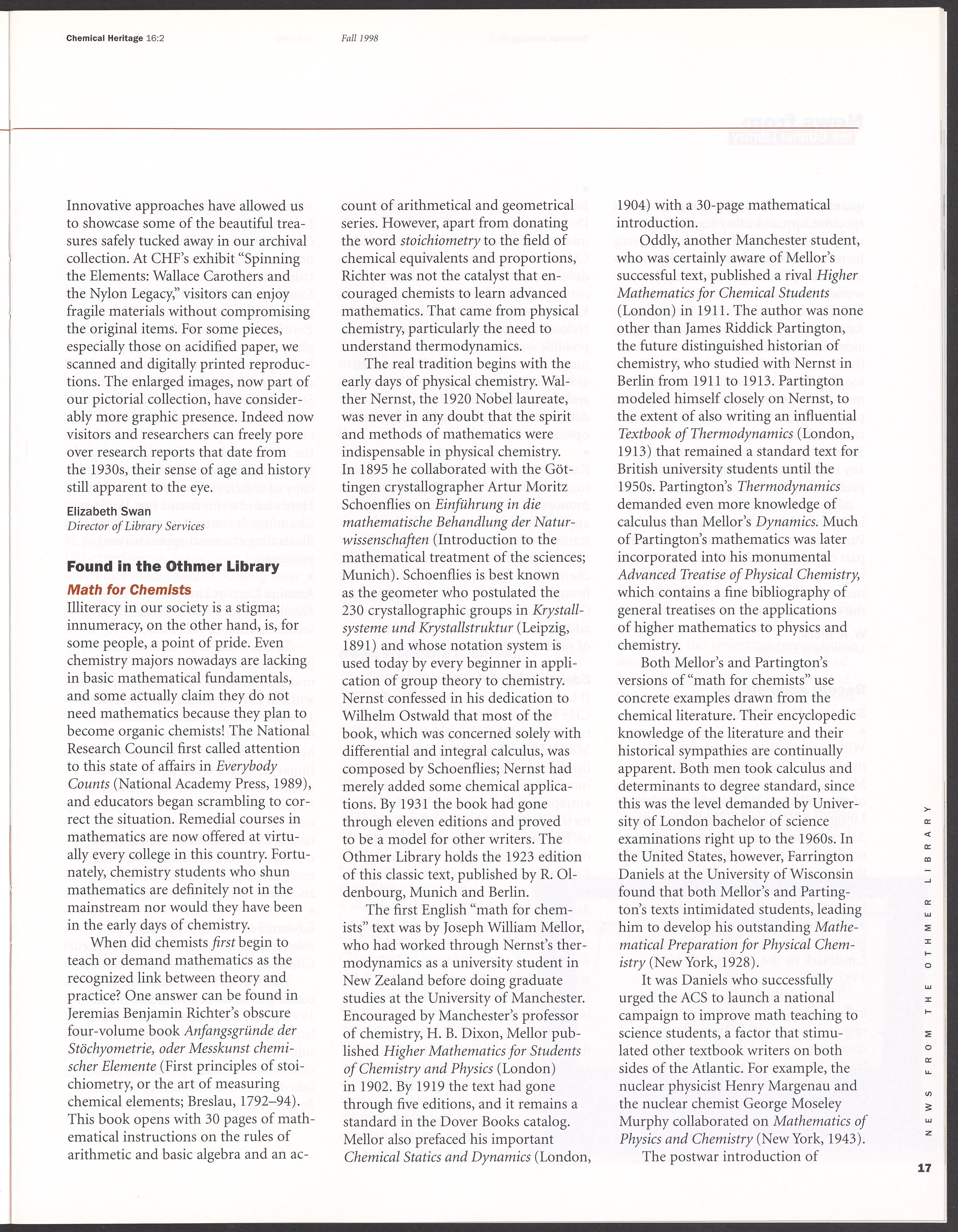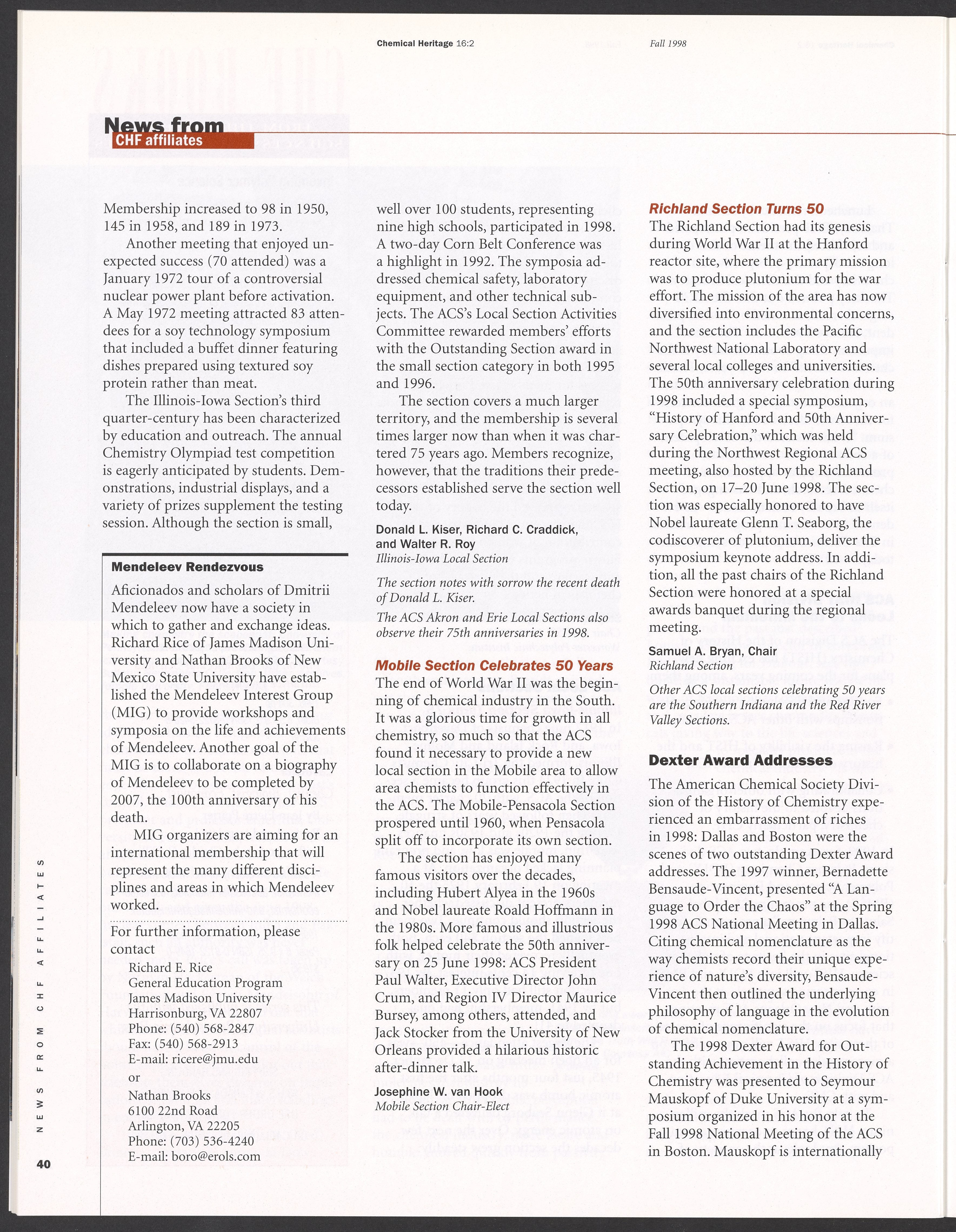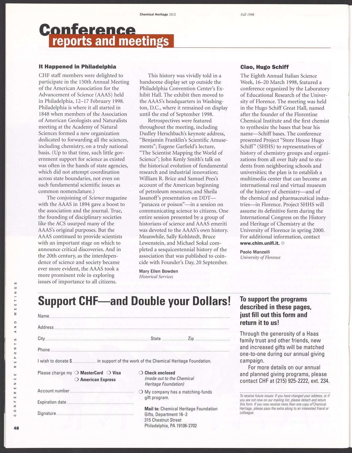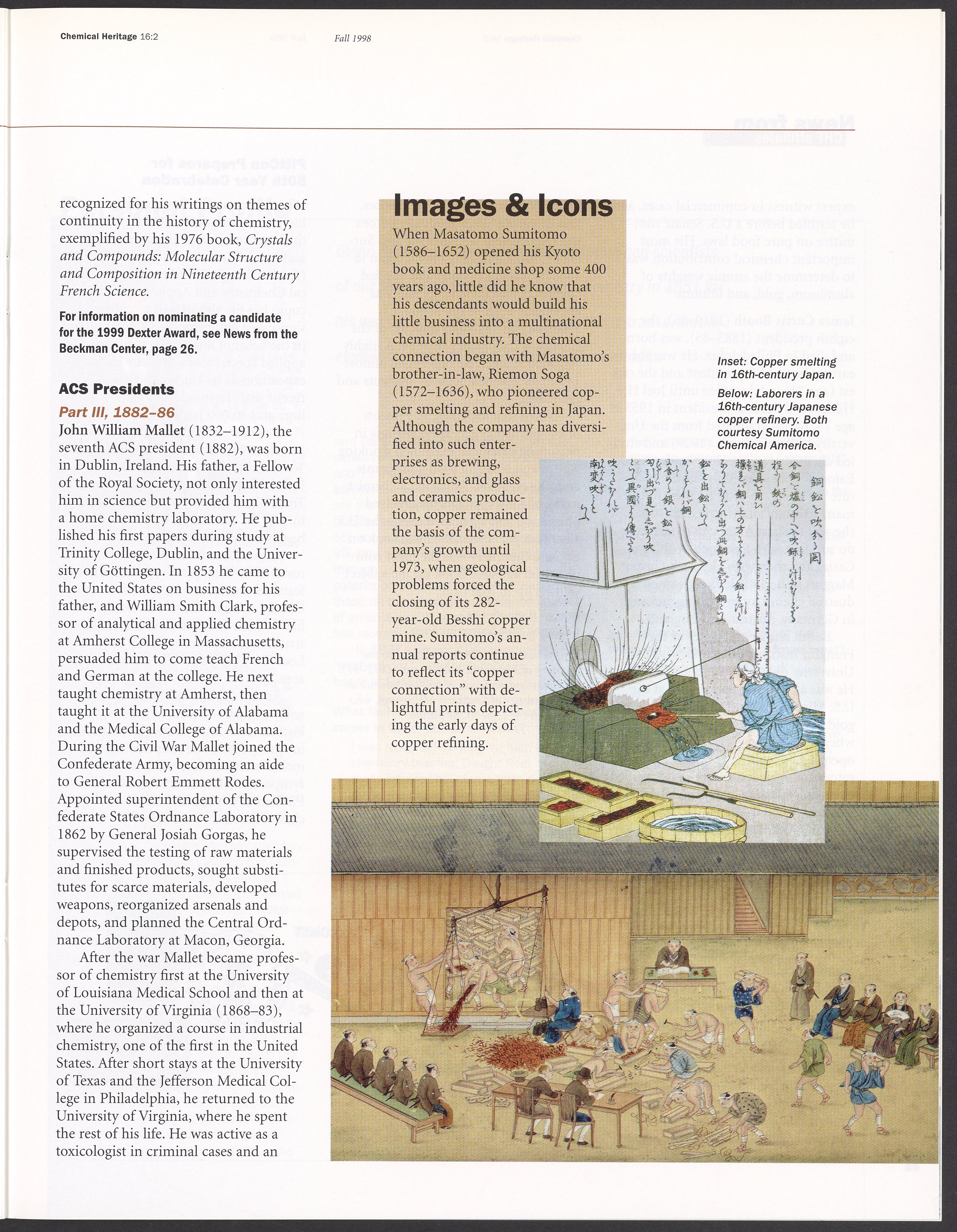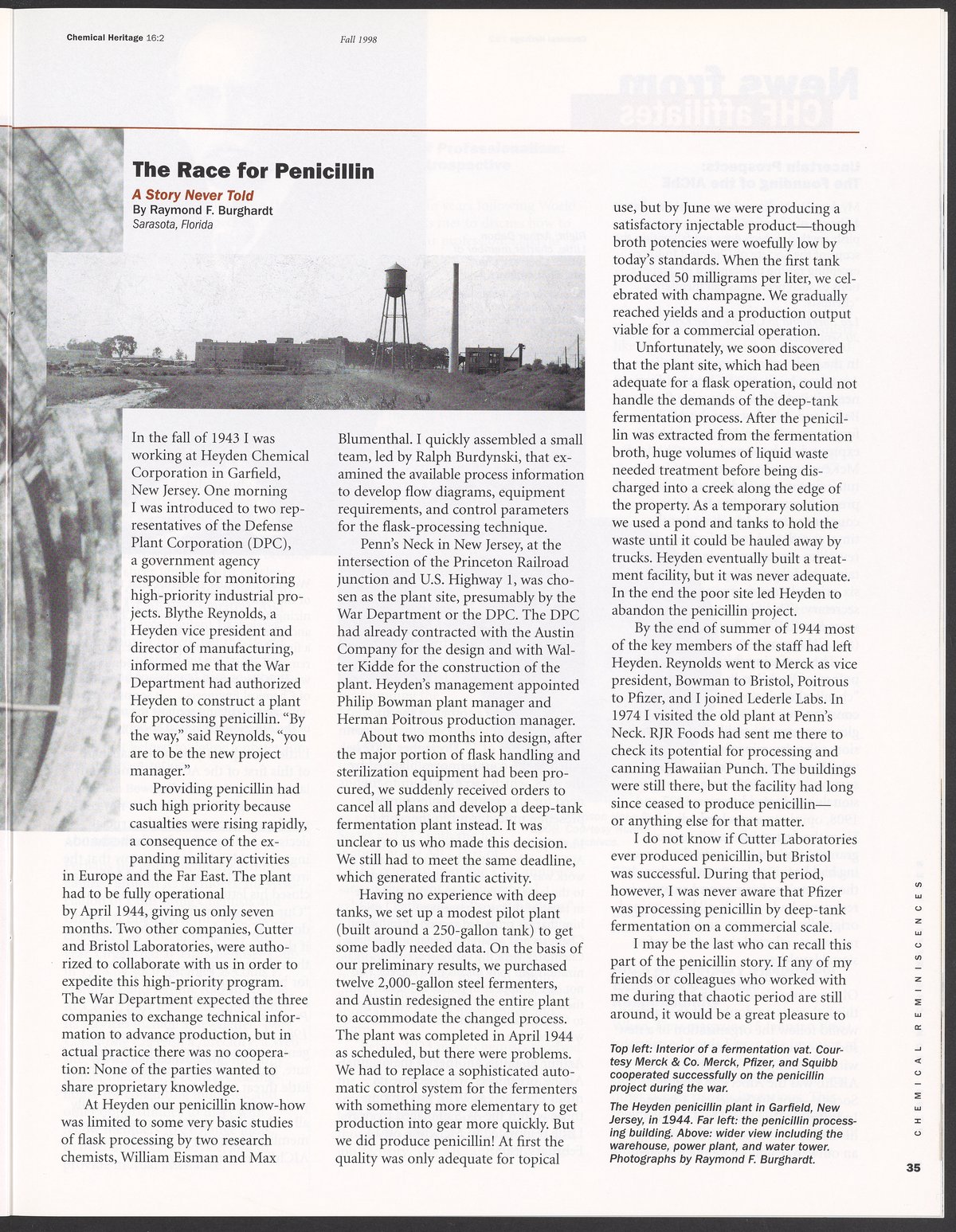 “Chemical Heritage, Volume 16 Number 2.” Philadelphia, Pennsylvania: Chemical Heritage Foundation, 1998. 099C001. Science History Institute. Philadelphia. https://digital.sciencehistory.org/works/5vbb57u.