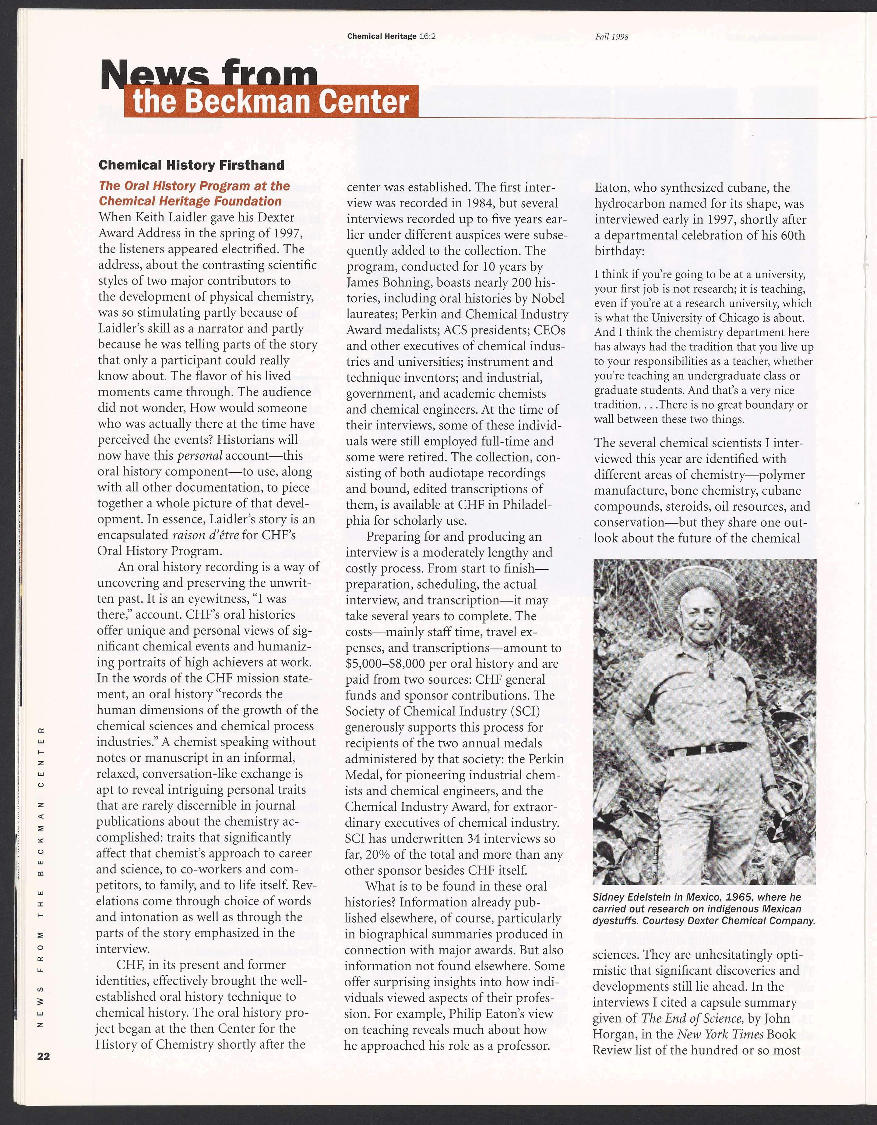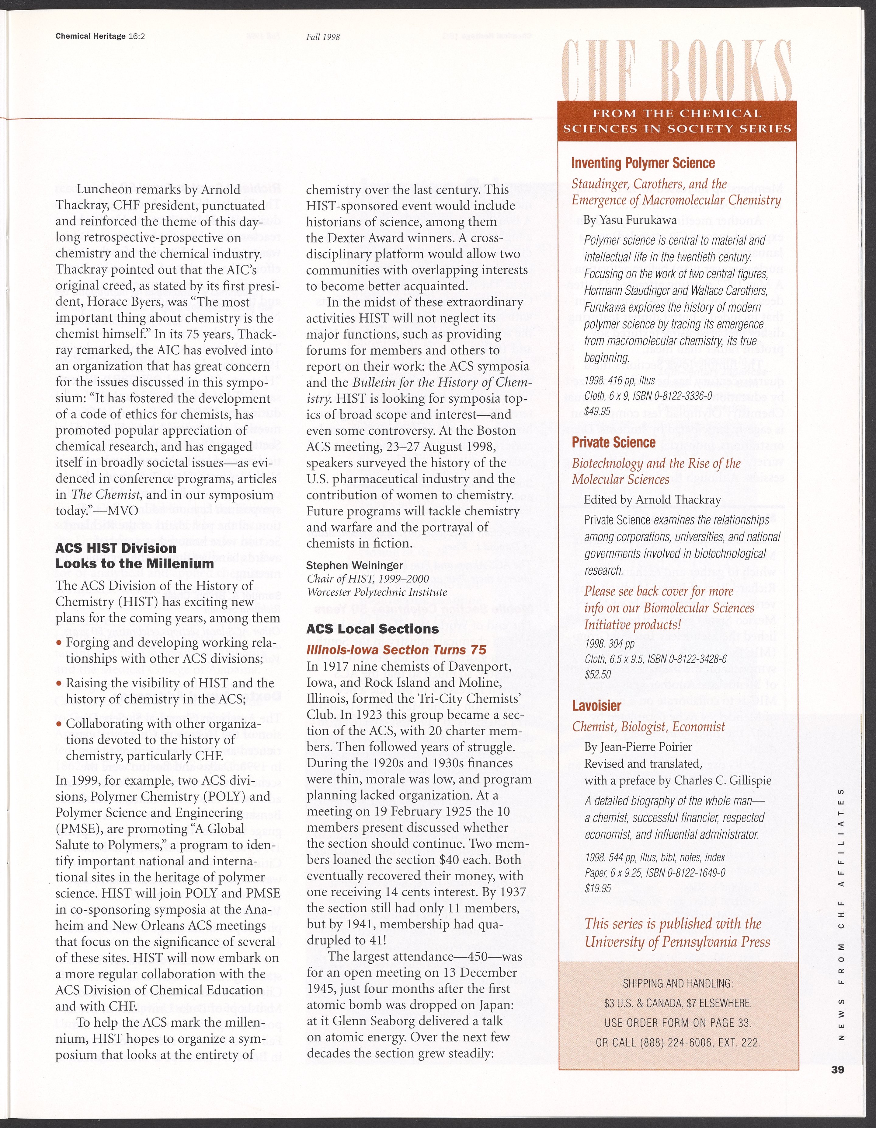 Chemical Heritage, Volume 16 Number 2